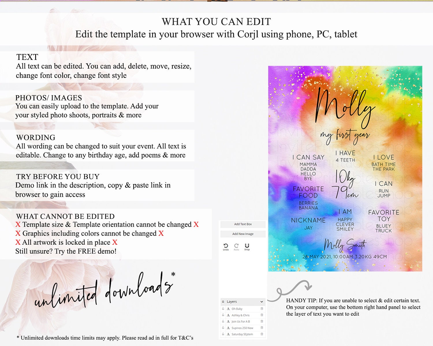 • After purchase, Corjl emails your editing link. Allow up to 15 minutes for delivery.