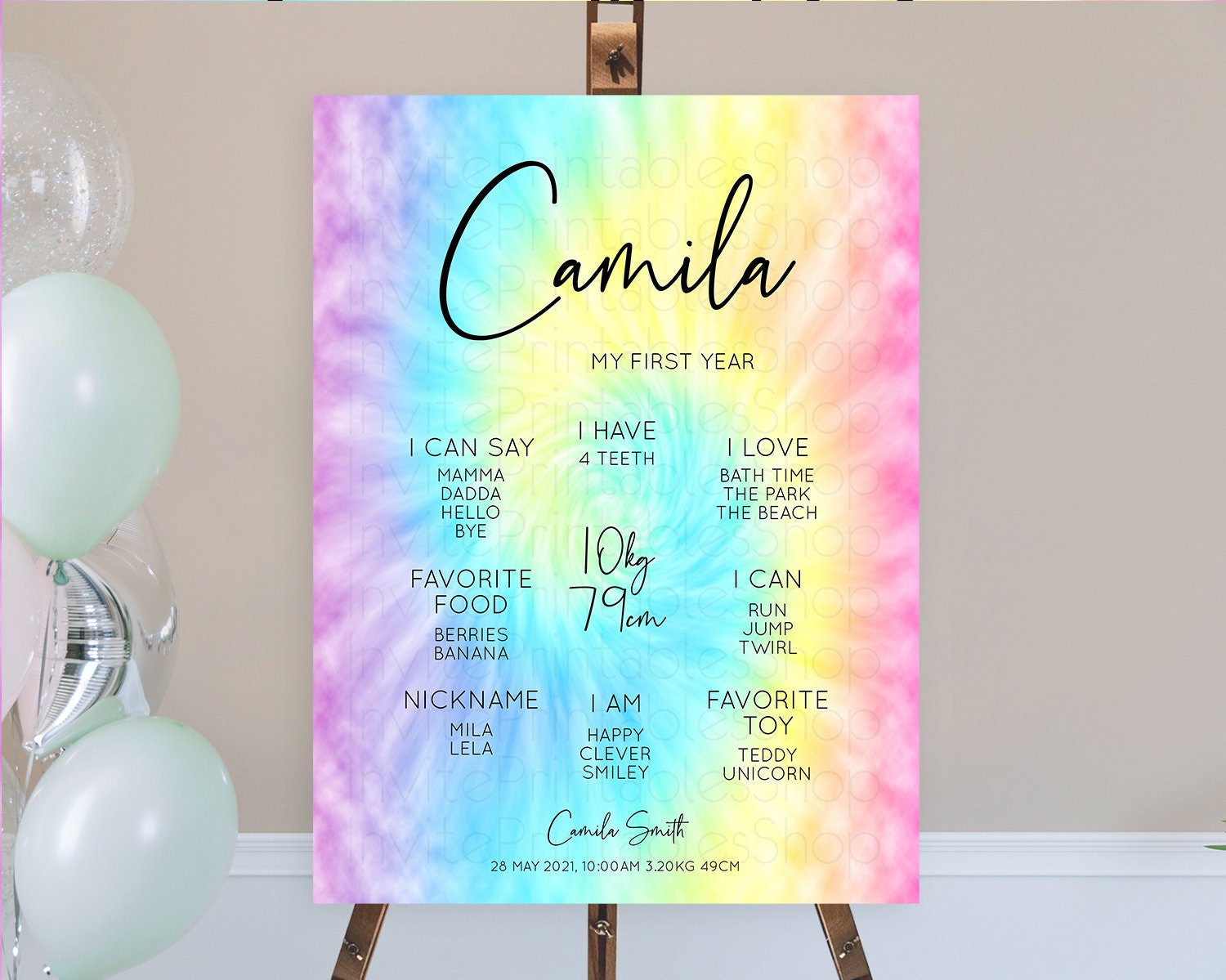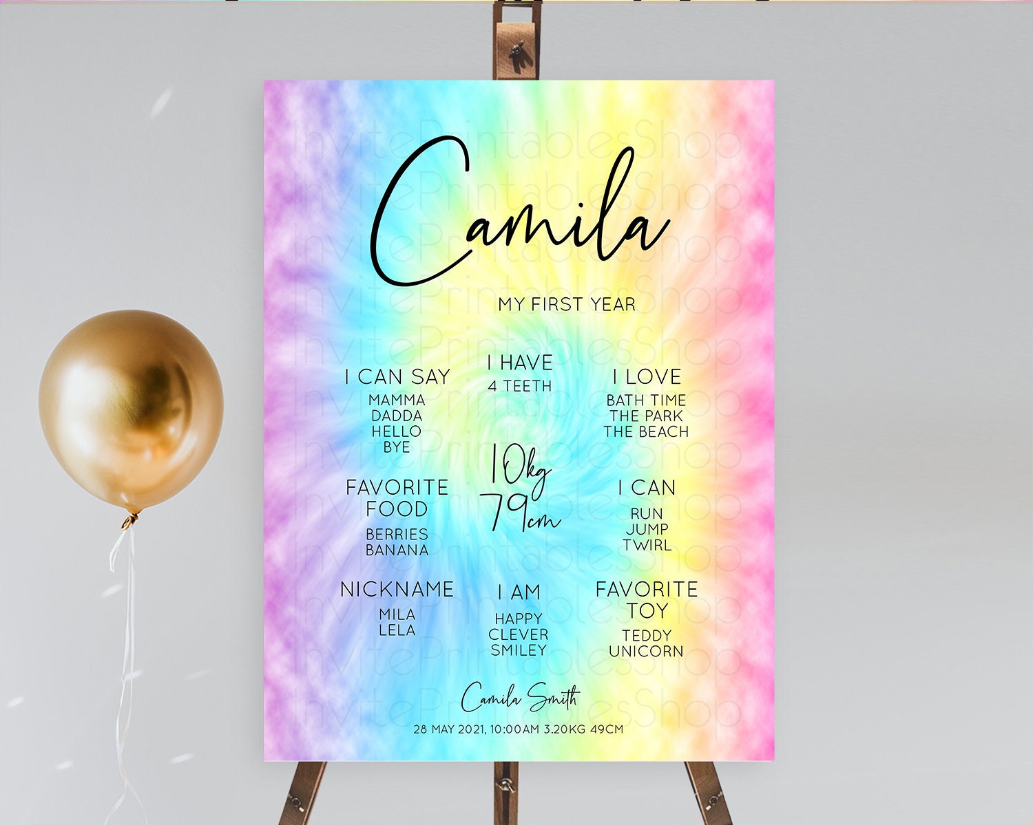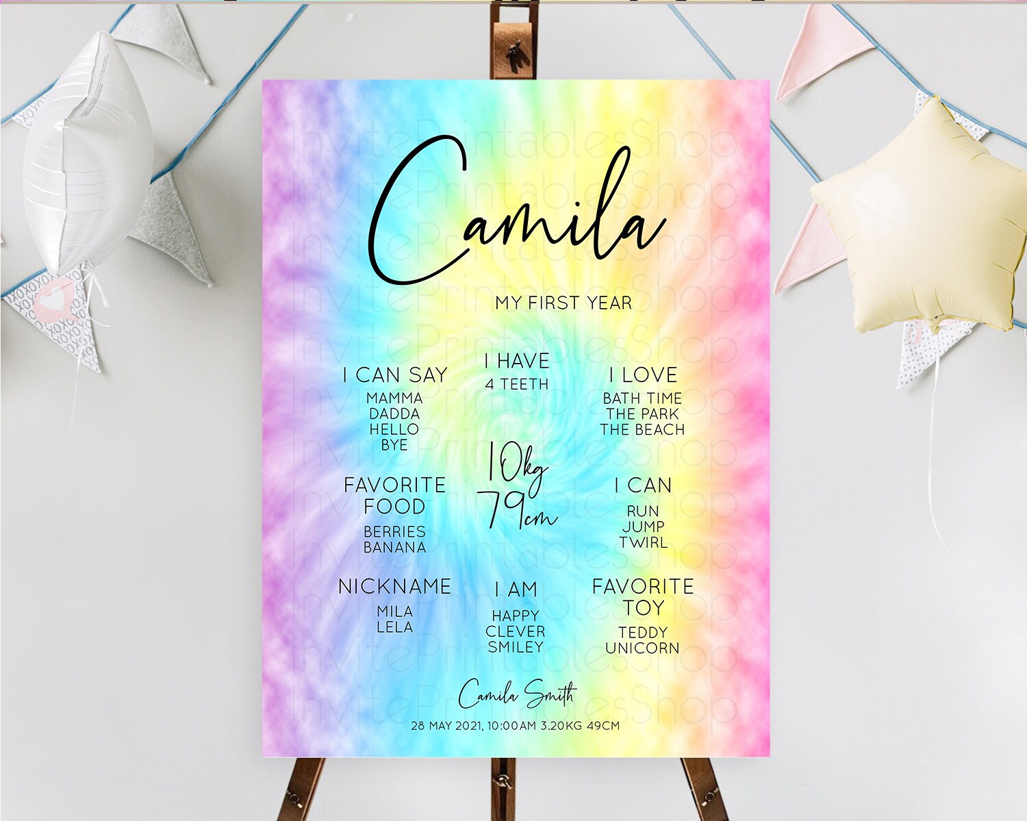 Tie Dye Milestone Board Rainbow First Birthday Milestone Poster Pastel Milestone Colorful Milestone Board Pastel Rainbow Birthday D10578
