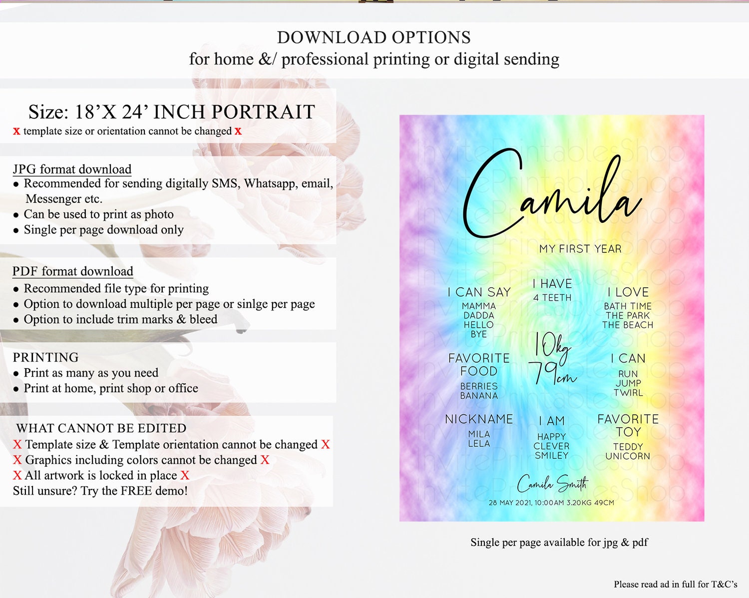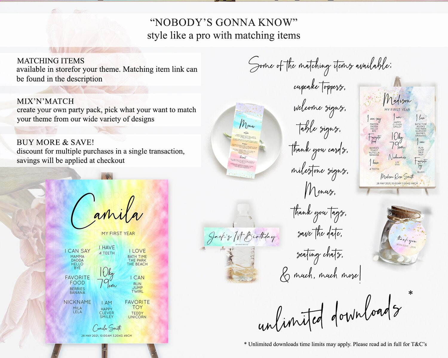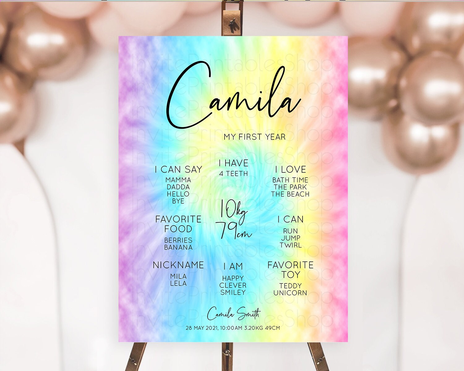 Tie Dye Milestone Board Rainbow First Birthday Milestone Poster Pastel Milestone Colorful Milestone Board Pastel Rainbow Birthday D10578