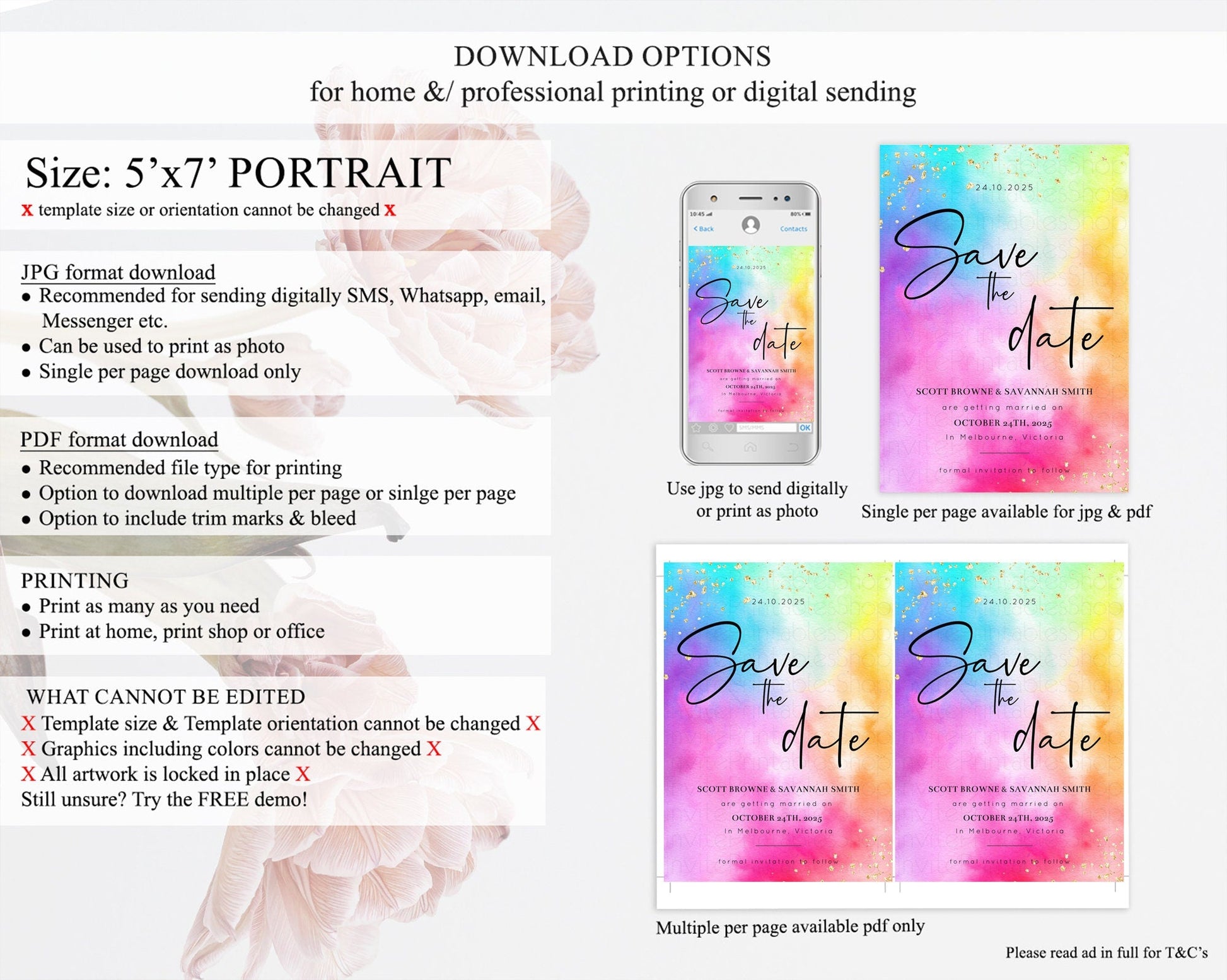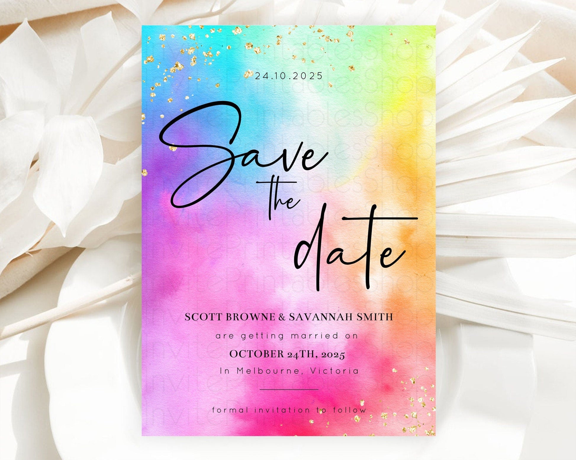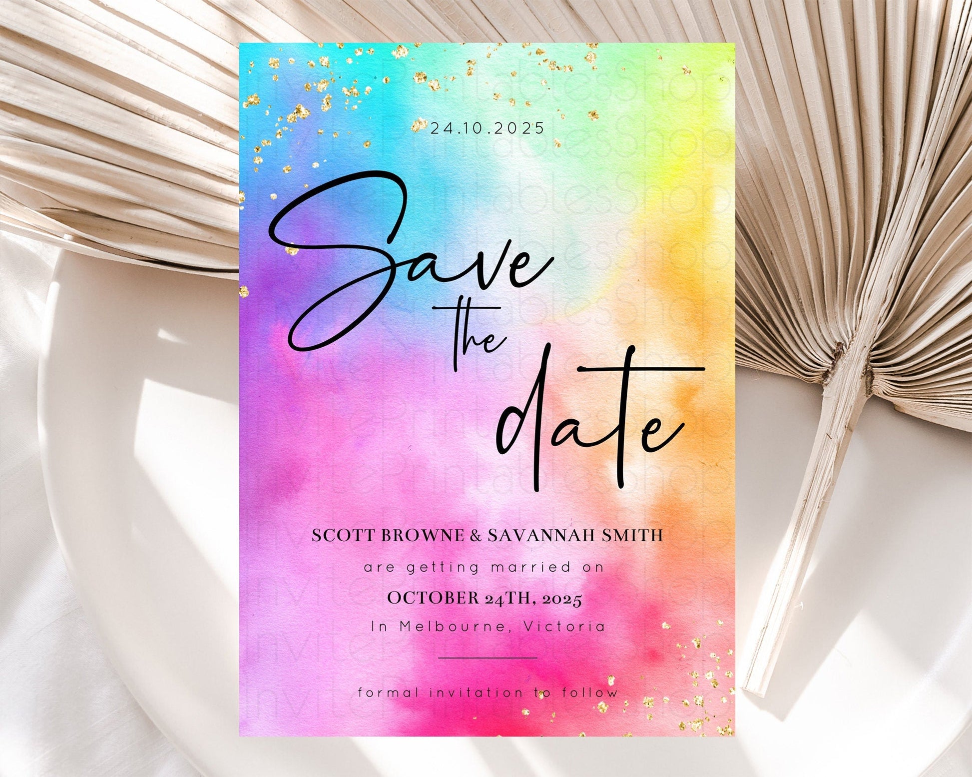 Tie Dye Save The Date Template Rainbow Pastel Ombre Watercolor Party For 1st Birthday Baptism Baby Shower Bridal Shower Wedding D10456