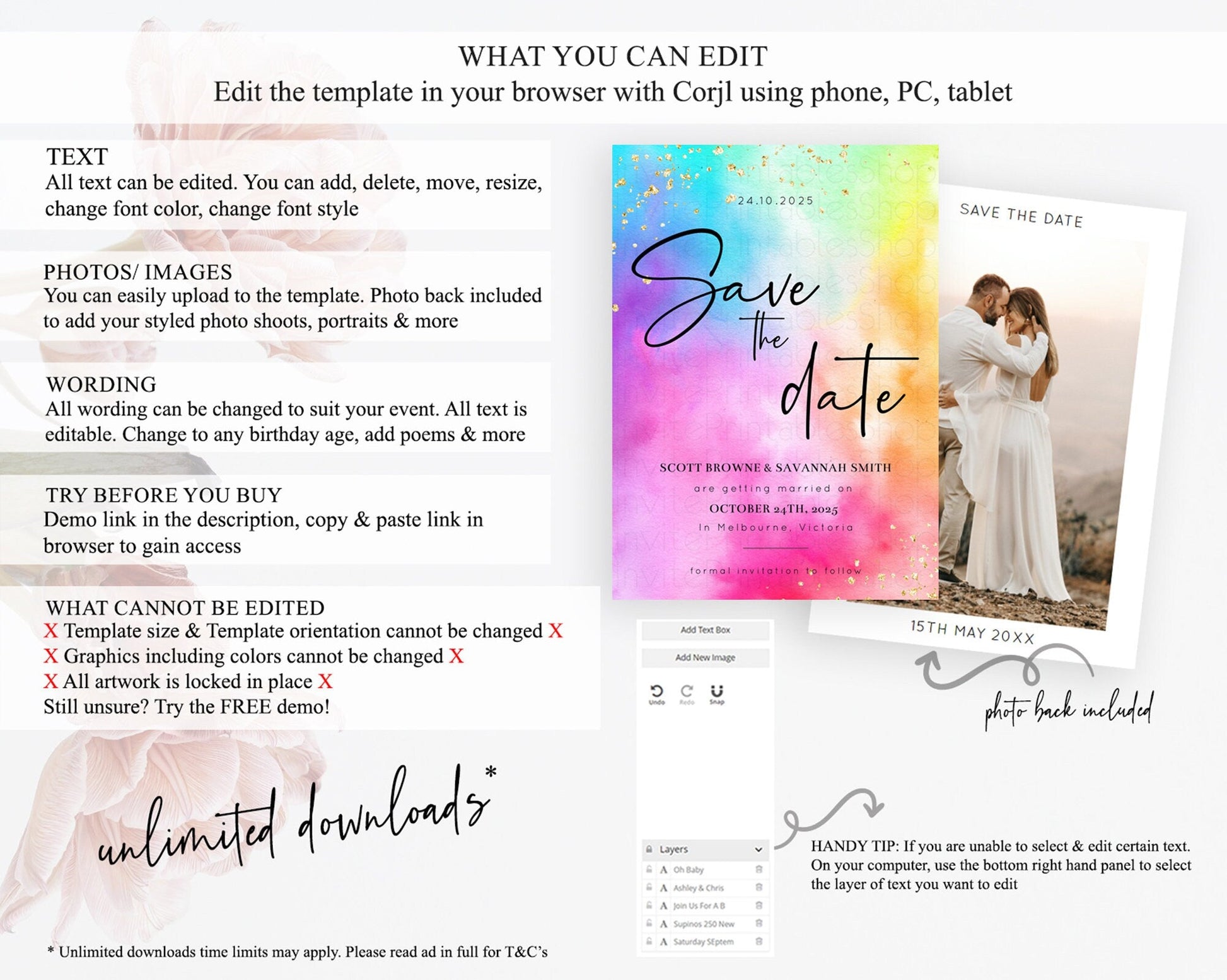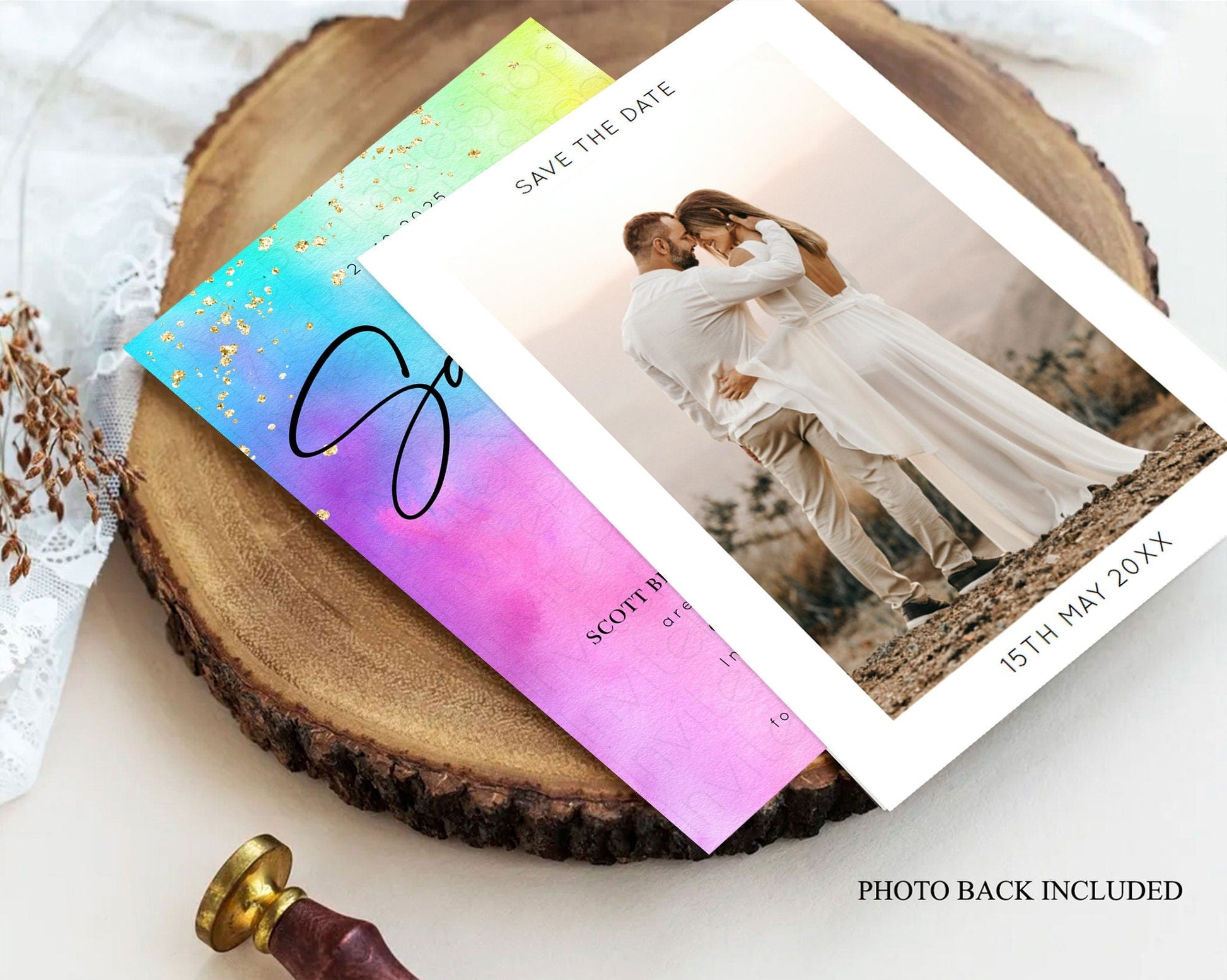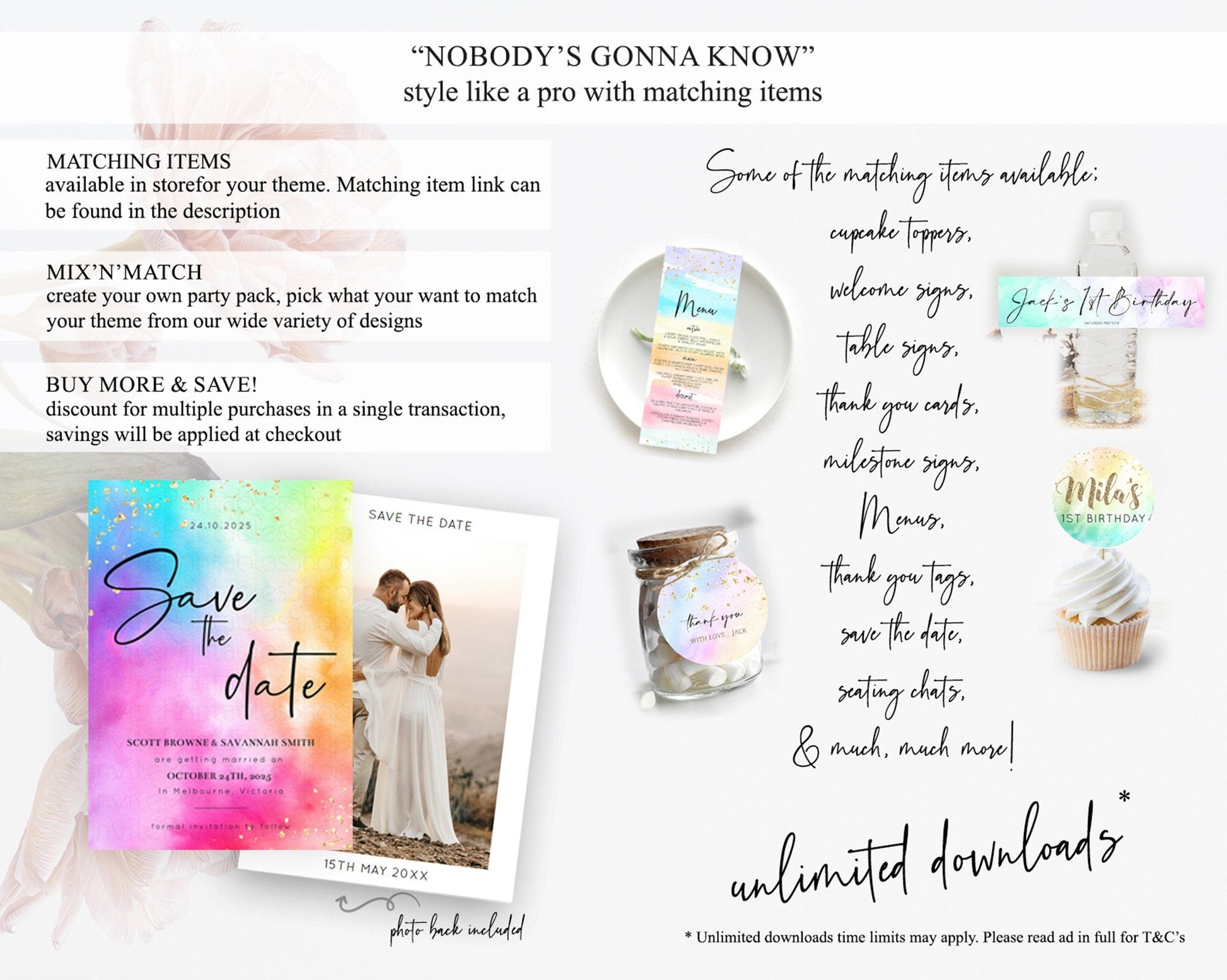 Tie Dye Save The Date Template Rainbow Pastel Ombre Watercolor Party For 1st Birthday Baptism Baby Shower Bridal Shower Wedding D10456