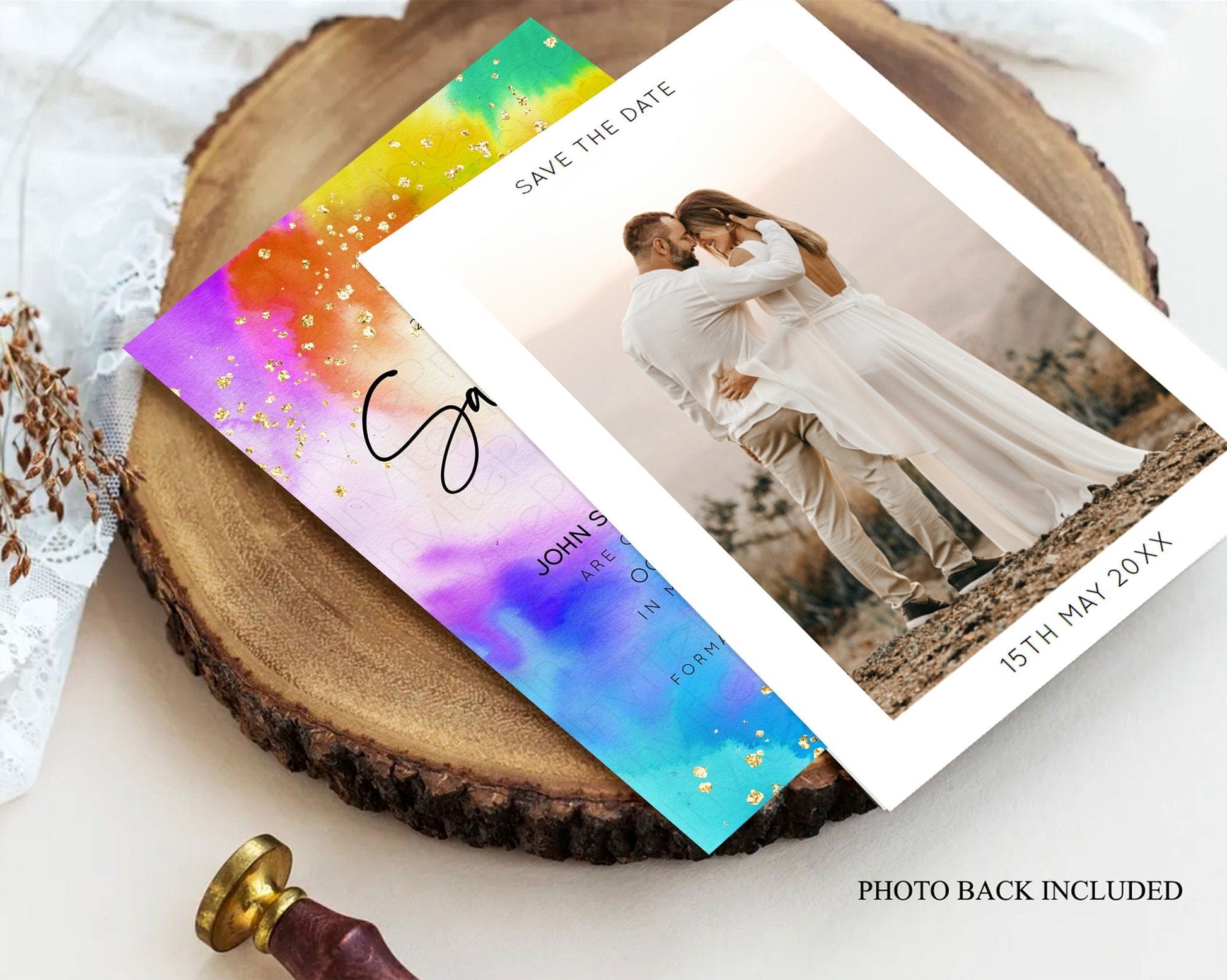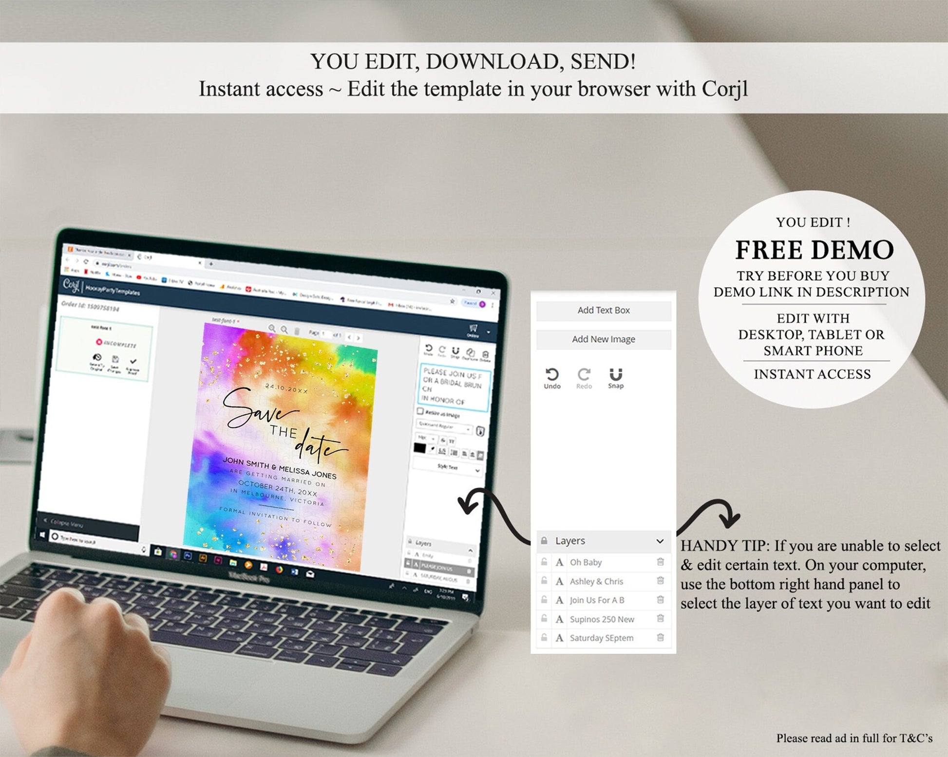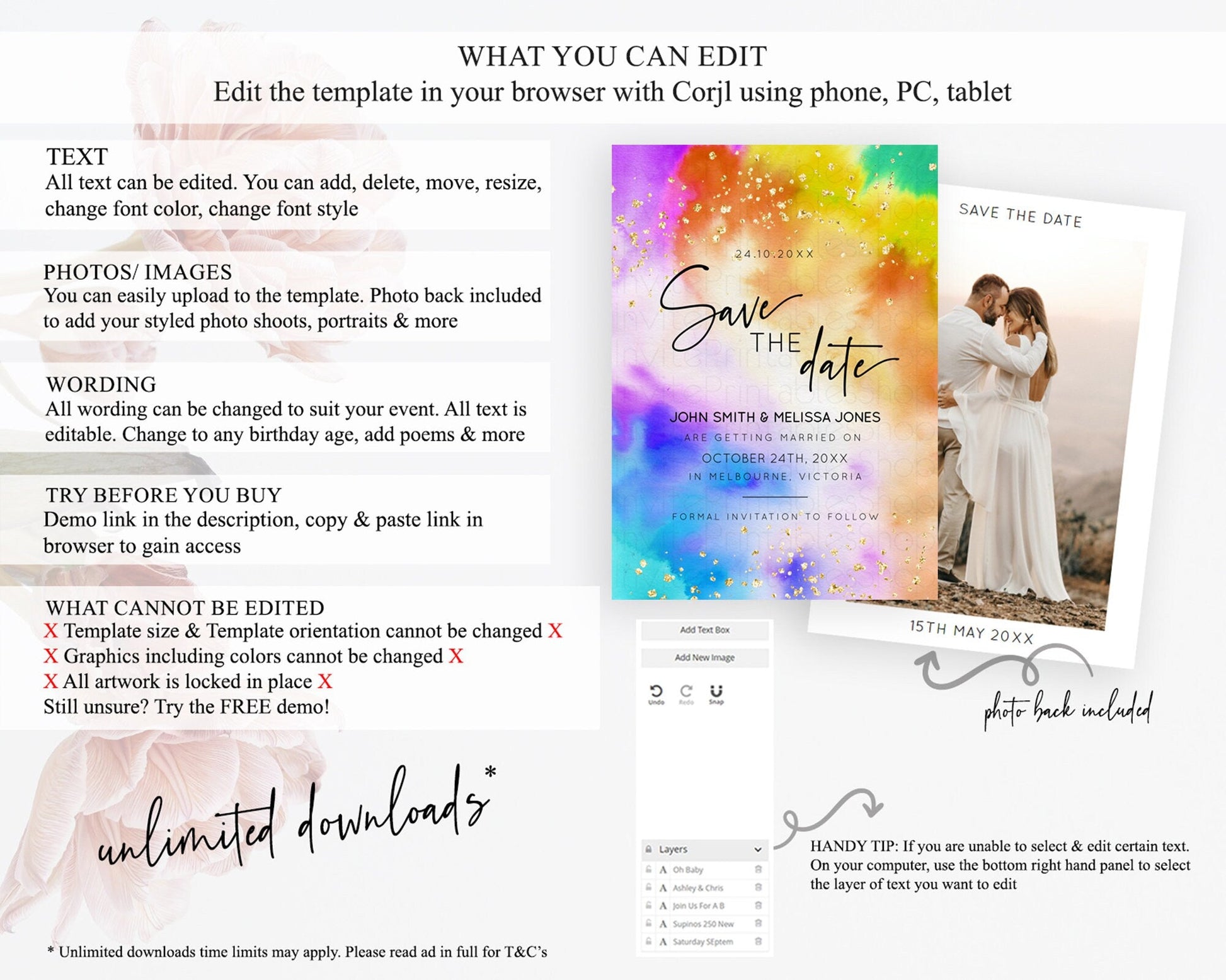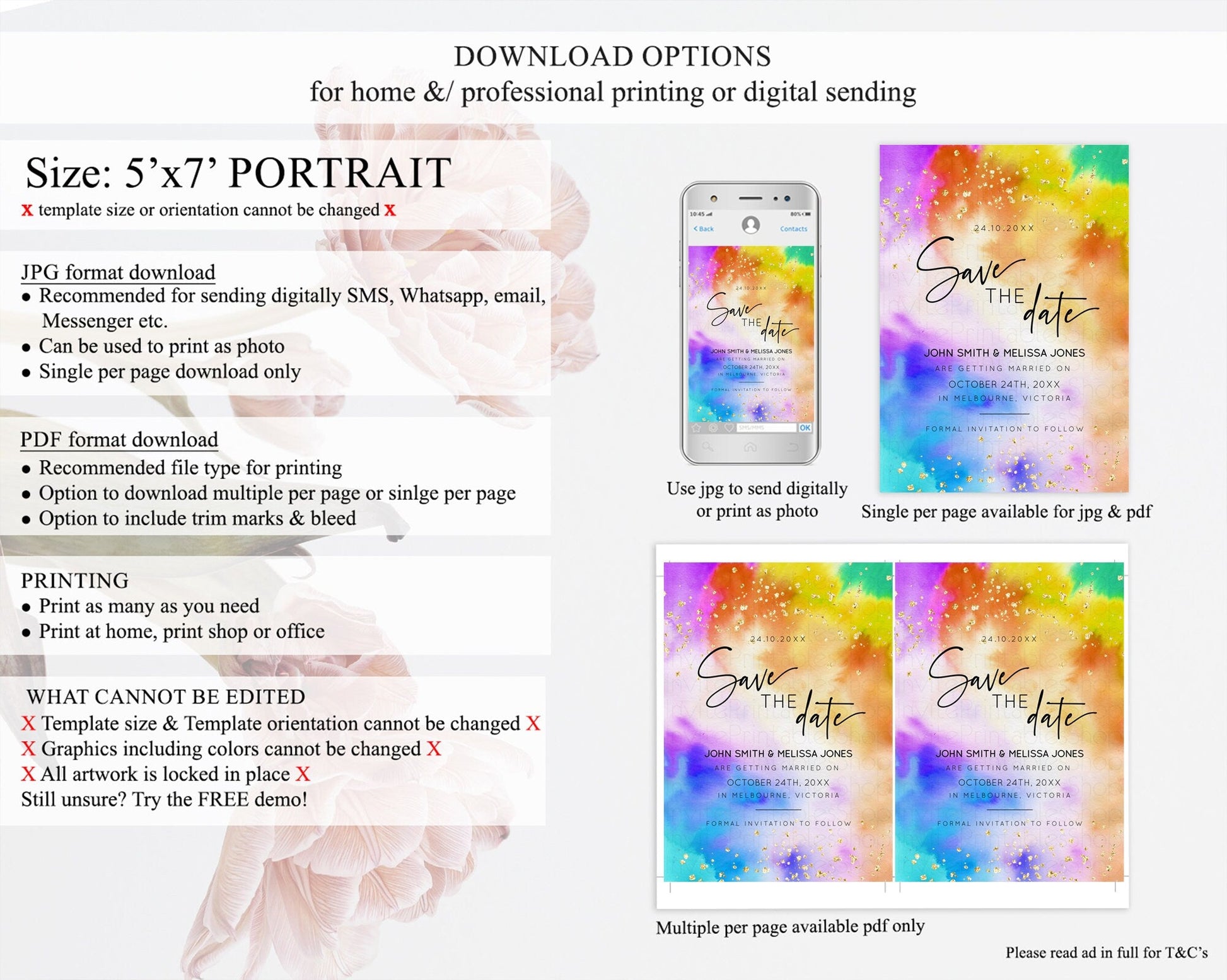 Tie Dye Save The Date Template Rainbow Pastel Ombre Watercolor Party For 1st Birthday Baptism Baby Shower Bridal Shower Wedding D10530
