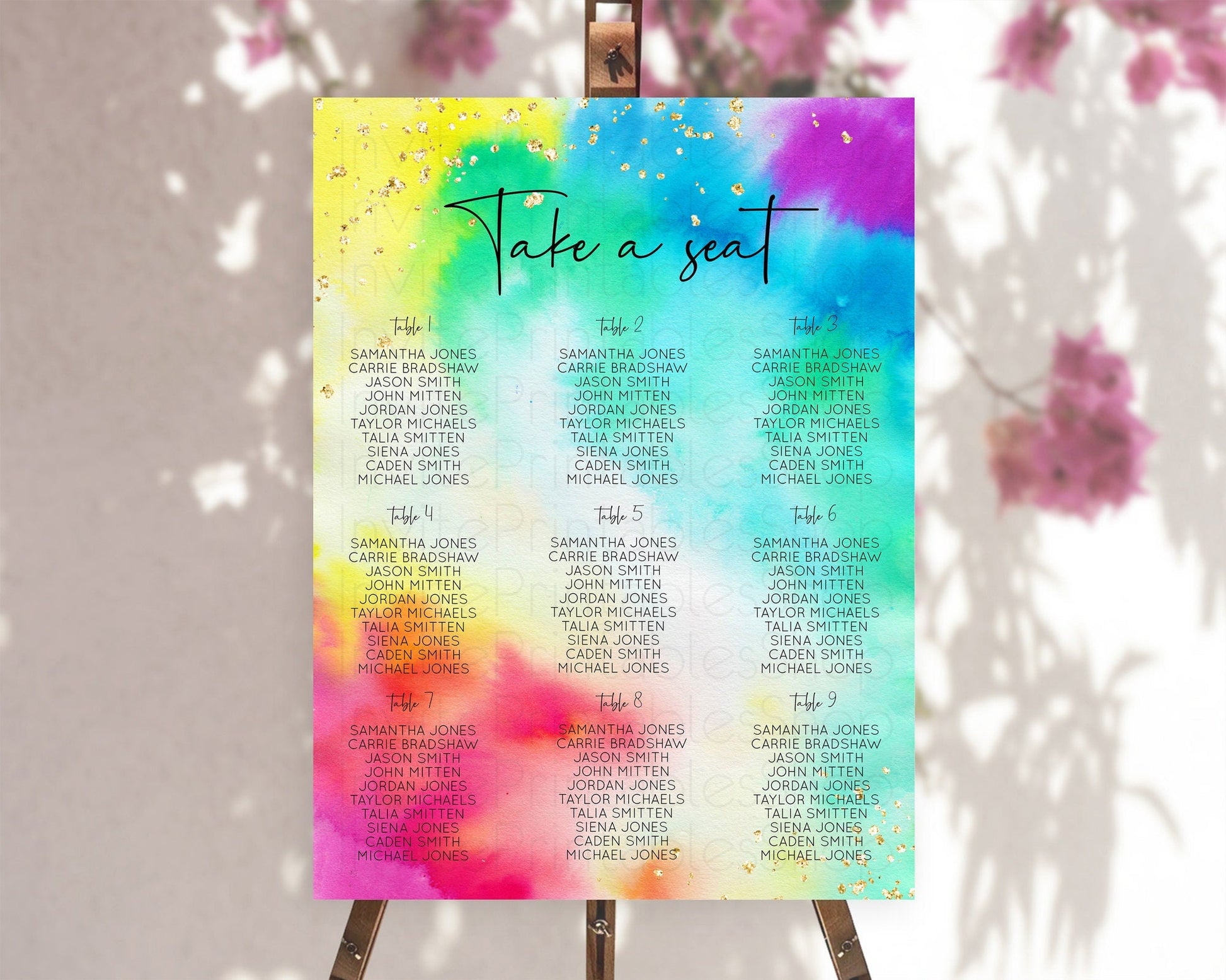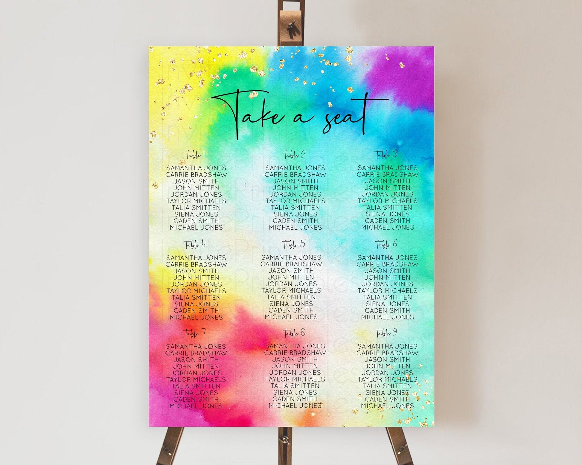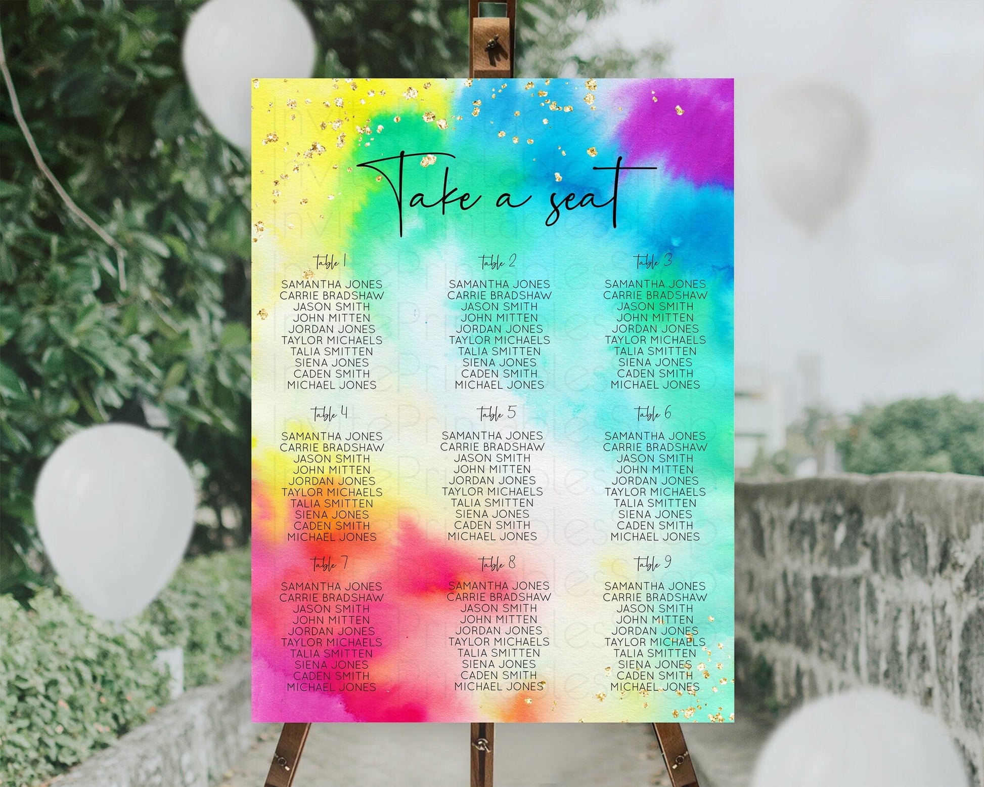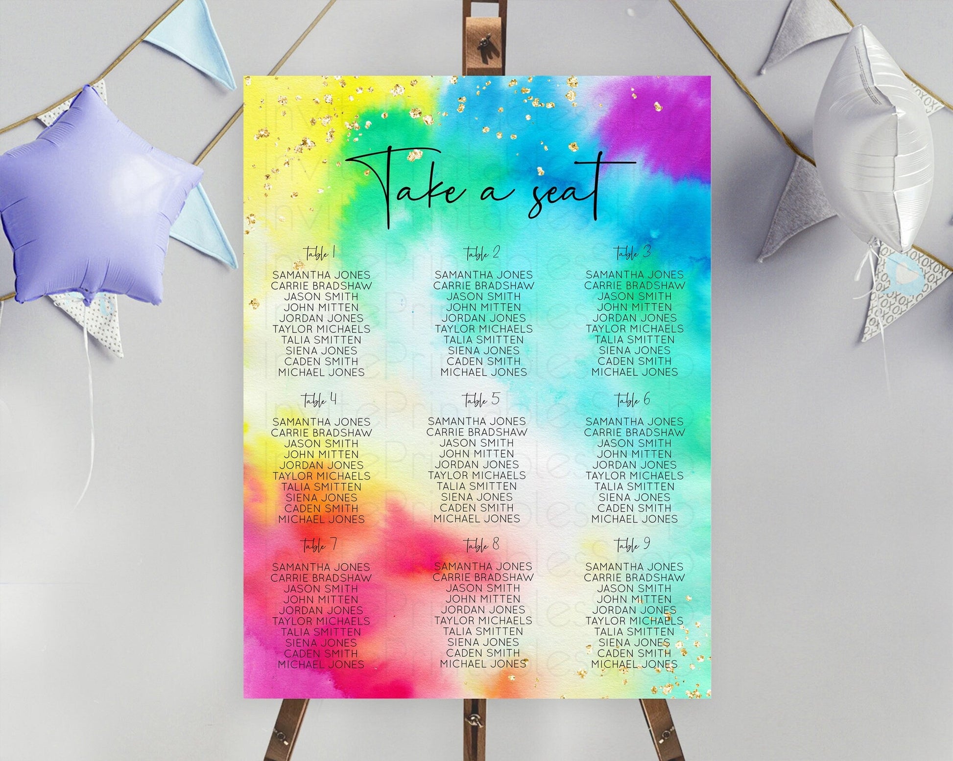Tie Dye Seating Chart Rainbow Tie Dye Seating Chart Rainbow Colorful Seating Chart Tie Dye Pastel Rainbow Party Decor Take A Seat D10462