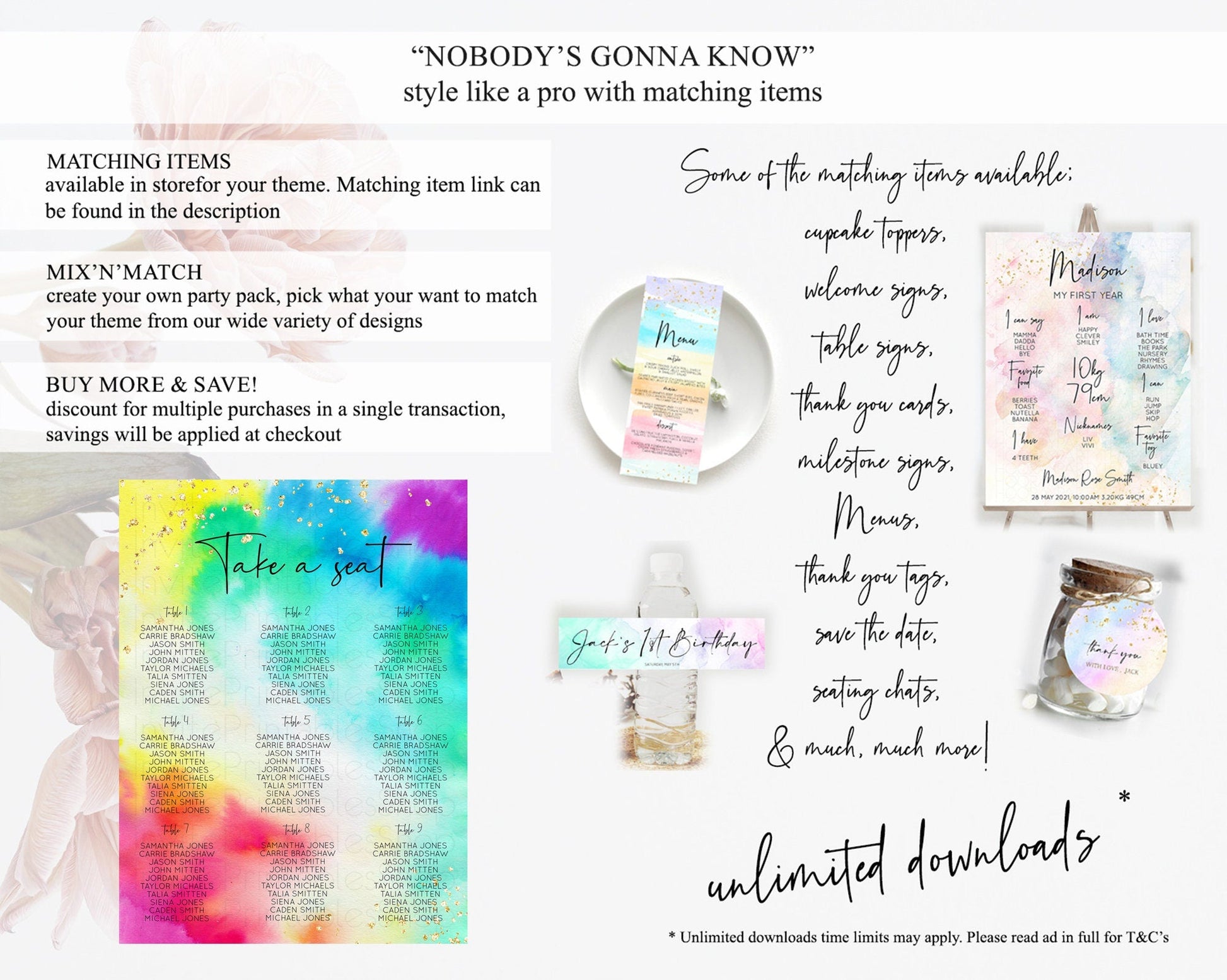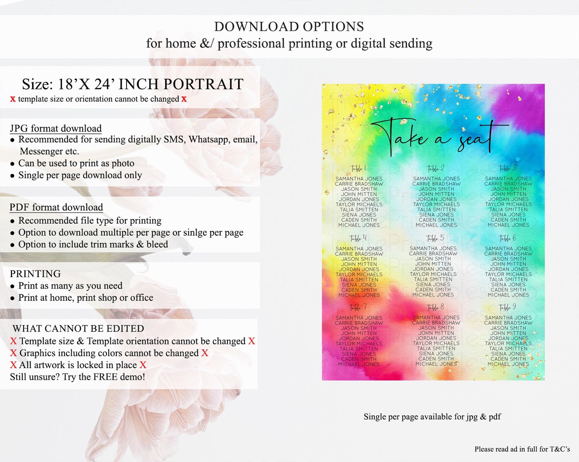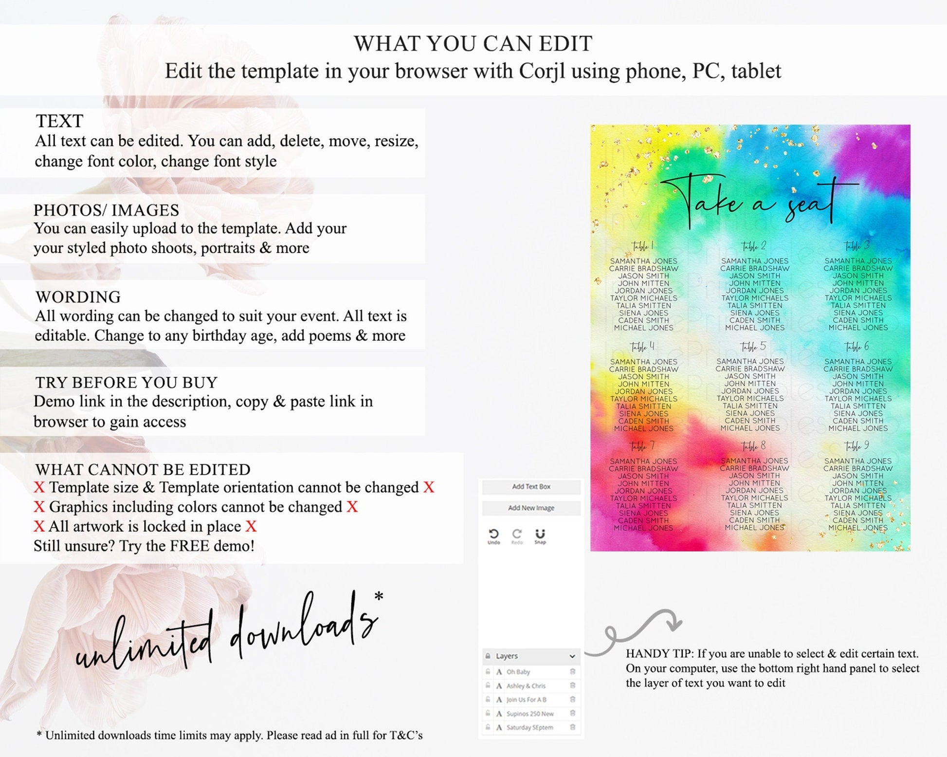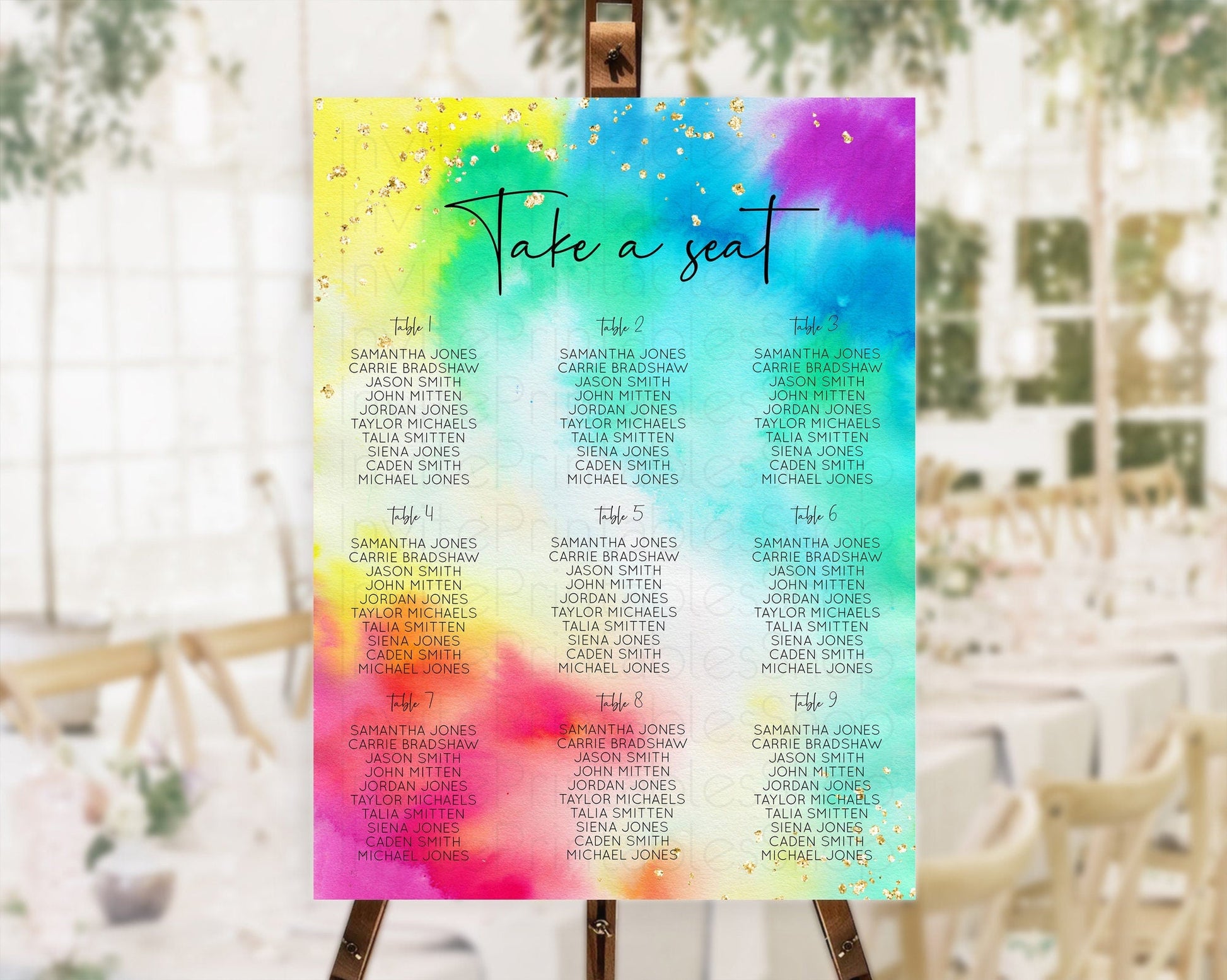 Tie Dye Seating Chart Rainbow Tie Dye Seating Chart Rainbow Colorful Seating Chart Tie Dye Pastel Rainbow Party Decor Take A Seat D10462