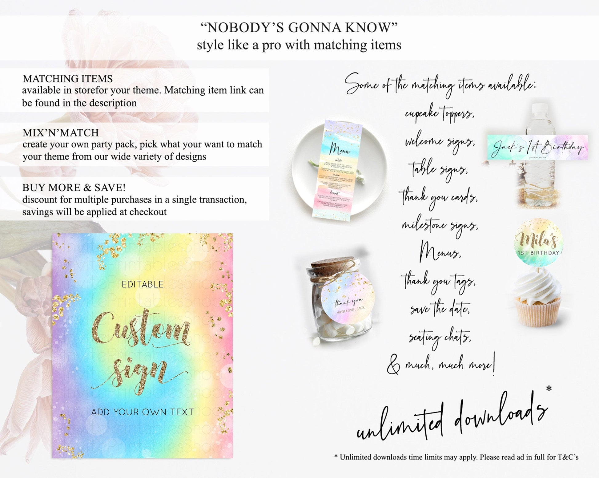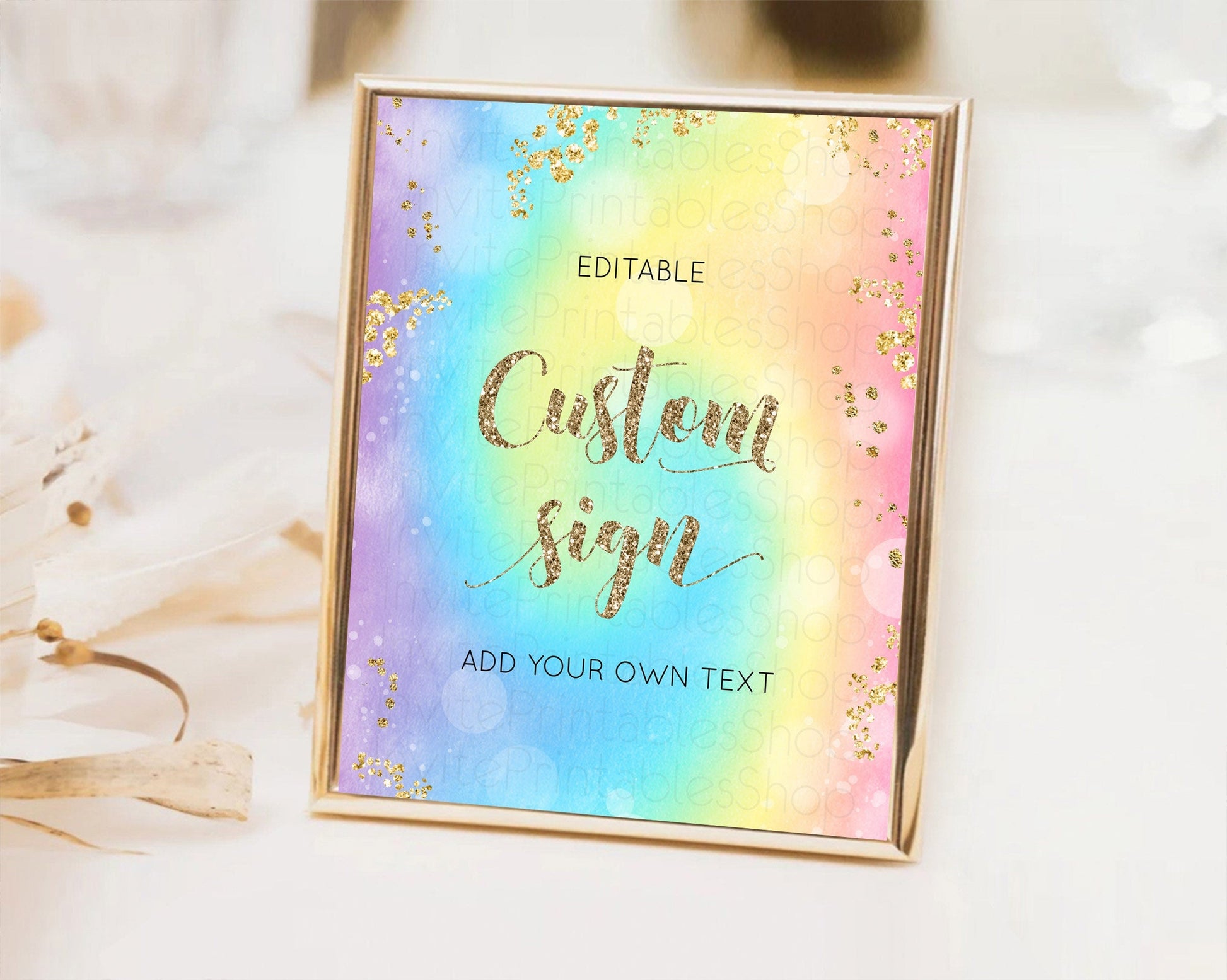 Tie Dye Sign Ombre Table Sign Decor Rainbow Pastel Ombre Watercolor Party 1st Birthday Baptism Baby Shower Bridal Shower Wedding D10568