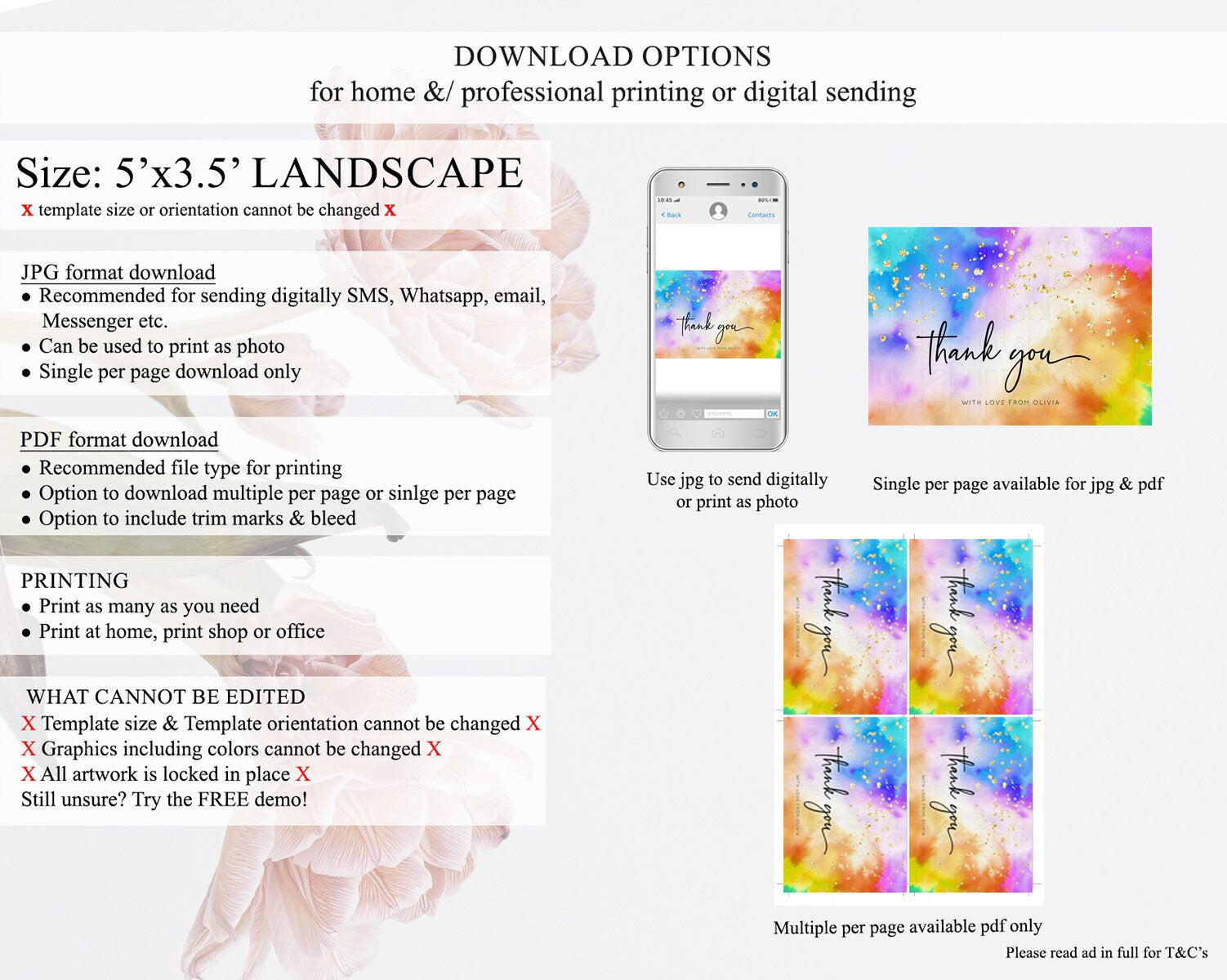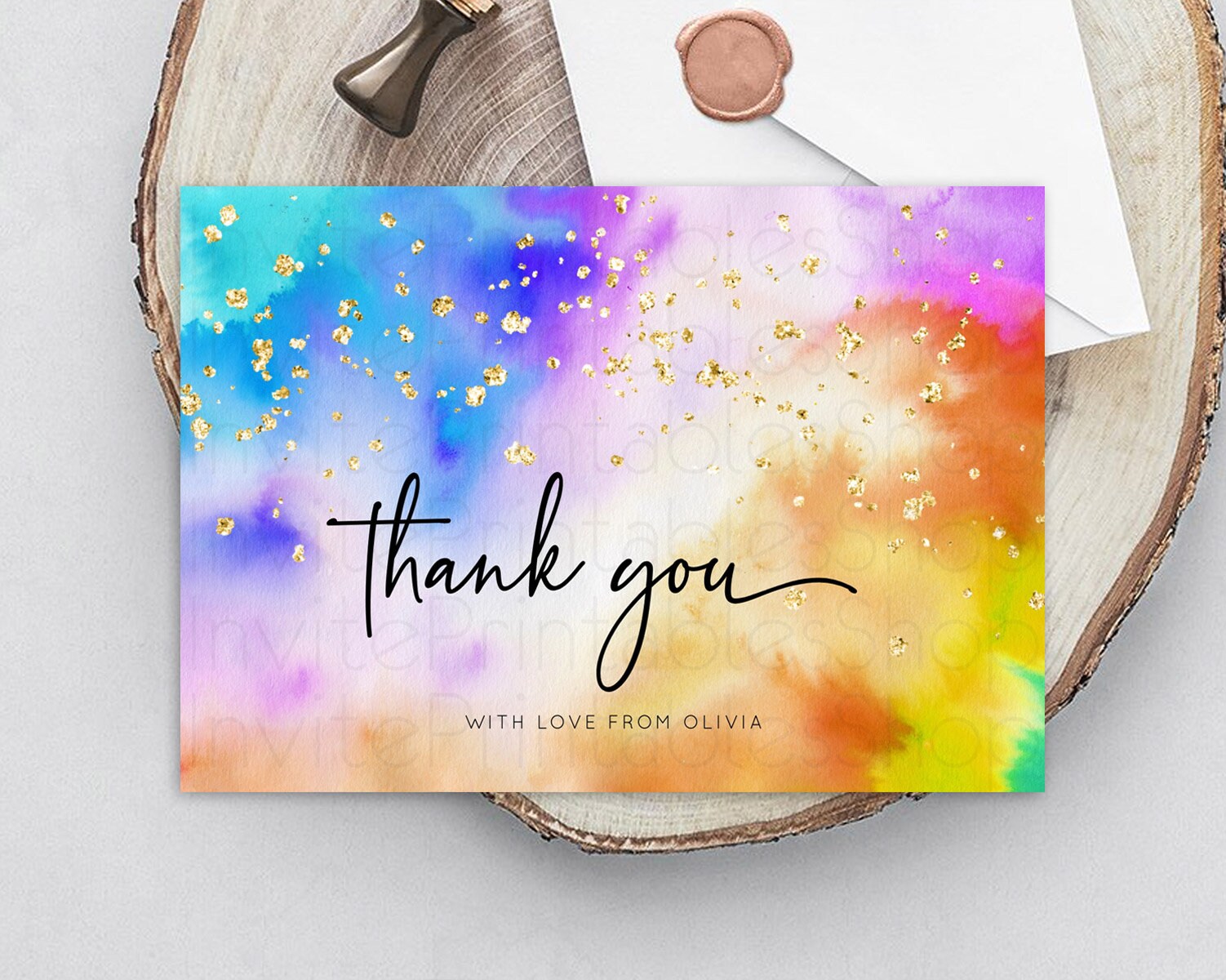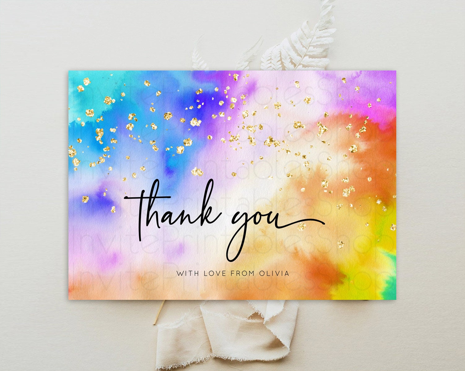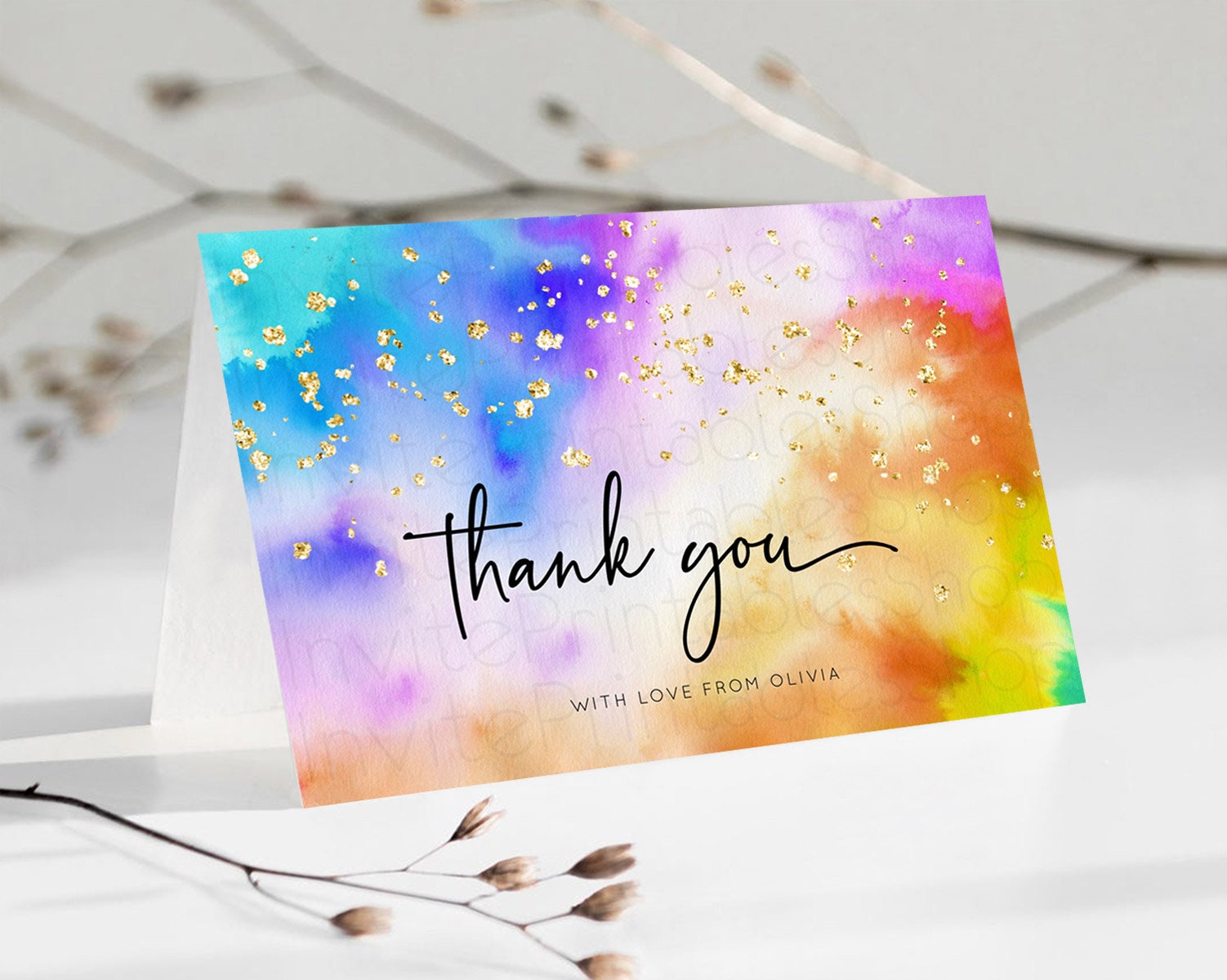 Tie Dye Thank You Rainbow Tie Dye Thank You Card Pastel Birthday Thank You Colorful Pastel Cards Rainbow Teacher Thank You Card D10530