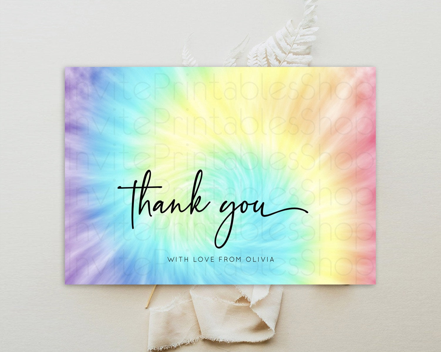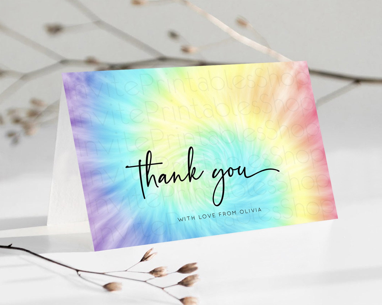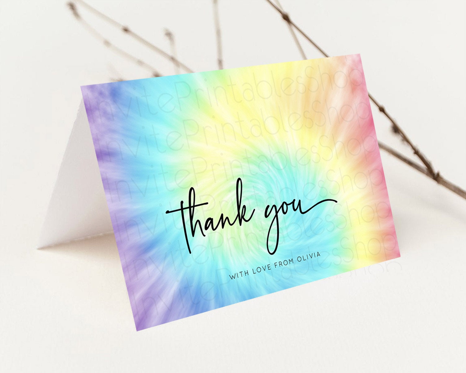 Tie Dye Thank You Rainbow Tie Dye Thank You Card Pastel Birthday Thank You Colorful Pastel Cards Rainbow Teacher Thank You Card D10578
