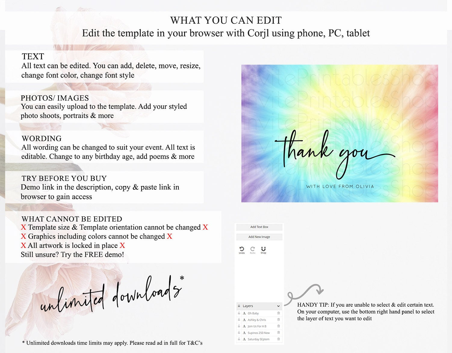 • After purchase, Corjl emails your editing link. Allow up to 15 minutes for delivery.