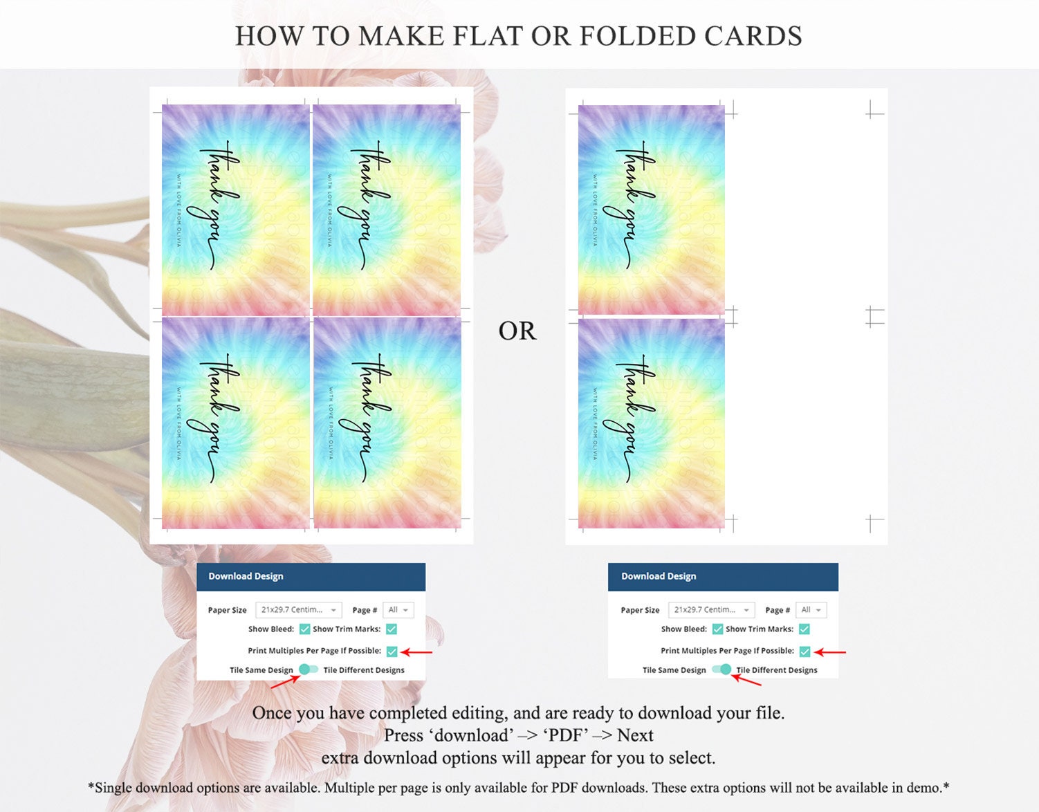 • Custom changes to artwork are not provided on existing templates.