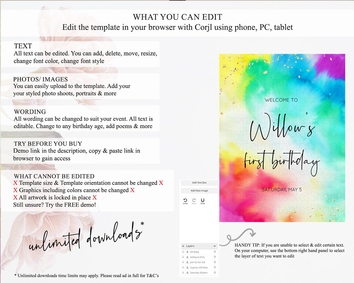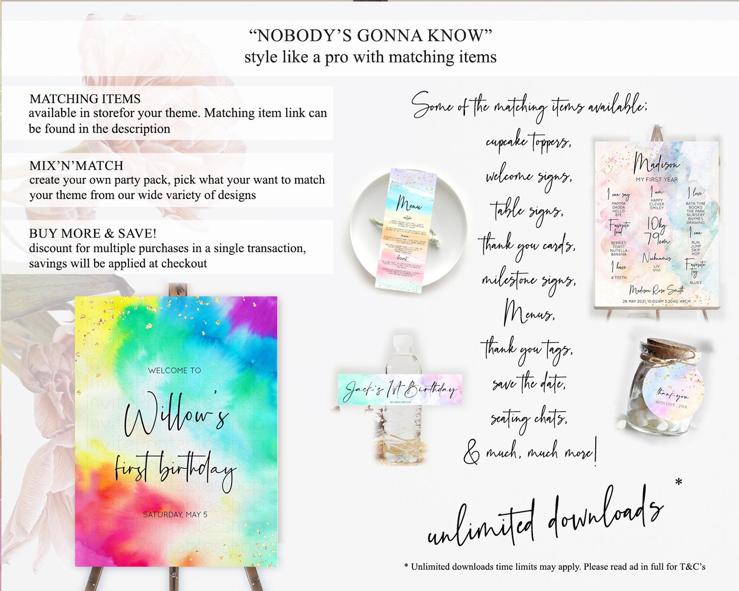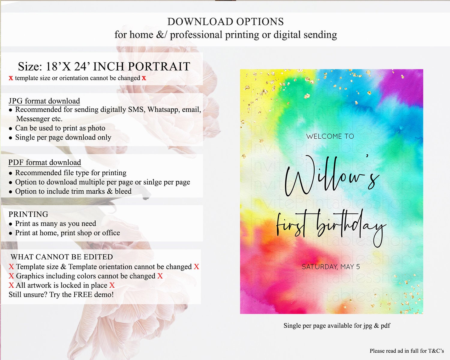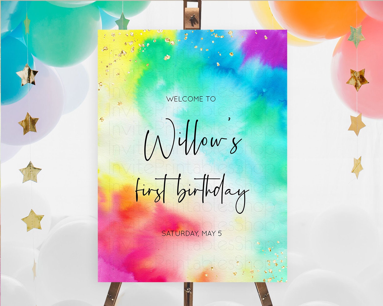 Tie Dye Welcome Board Rainbow Tie Dye Welcome Sign Pastel Welcome Poster Colorful Pastel Welcome Rainbow First Birthday Welcome Sign D10462