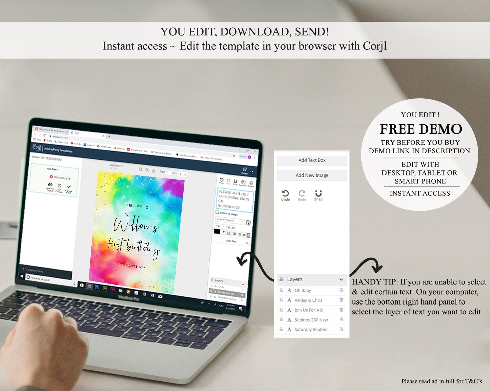 • After purchase, Corjl emails your editing link. Allow up to 15 minutes for delivery.