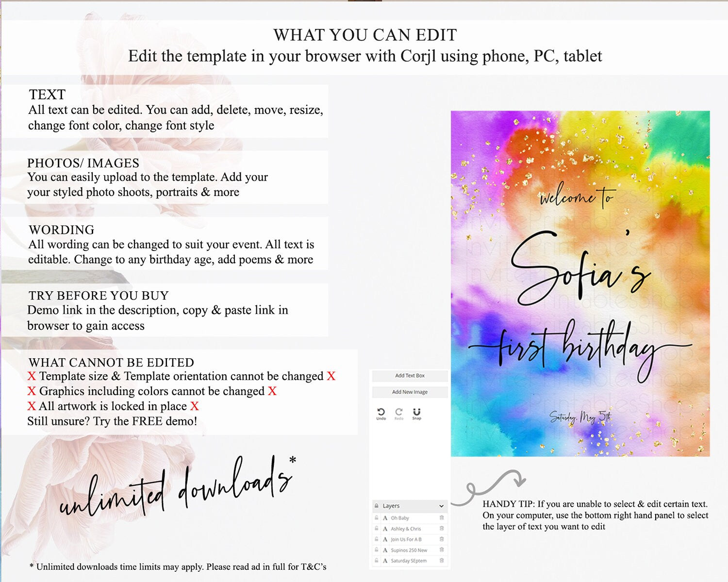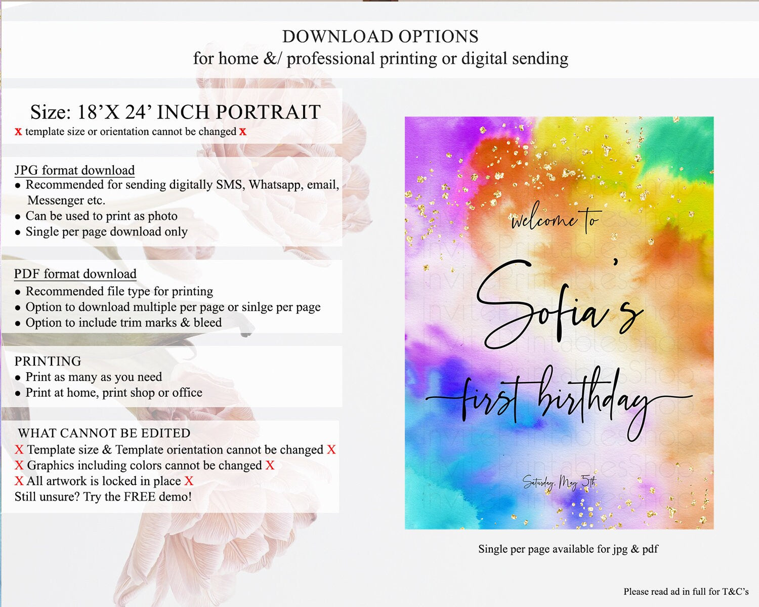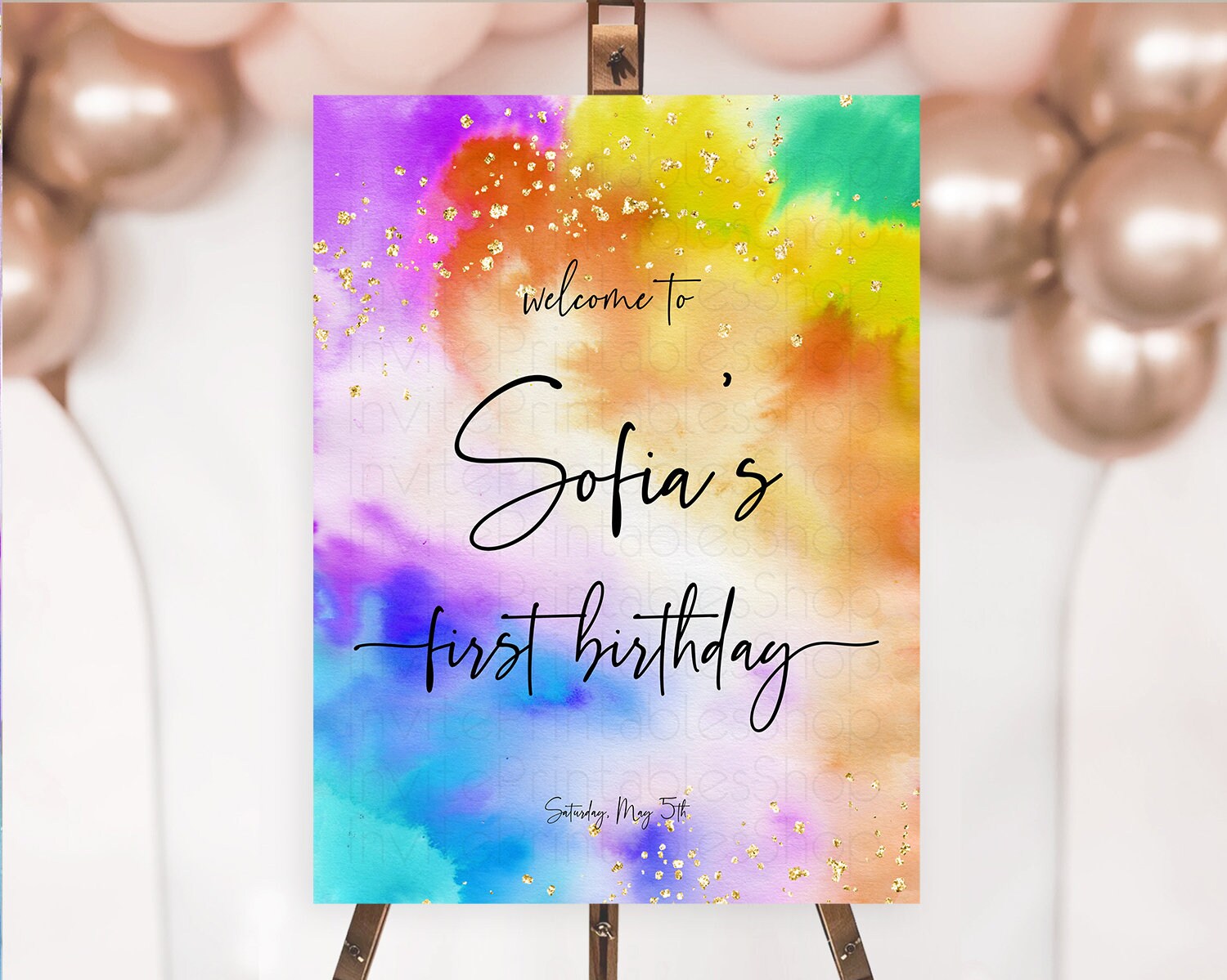 Tie Dye Welcome Board Rainbow Tie Dye Welcome Sign Pastel Welcome Poster Colorful Pastel Welcome Rainbow First Birthday Welcome Sign D10530