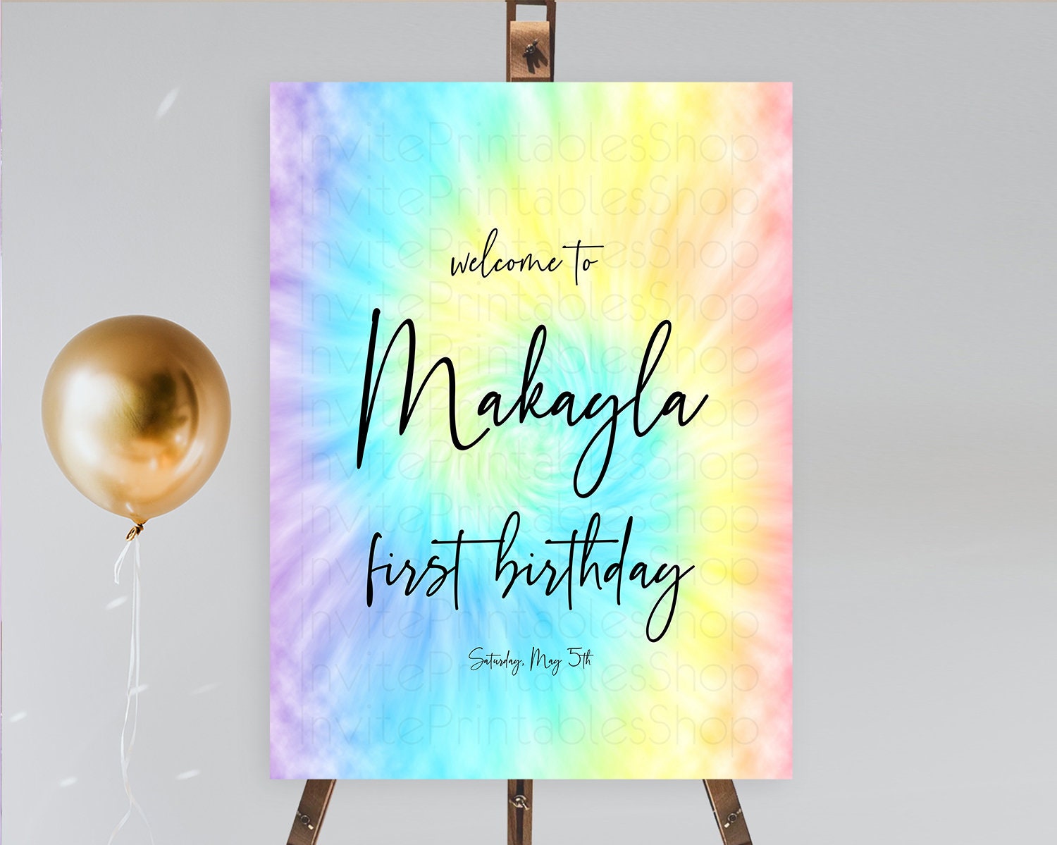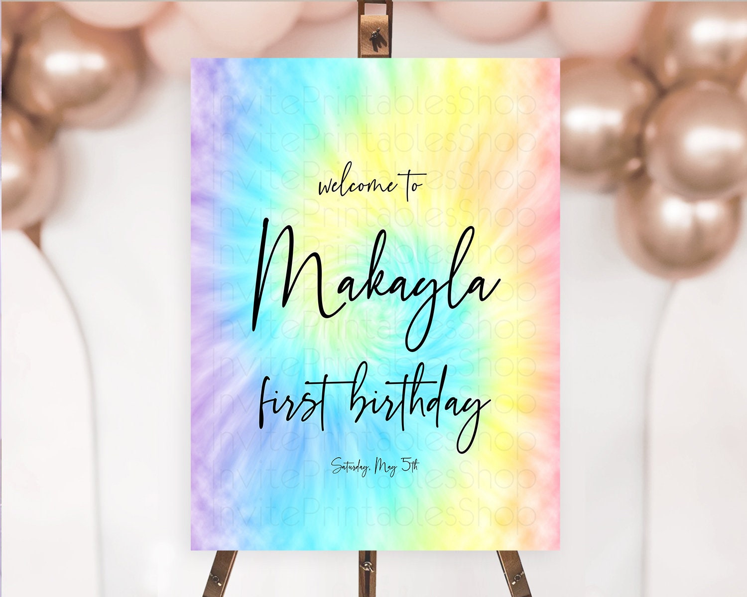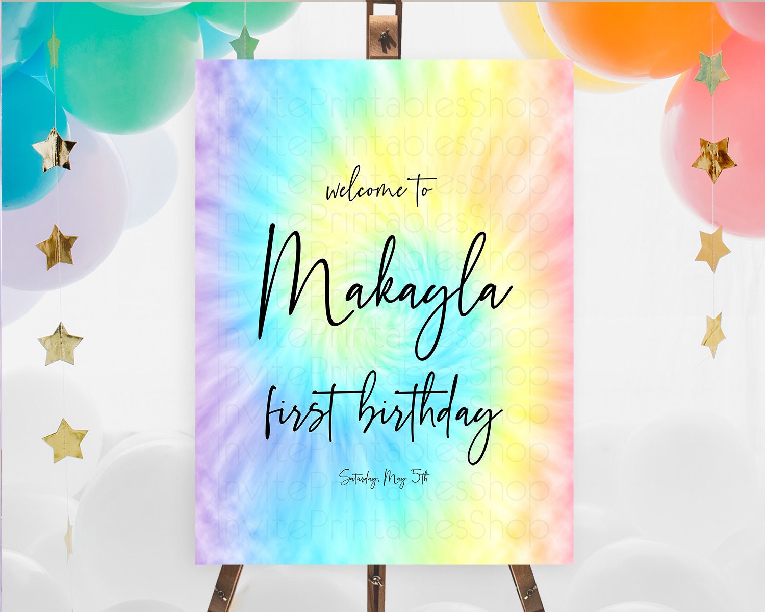 Tie Dye Welcome Board Rainbow Tie Dye Welcome Sign Pastel Welcome Poster Colorful Pastel Welcome Rainbow First Birthday Welcome Sign D10578