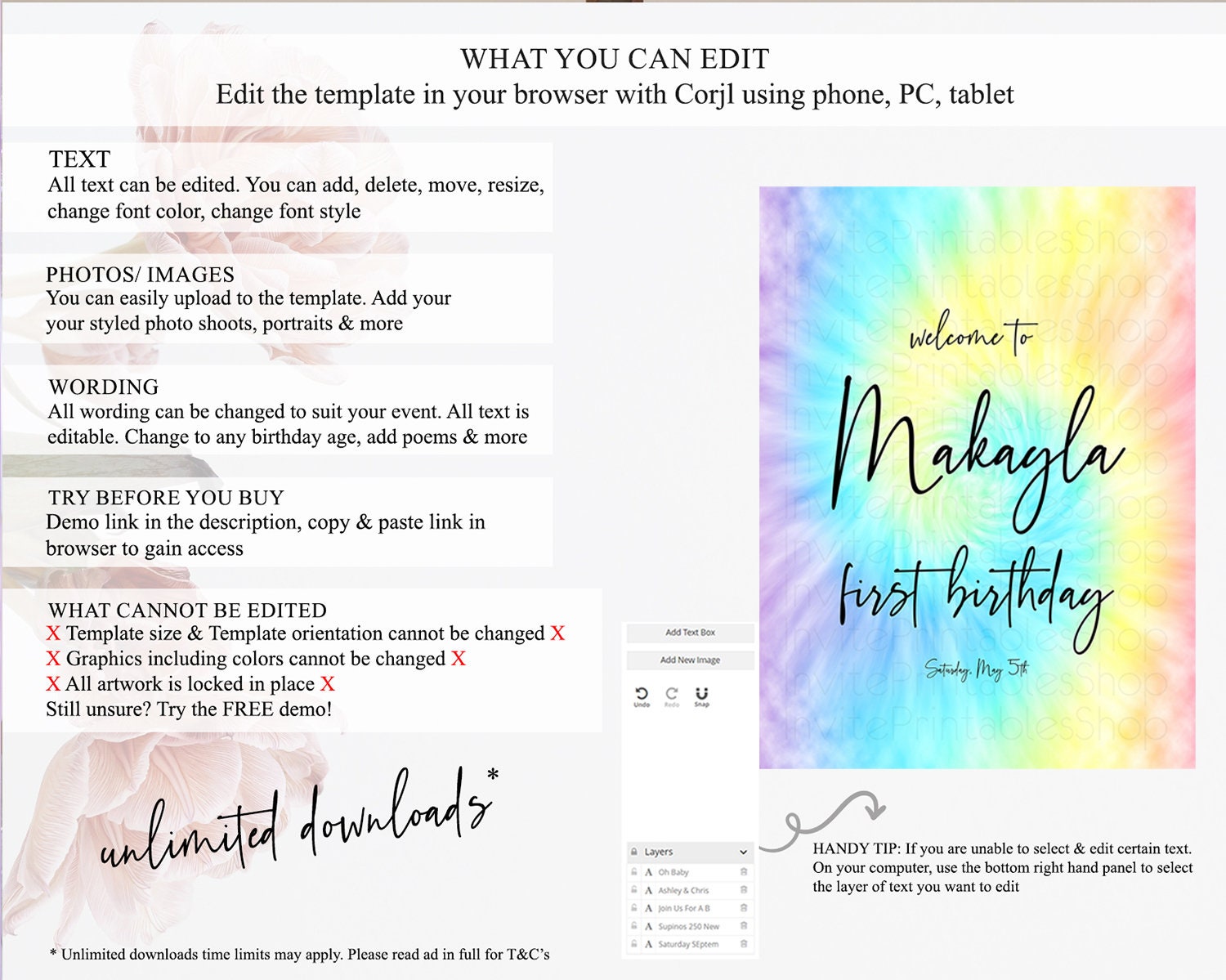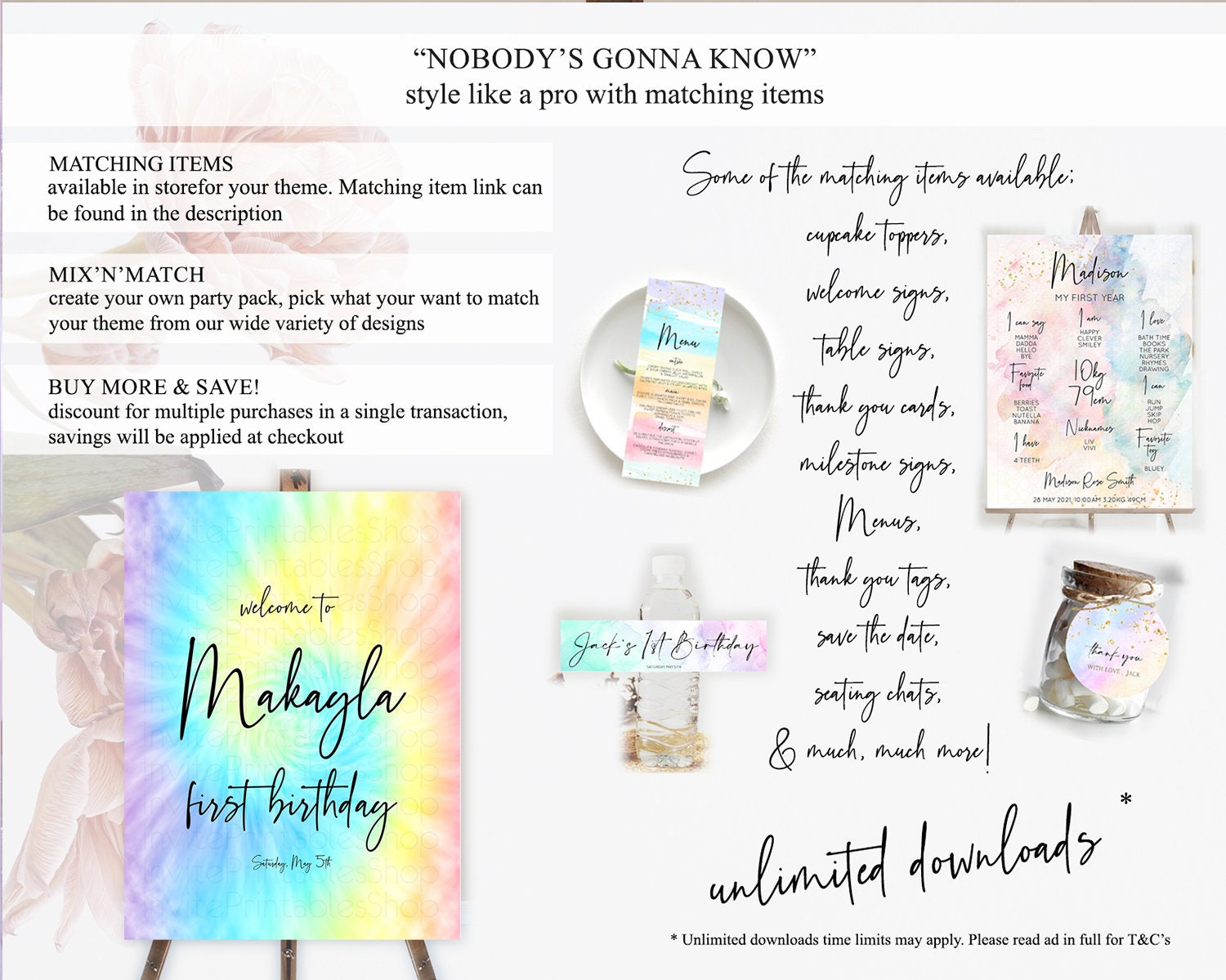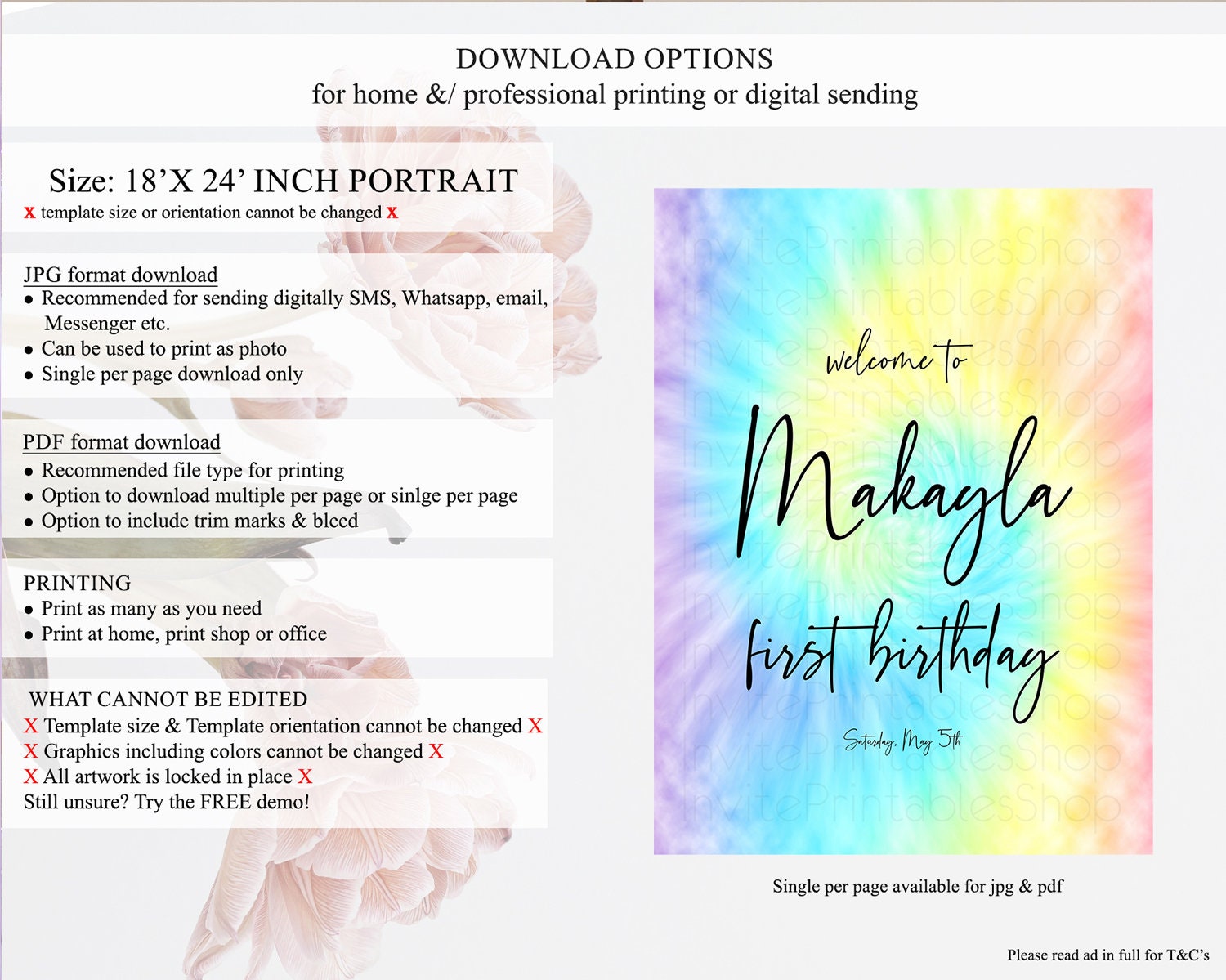 Tie Dye Welcome Board Rainbow Tie Dye Welcome Sign Pastel Welcome Poster Colorful Pastel Welcome Rainbow First Birthday Welcome Sign D10578