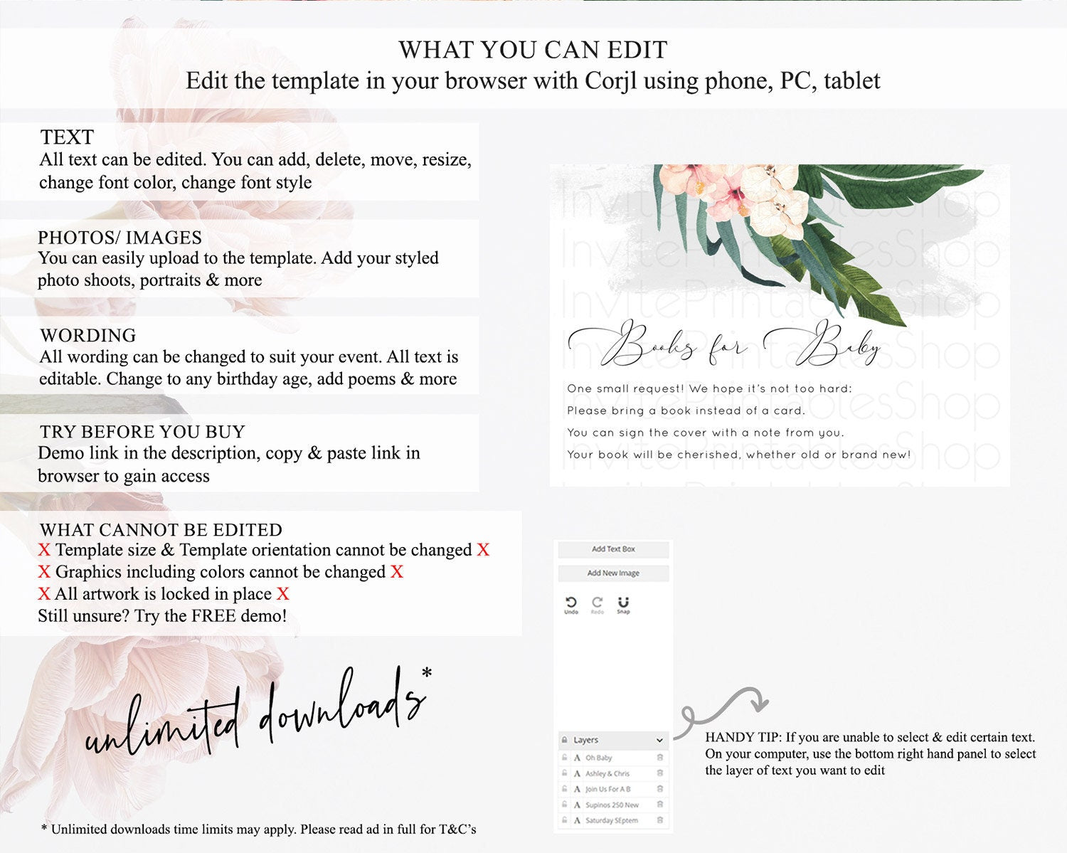 Tropical Books For Baby Card Tropical Book Insert Palm Leaf Book Card Fern Frangipani Floral White Orchid Guests Book Poem Request D11011