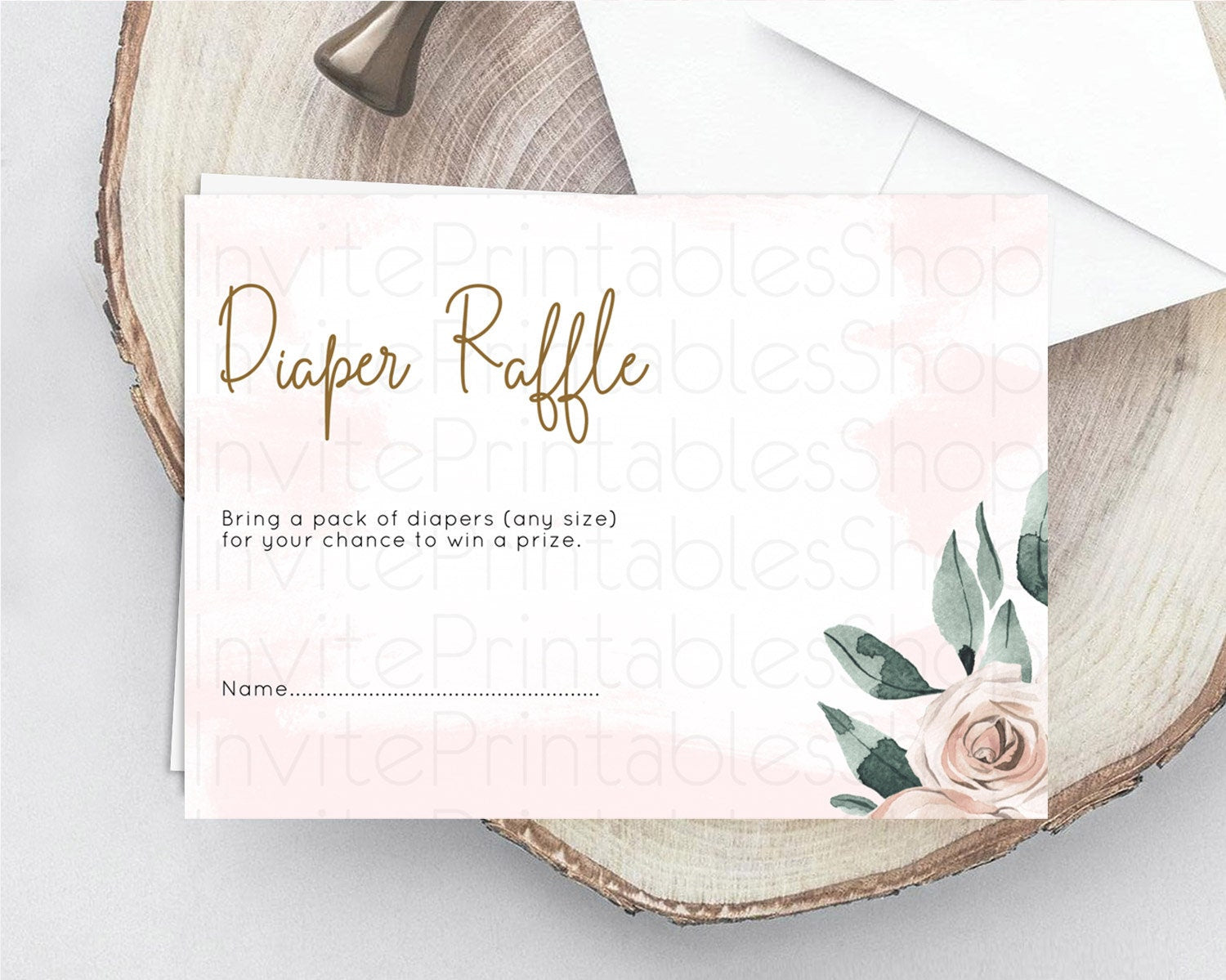 Tropical Diaper Raffle Card Tropical Diaper Raffle Insert Palm Leaf Diaper Ticket Fern Frangipani Floral White Orchid Raffle Game D11010