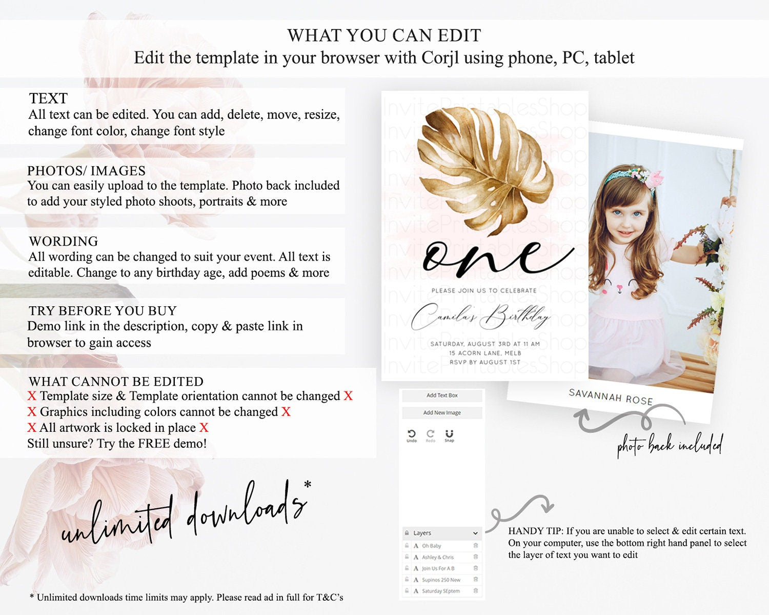 Tropical Invitation Tropical Birthday Invitation Tropical Floral Invitation Palm Leaf Fern Invite Frangipani White Orchid Invitation D11042