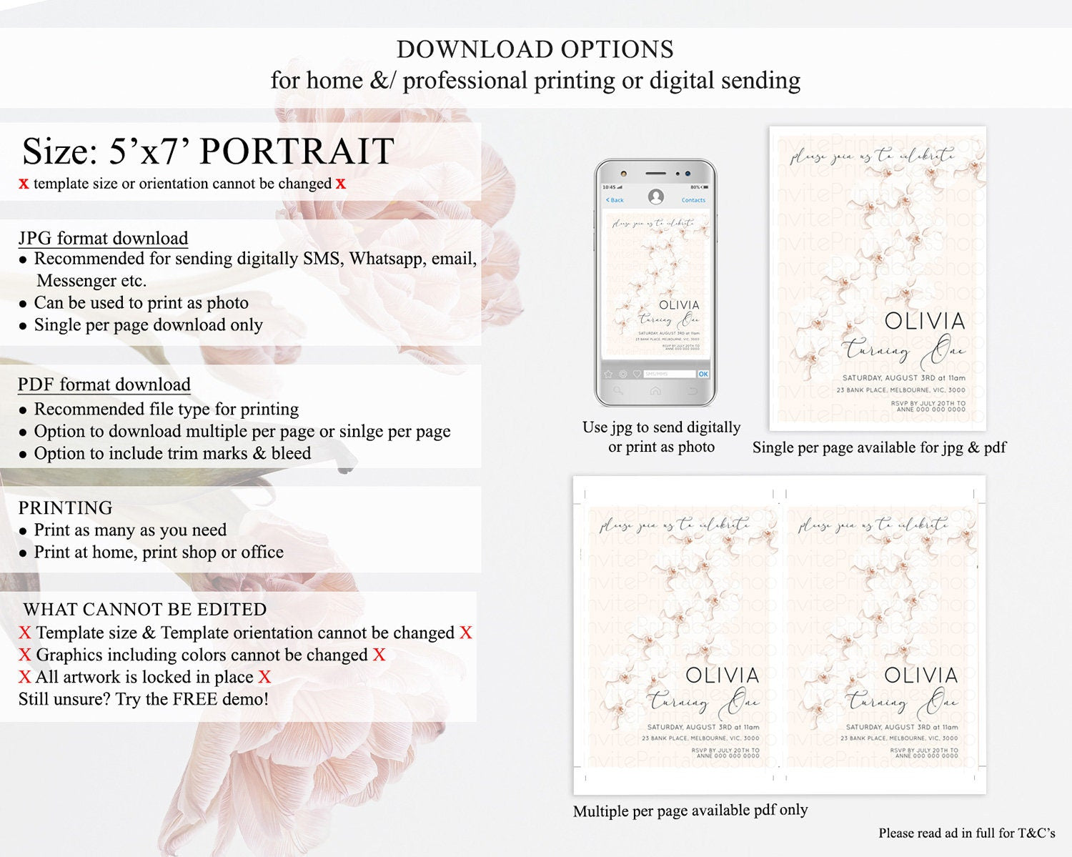 Tropical Invitation Tropical Birthday Invitation Tropical Floral Invitation Palm Leaf Fern Invite Frangipani White Orchid Invitation D11049