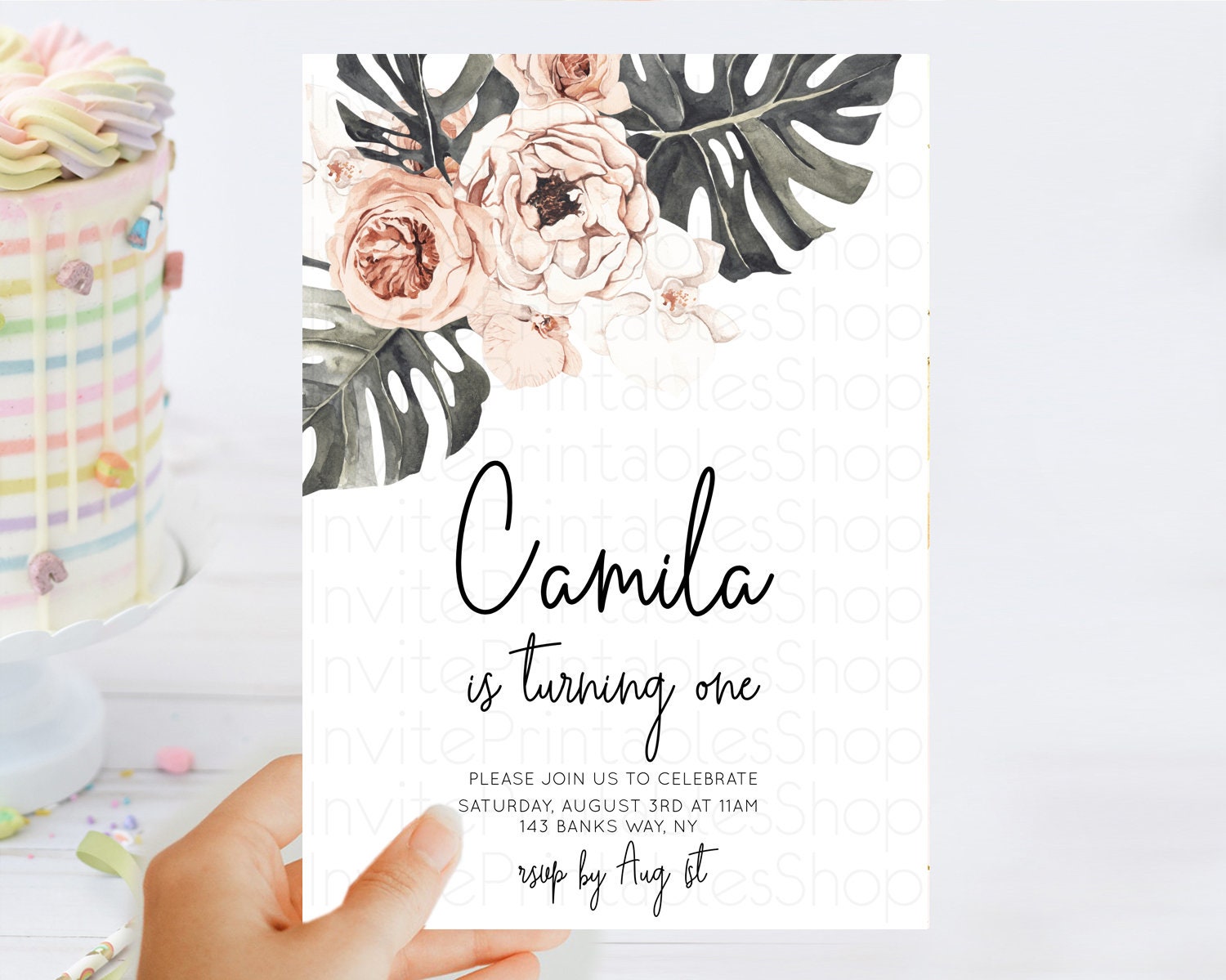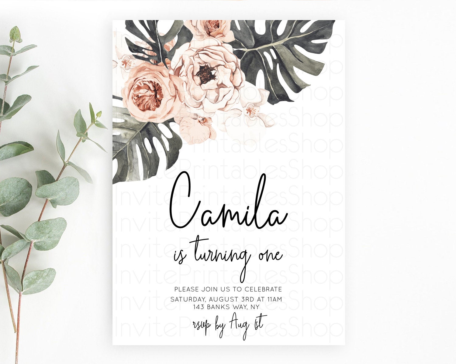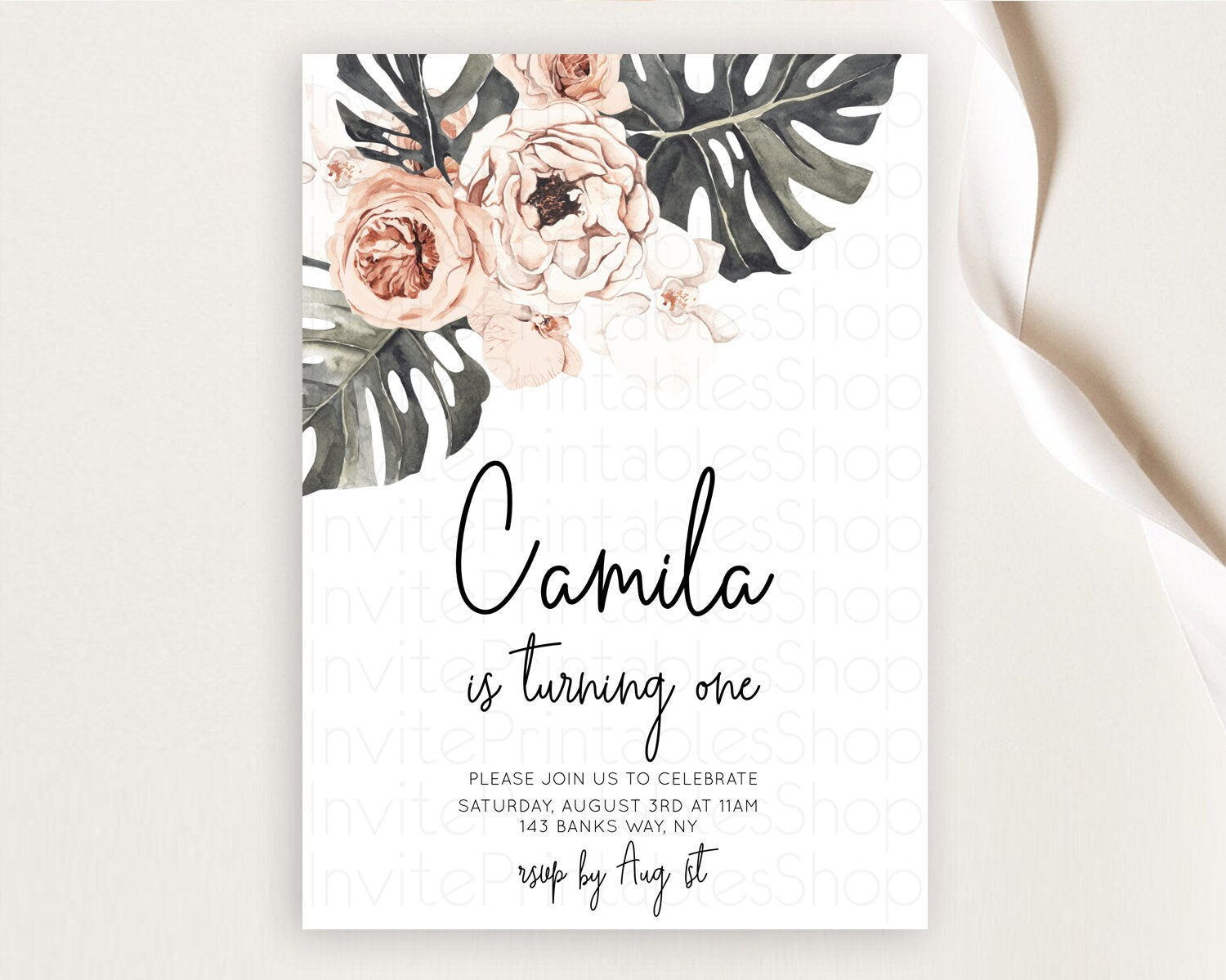 Tropical Invitation Tropical Birthday Invitation Tropical Floral Invitation Palm Leaf Fern Invite Frangipani White Orchid Invitation D11050