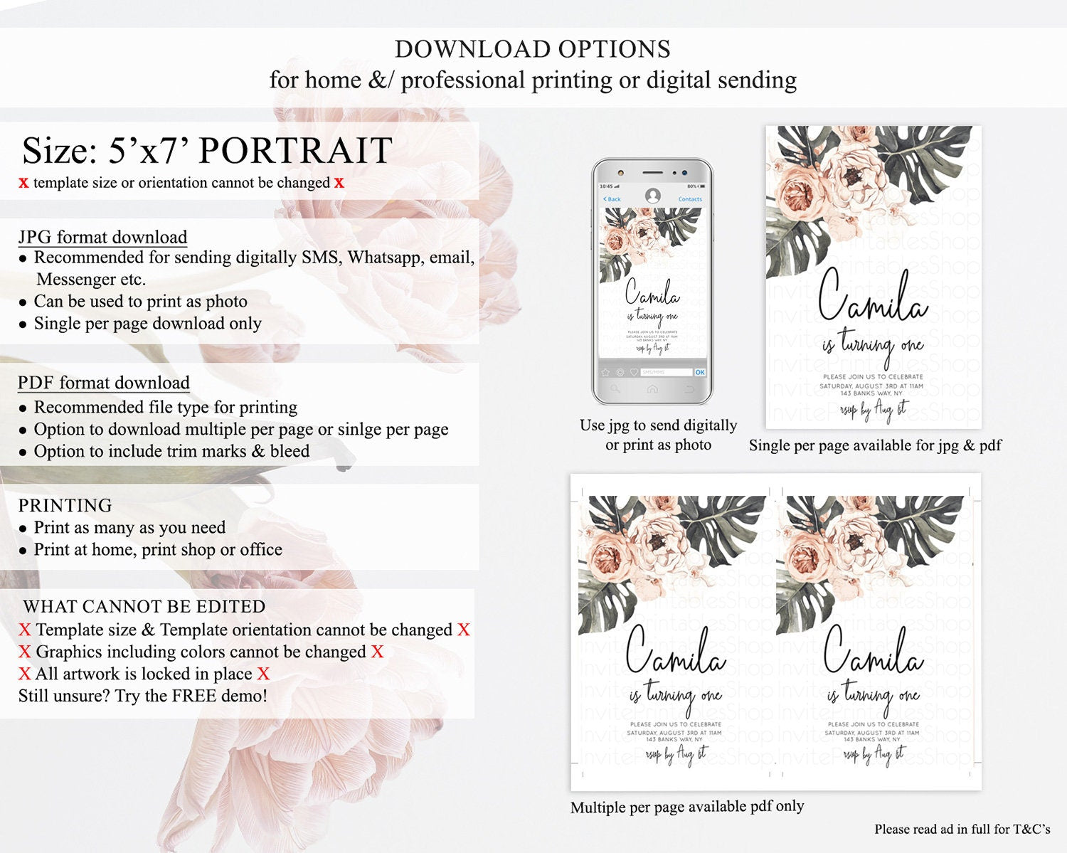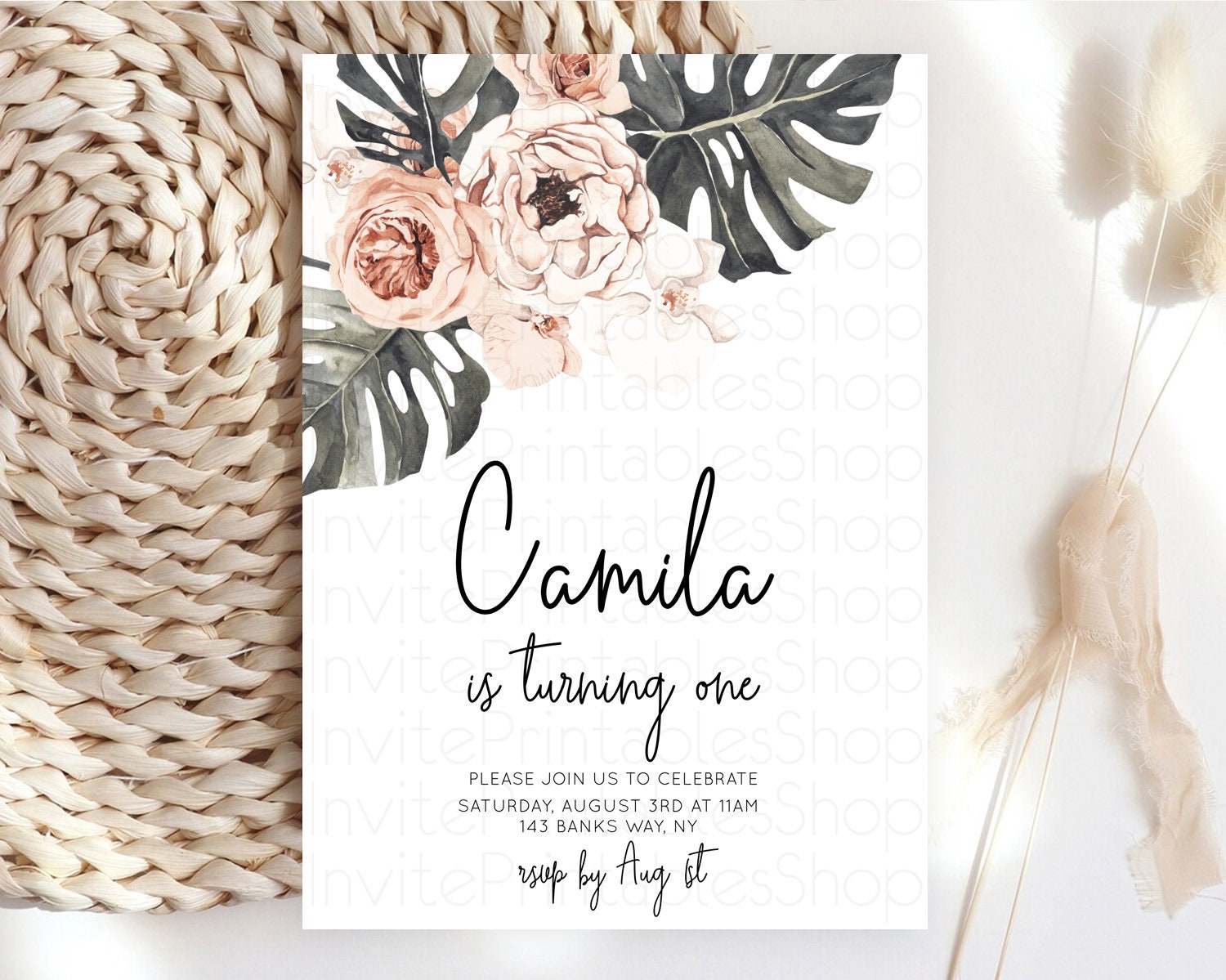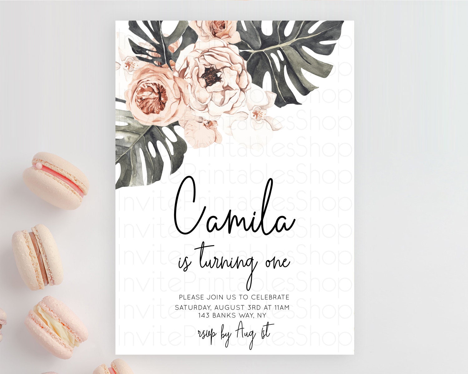 Tropical Invitation Tropical Birthday Invitation Tropical Floral Invitation Palm Leaf Fern Invite Frangipani White Orchid Invitation D11050