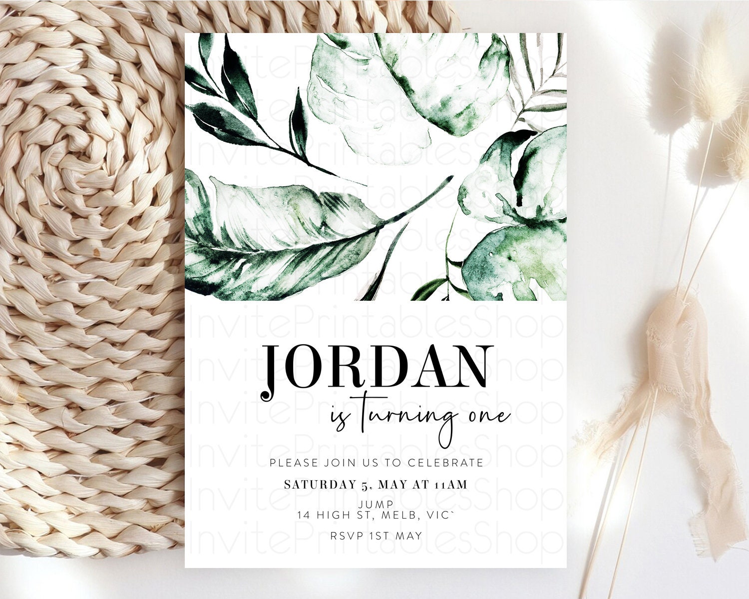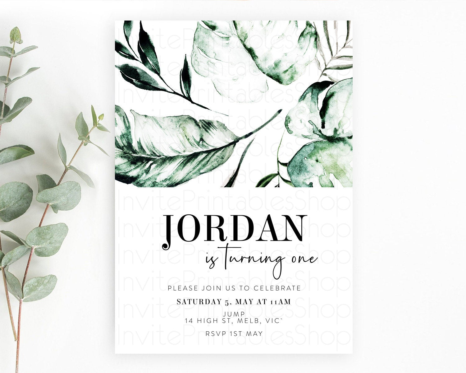 Tropical Invitation Tropical Birthday Invitation Tropical Floral Invitation Palm Leaf Fern Invite Frangipani White Orchid Invitation D11063