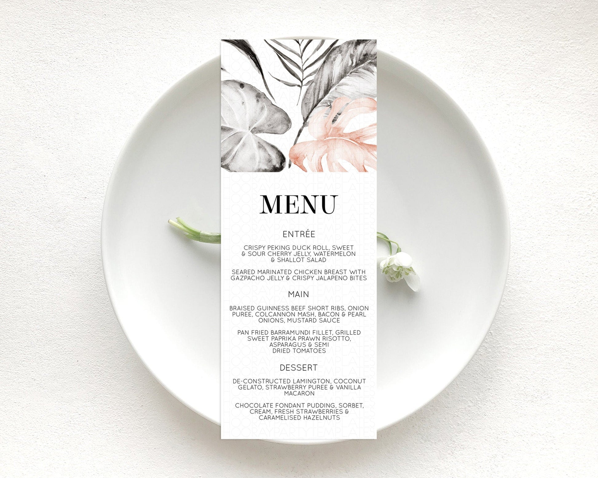 Tropical Menu Template Tropical Menu Palm Leaf Fern Table Decor Frangipani Floral White Orchid Dinner Dessert Menu Party Food Menu D11065