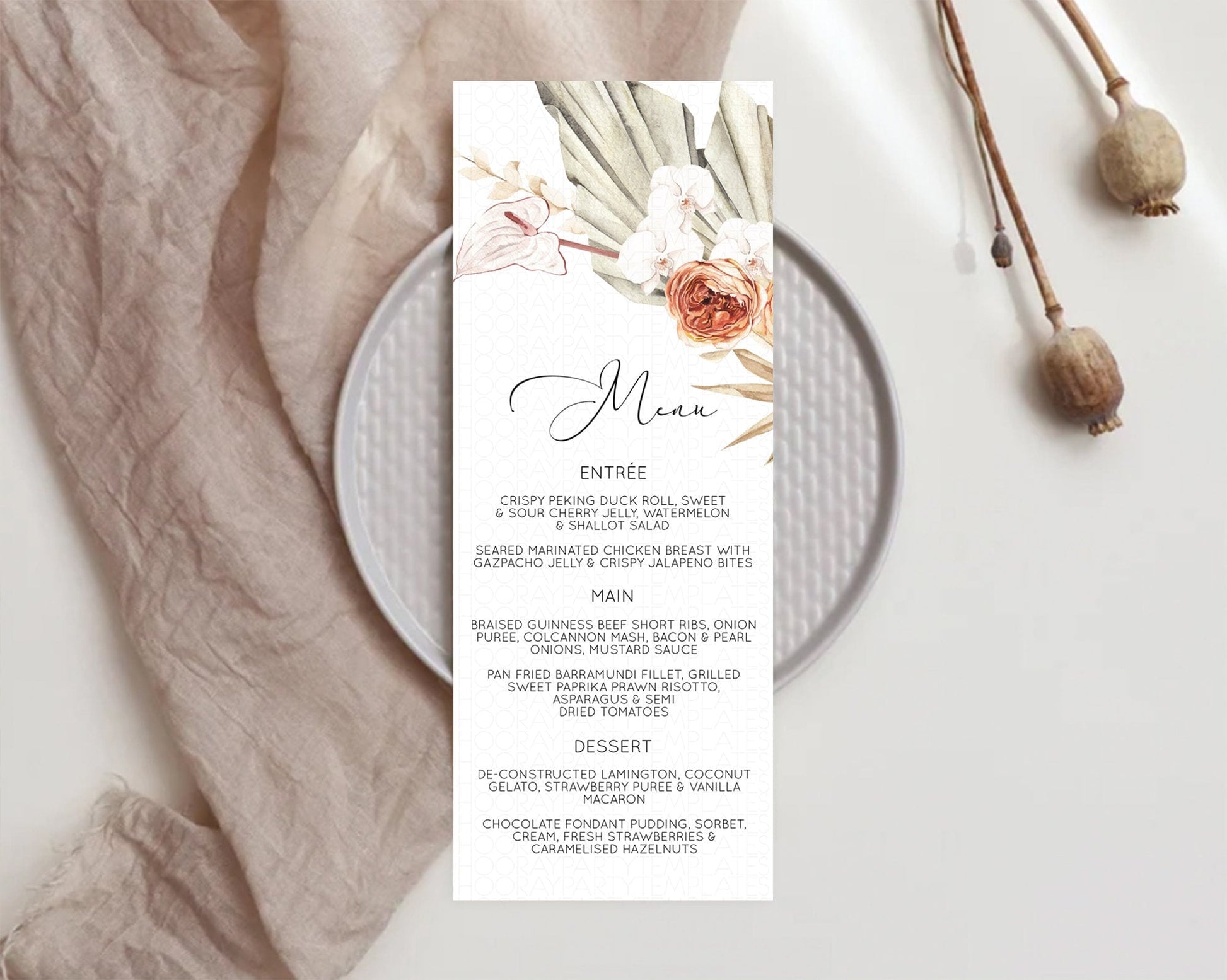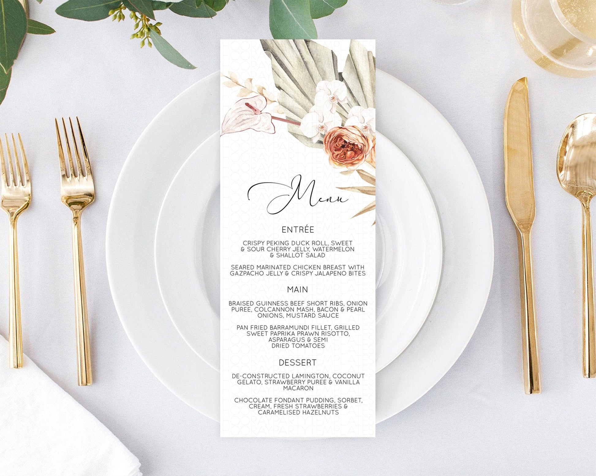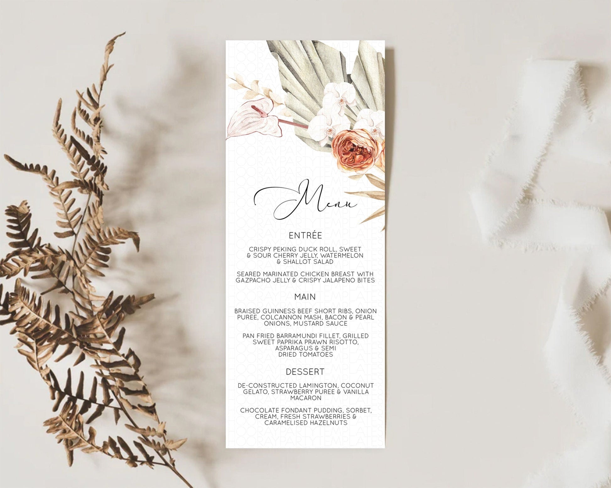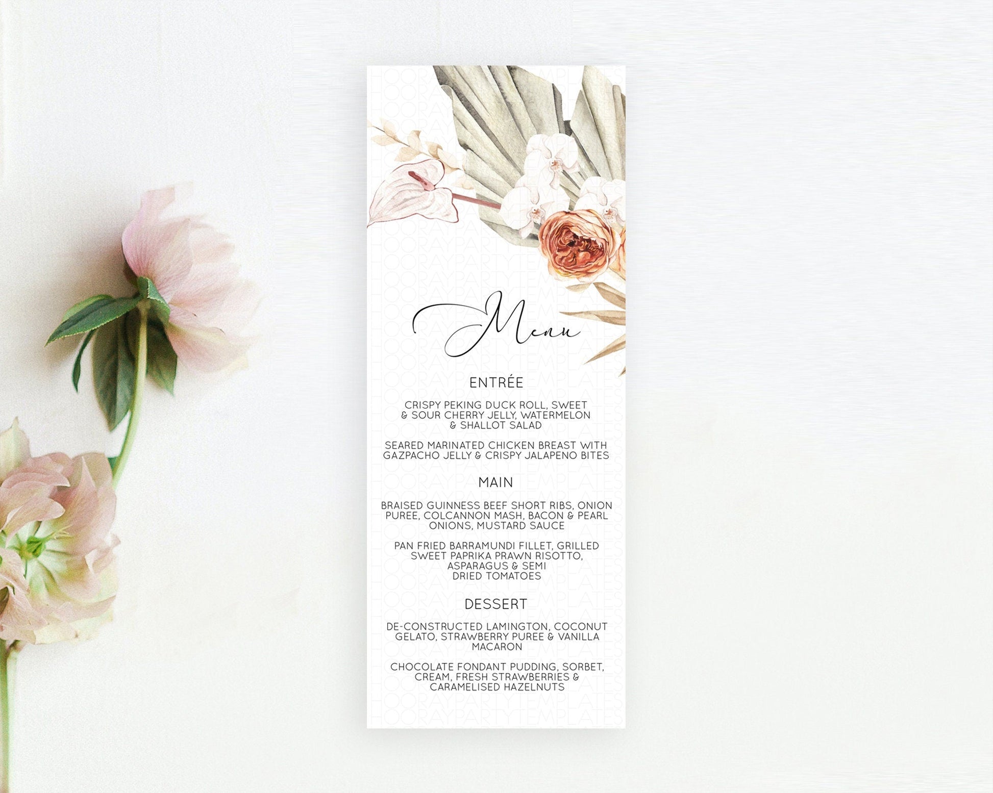 Tropical Menu Template Tropical Menu Palm Leaf Fern Table Decor Frangipani Floral White Orchid Dinner Dessert Menu Party Food Menu D11070