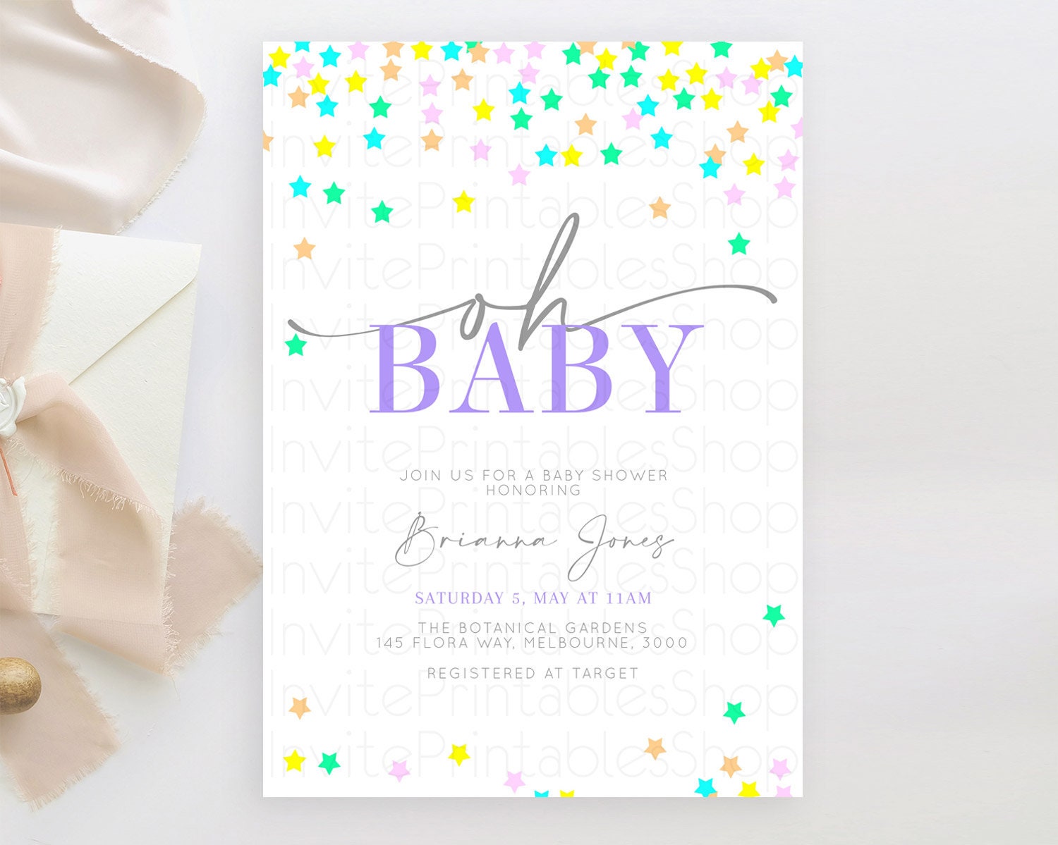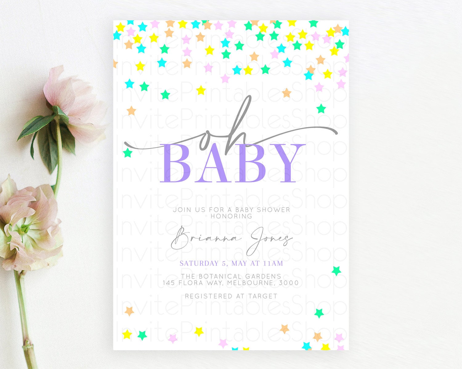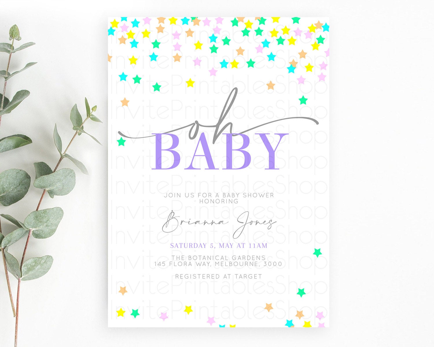 Twinkle Star Baby Shower Invitation Pastel Twinkle Star Invitation Rainbow Pastel Colorful Confetti Twinkle Little Star Baby Shower D10395