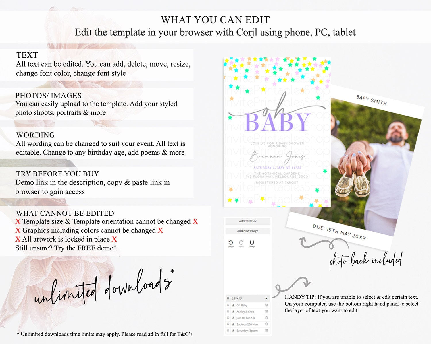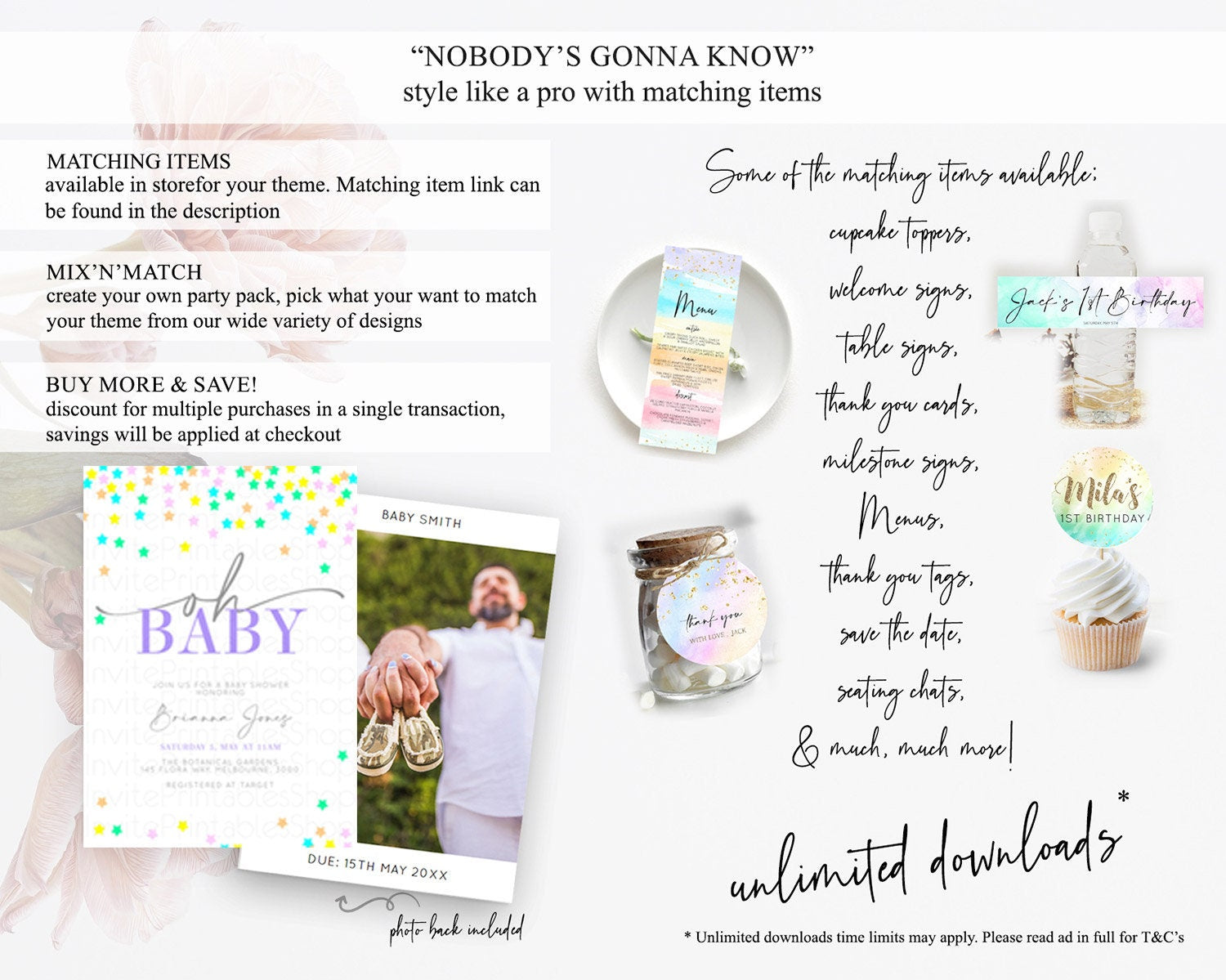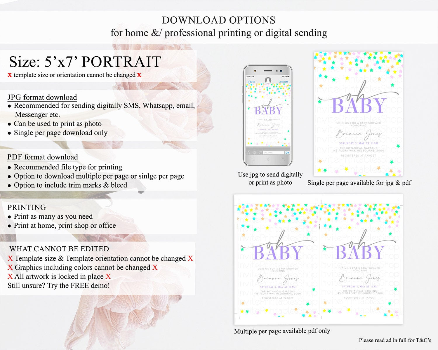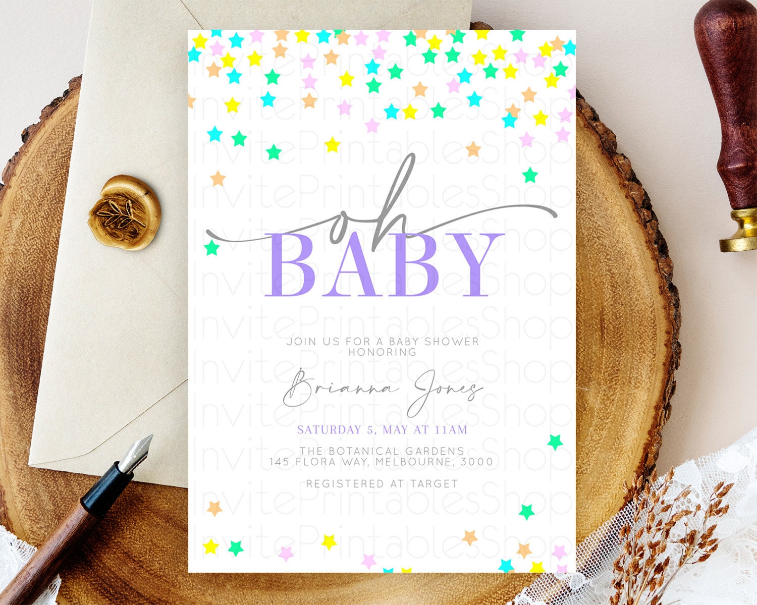 Twinkle Star Baby Shower Invitation Pastel Twinkle Star Invitation Rainbow Pastel Colorful Confetti Twinkle Little Star Baby Shower D10395