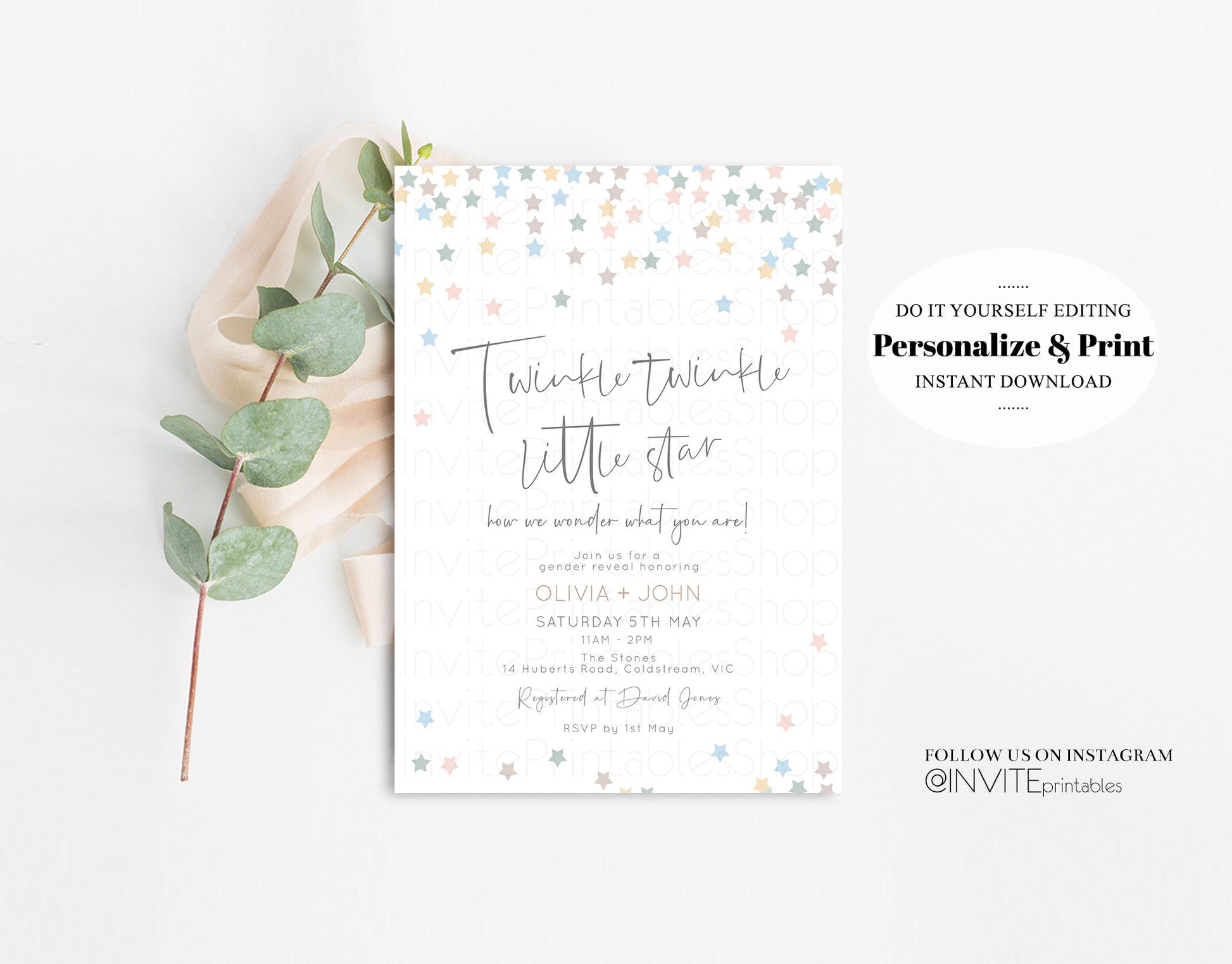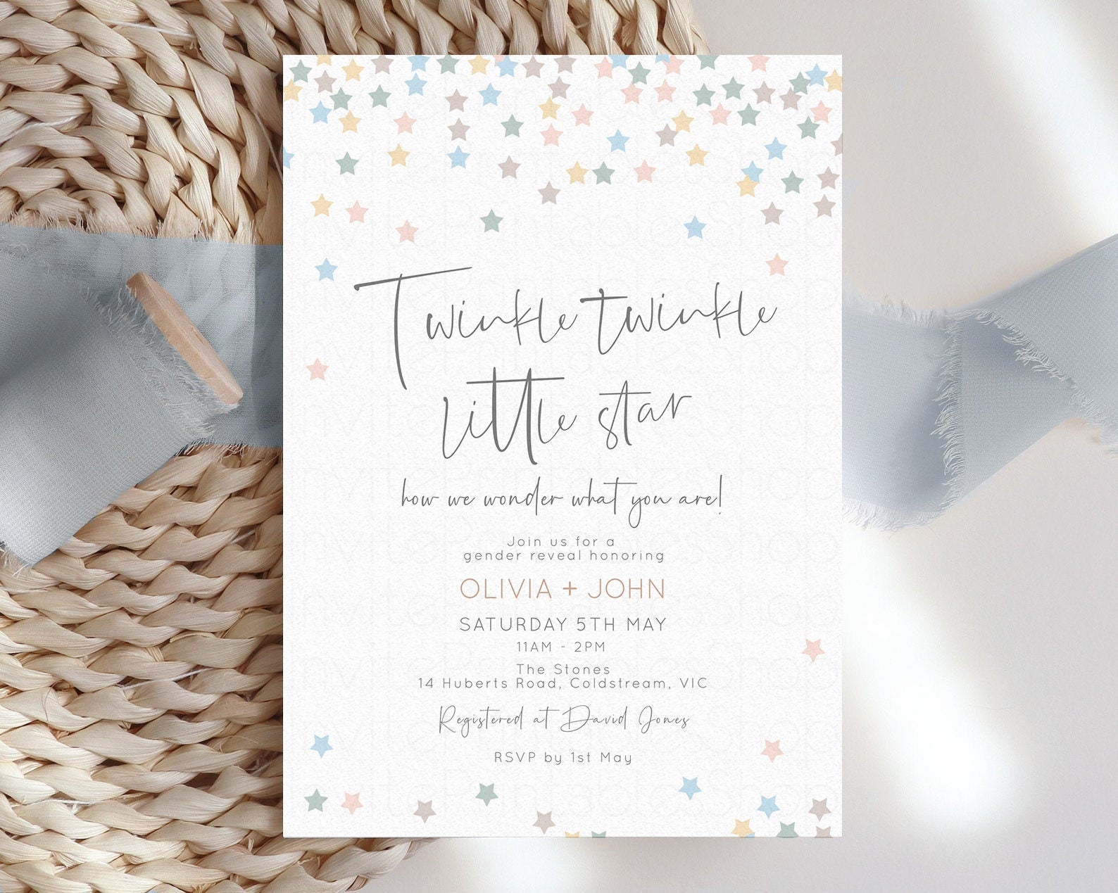 Twinkle Star Invitation Starry Baby Shower Invite Pastel Star Invite Star Invite Confetti Star Invite Sprinkles Twinkle Little Star Invite