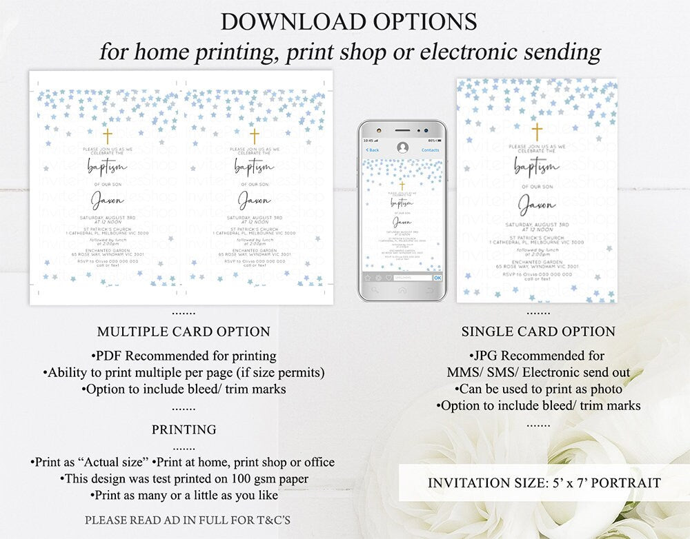 Twinkle Stars Baptism Invitation Confetti Stars Sprinkles Christening Invitation Soft Ombre Grey Green Blue Pastel Gold Orthodox Cross B423
