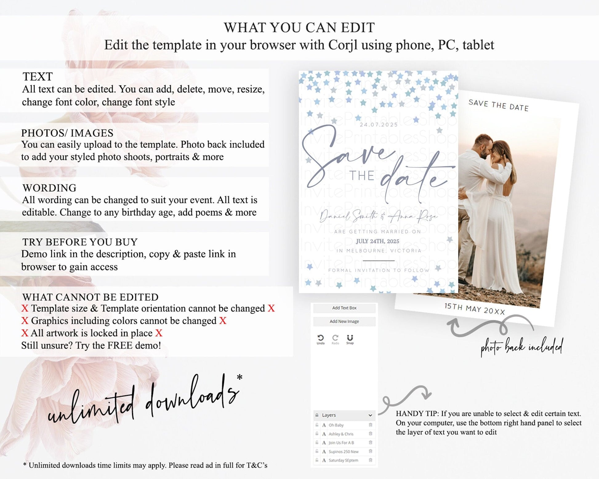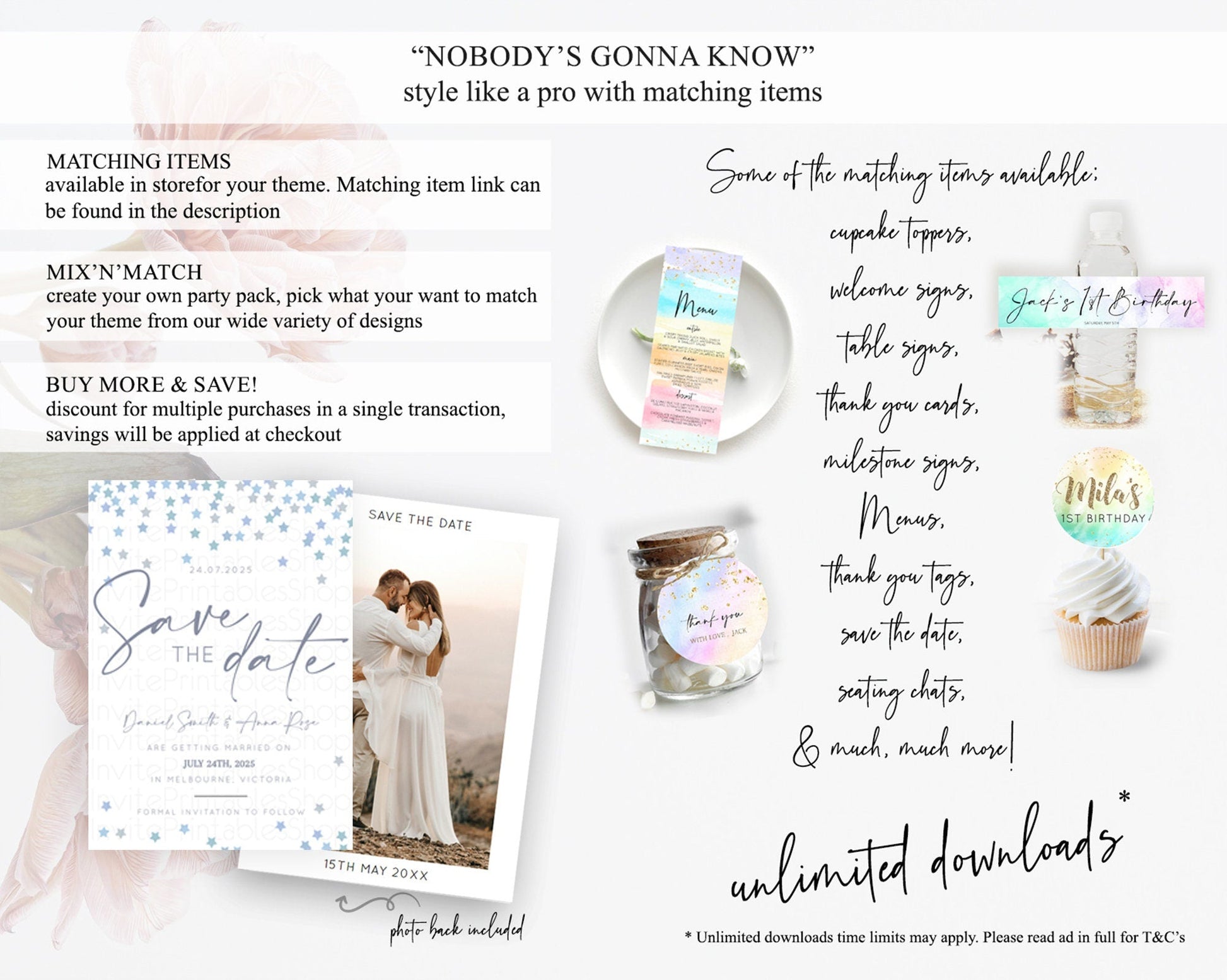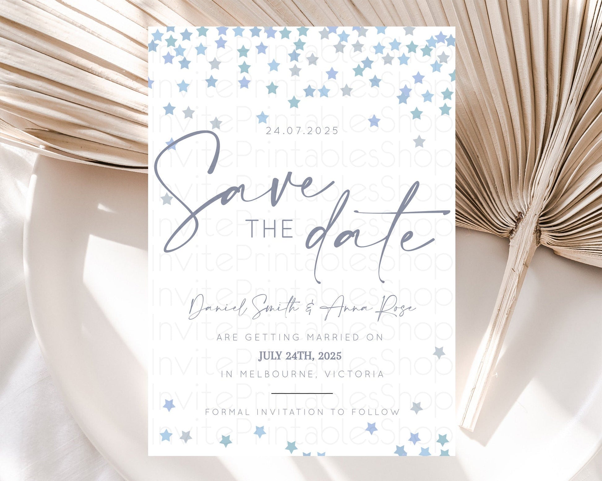 Twinkle Stars Save The Date Template Pastel Twinkle Little Star Party Shooting Star Confetti Sprinkles Birthday Baptism Baby Shower D10341