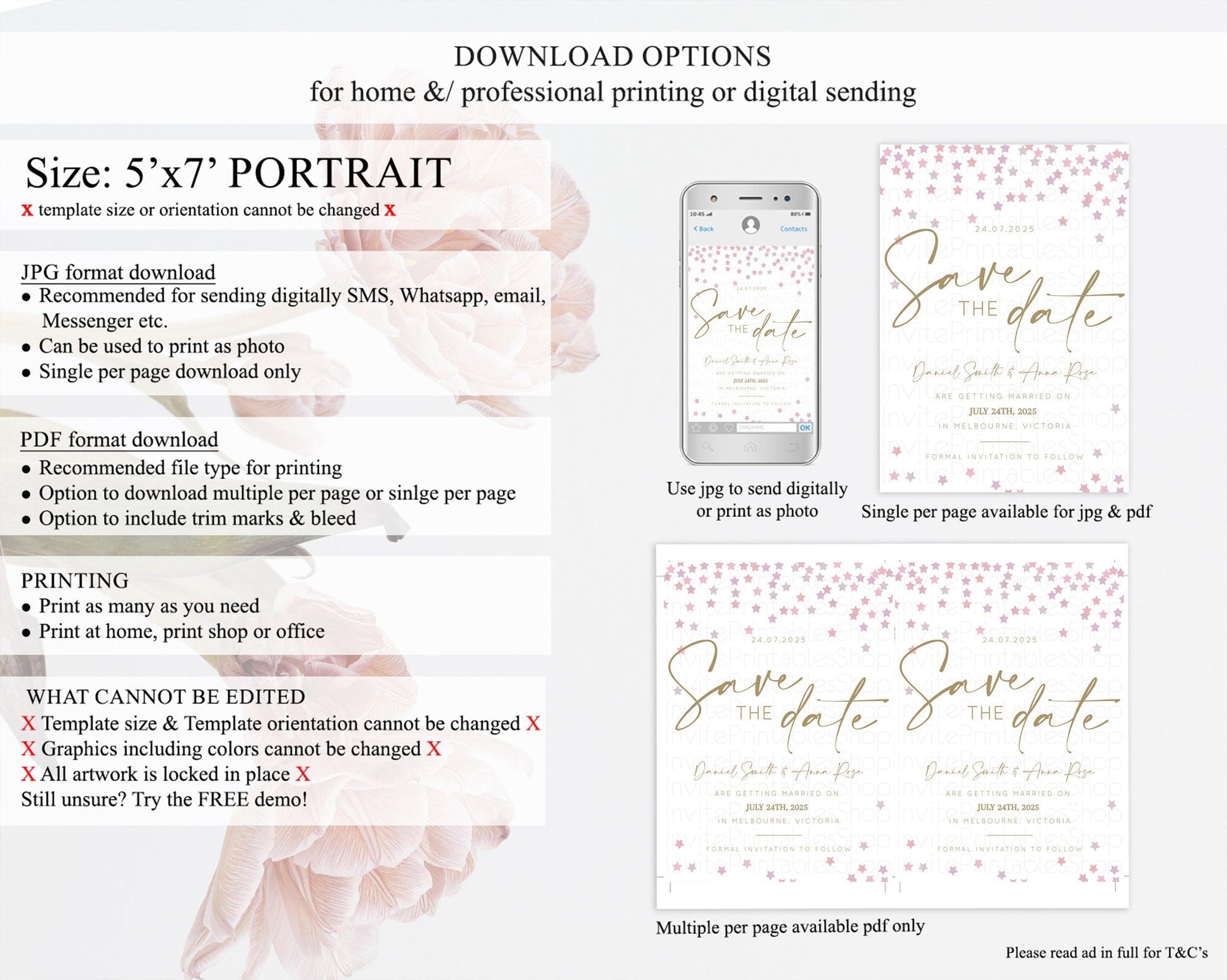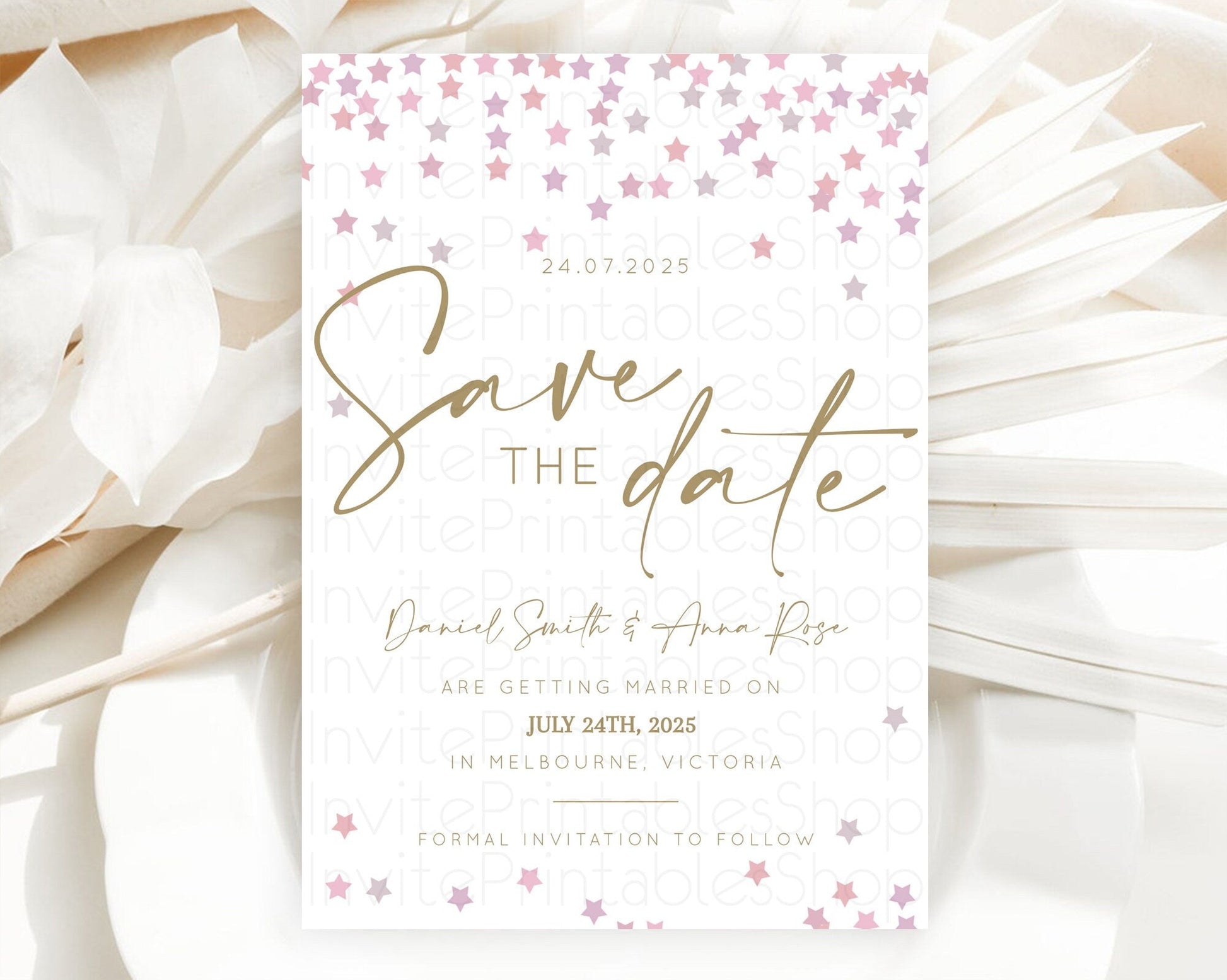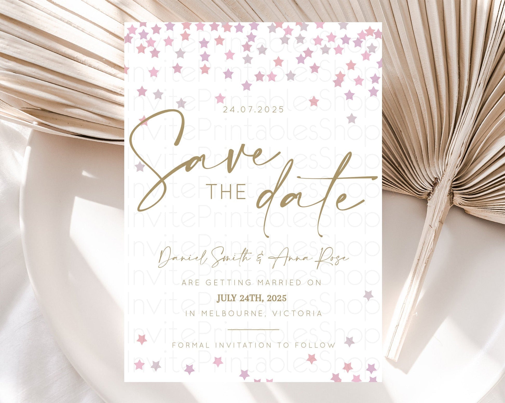 Twinkle Stars Save The Date Template Pastel Twinkle Little Star Party Shooting Star Confetti Sprinkles Birthday Baptism Baby Shower D10344