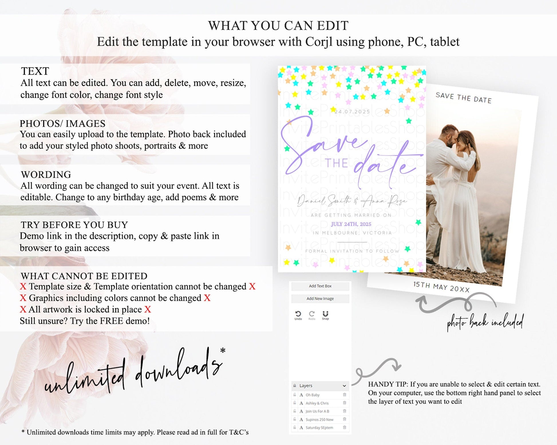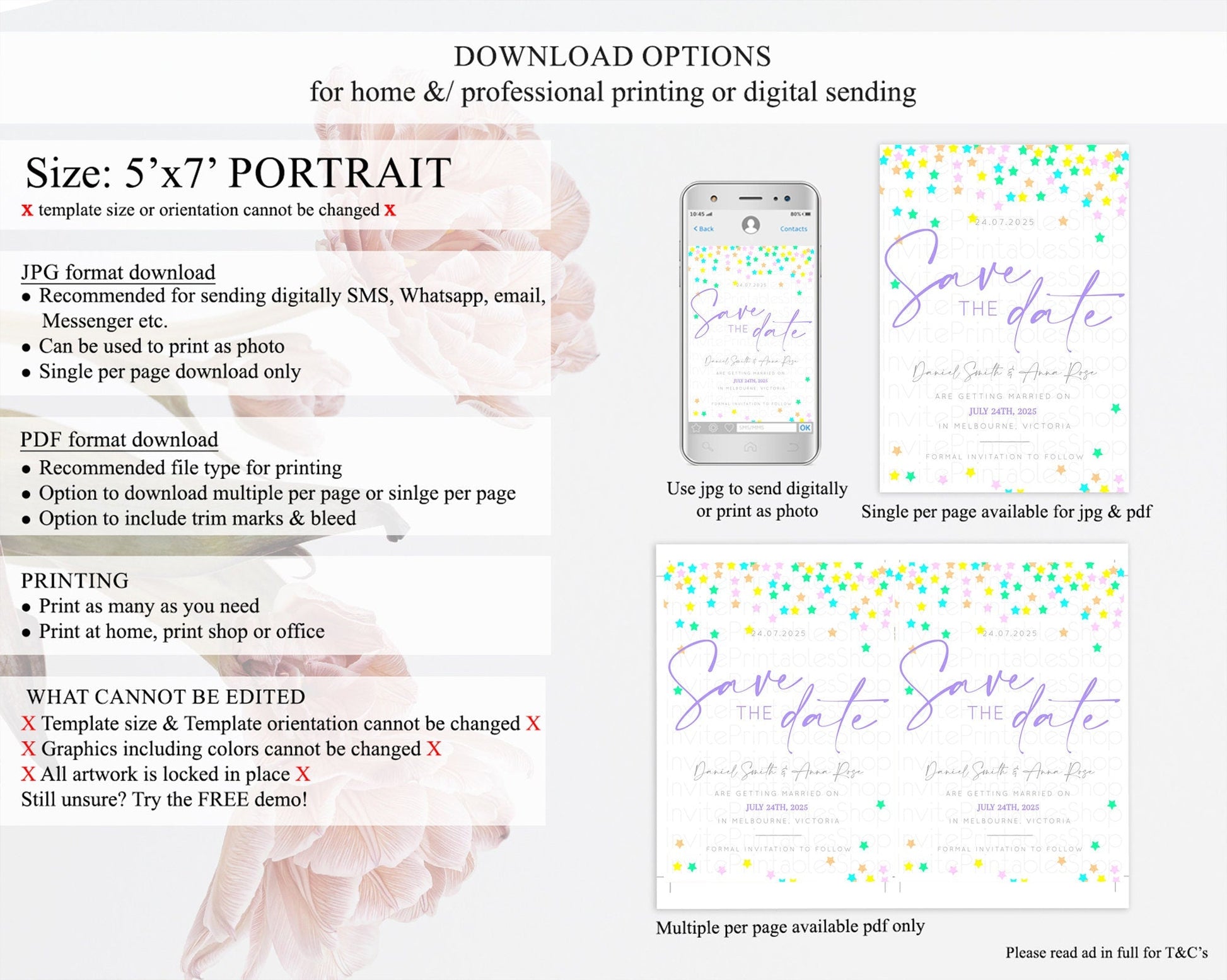 • Template size & orientation cannot be changed. Please use the demo link to confirm this product suits your needs.