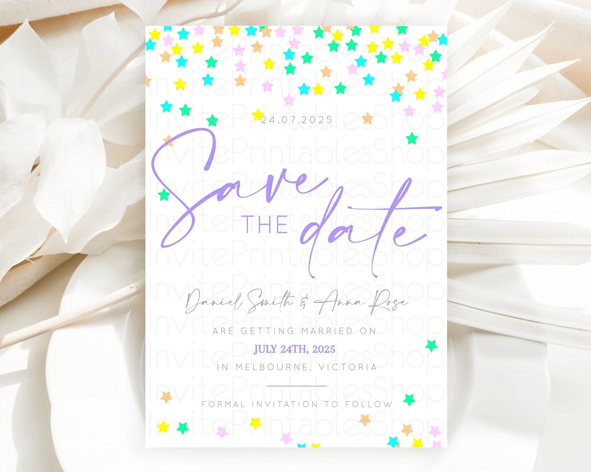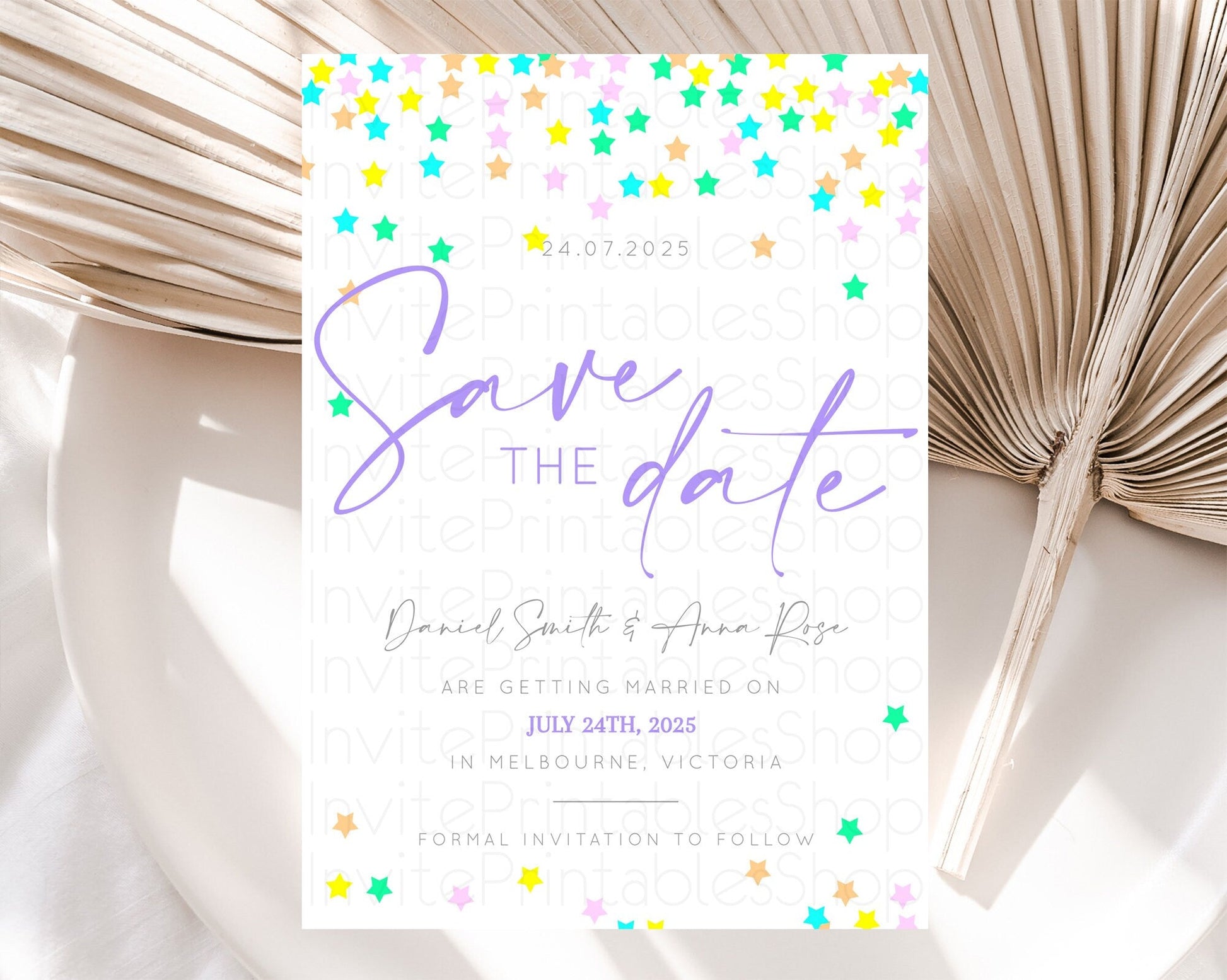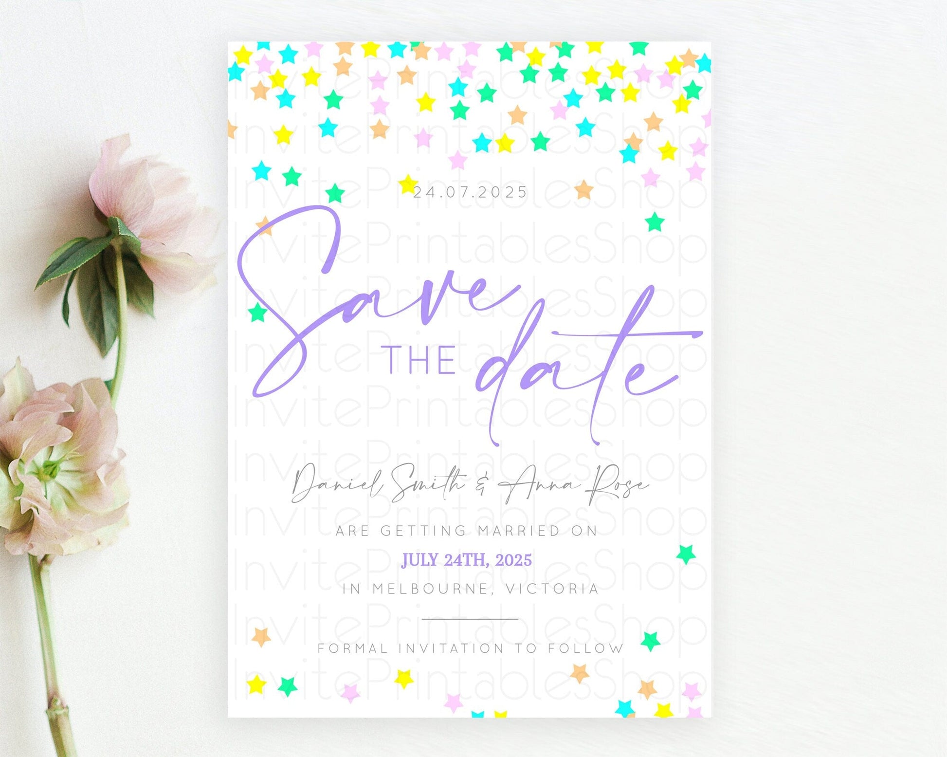 Twinkle Stars Save The Date Template Pastel Twinkle Little Star Party Shooting Star Confetti Sprinkles Birthday Baptism Baby Shower D10395