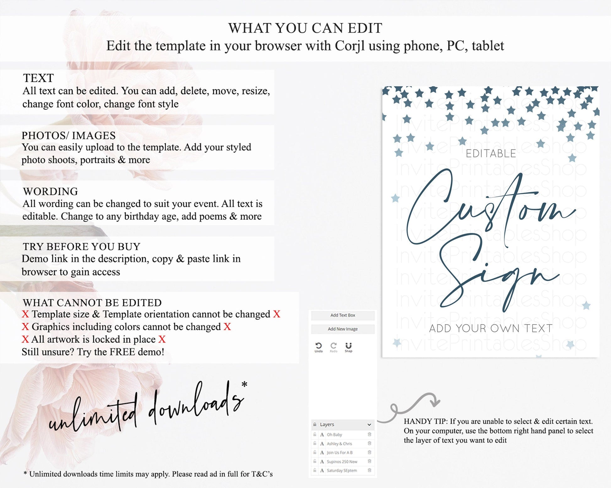 • After purchase, Corjl emails your editing link. Allow up to 15 minutes for delivery.