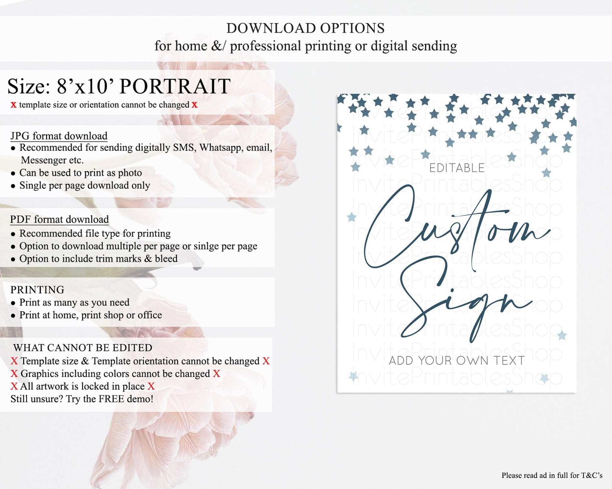 • Template size & orientation cannot be changed. Please use the demo link to confirm this product suits your needs.