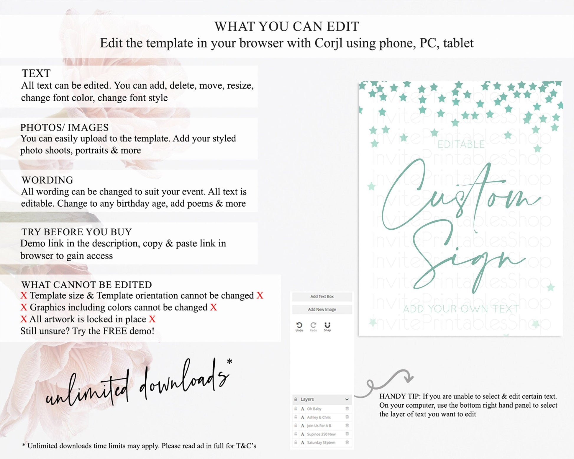 • After purchase, Corjl emails your editing link. Allow up to 15 minutes for delivery.