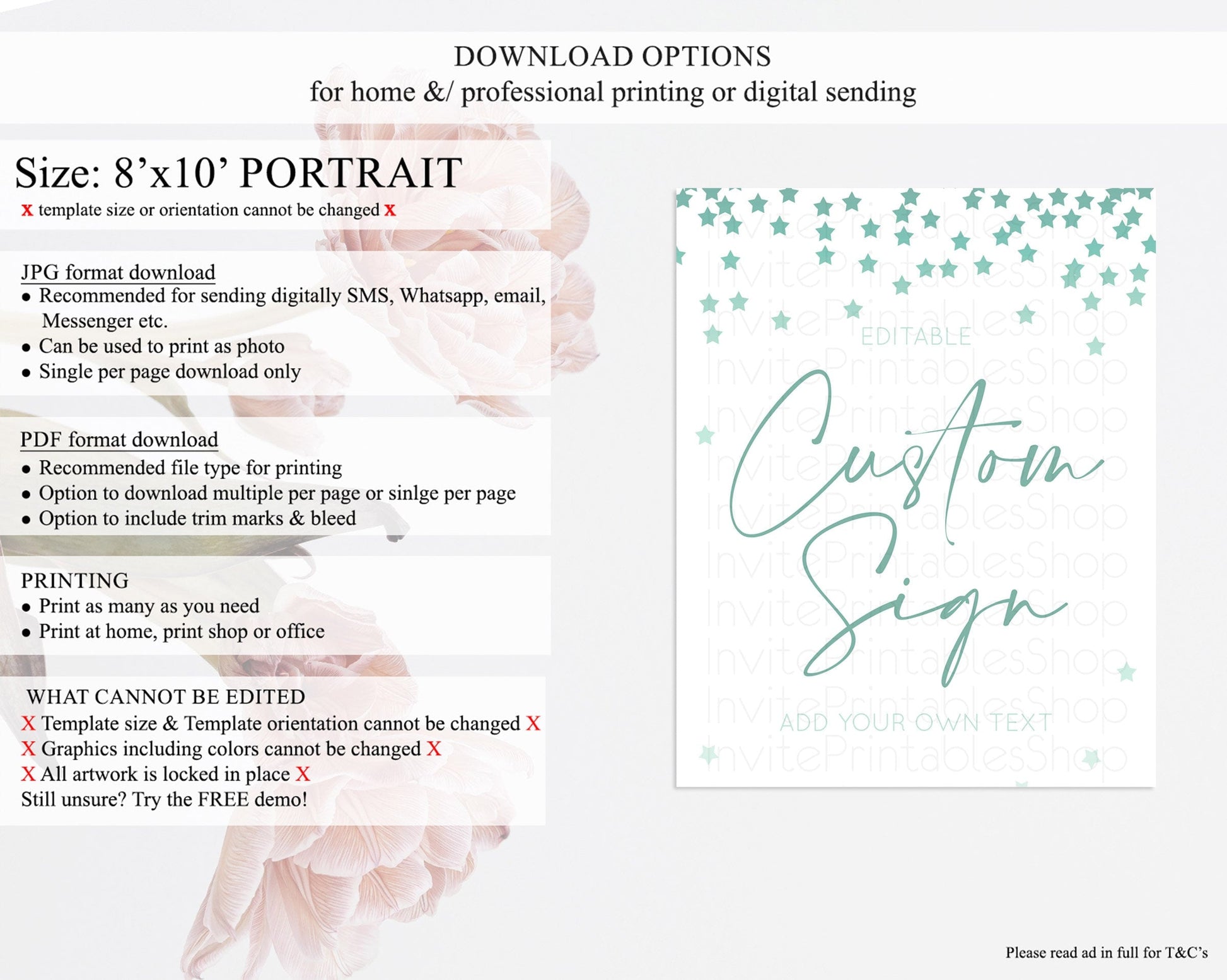 • Template size & orientation cannot be changed. Please use the demo link to confirm this product suits your needs.