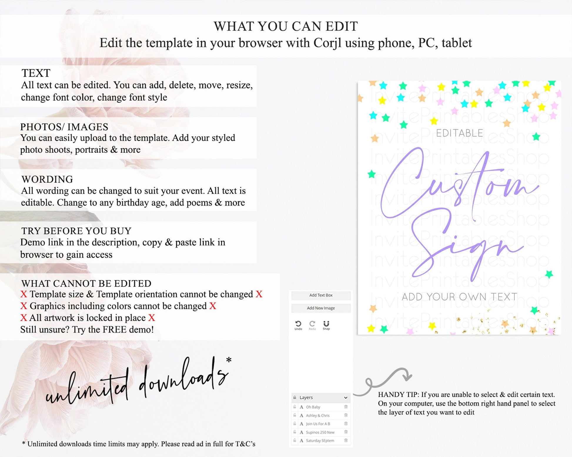 Twinkle Stars Sign Pastel Twinkle Little Star Party Shooting Star Confetti Sprinkles Table Sign Decor Birthday Baptism Baby Shower D10395
