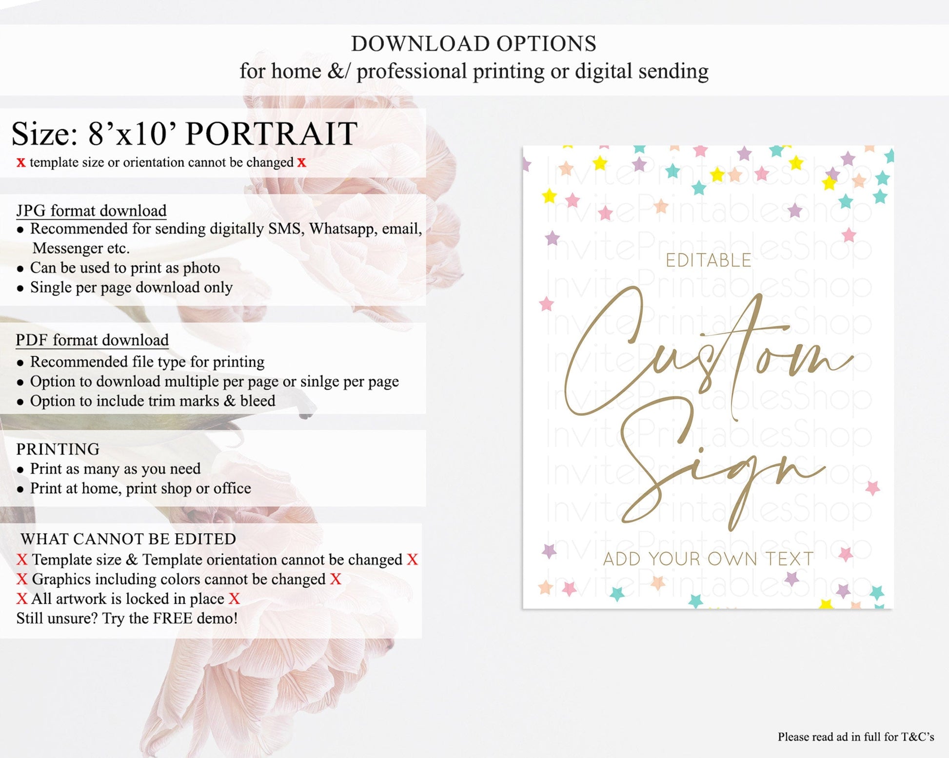 • Template size & orientation cannot be changed. Please use the demo link to confirm this product suits your needs.