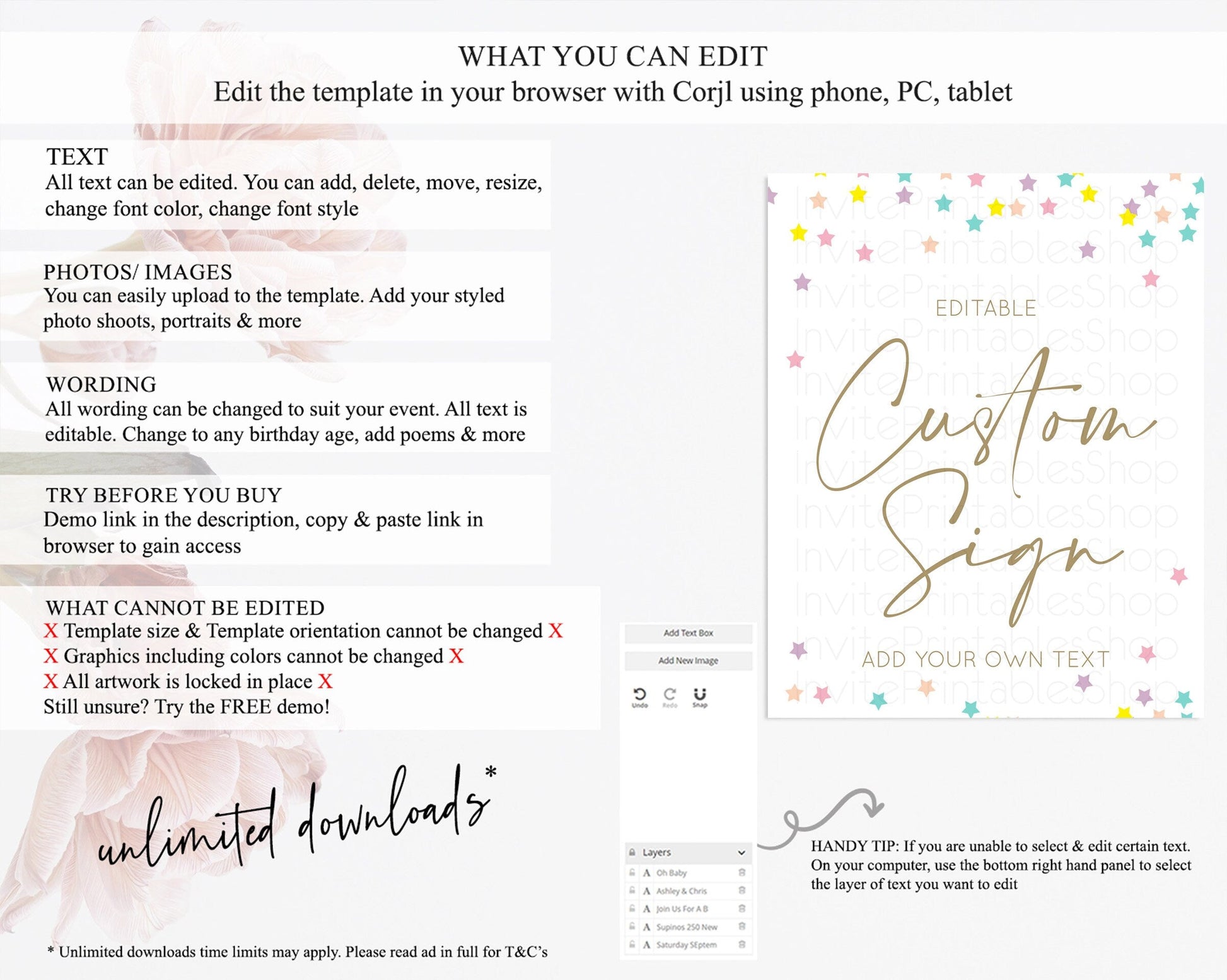 • After purchase, Corjl emails your editing link. Allow up to 15 minutes for delivery.