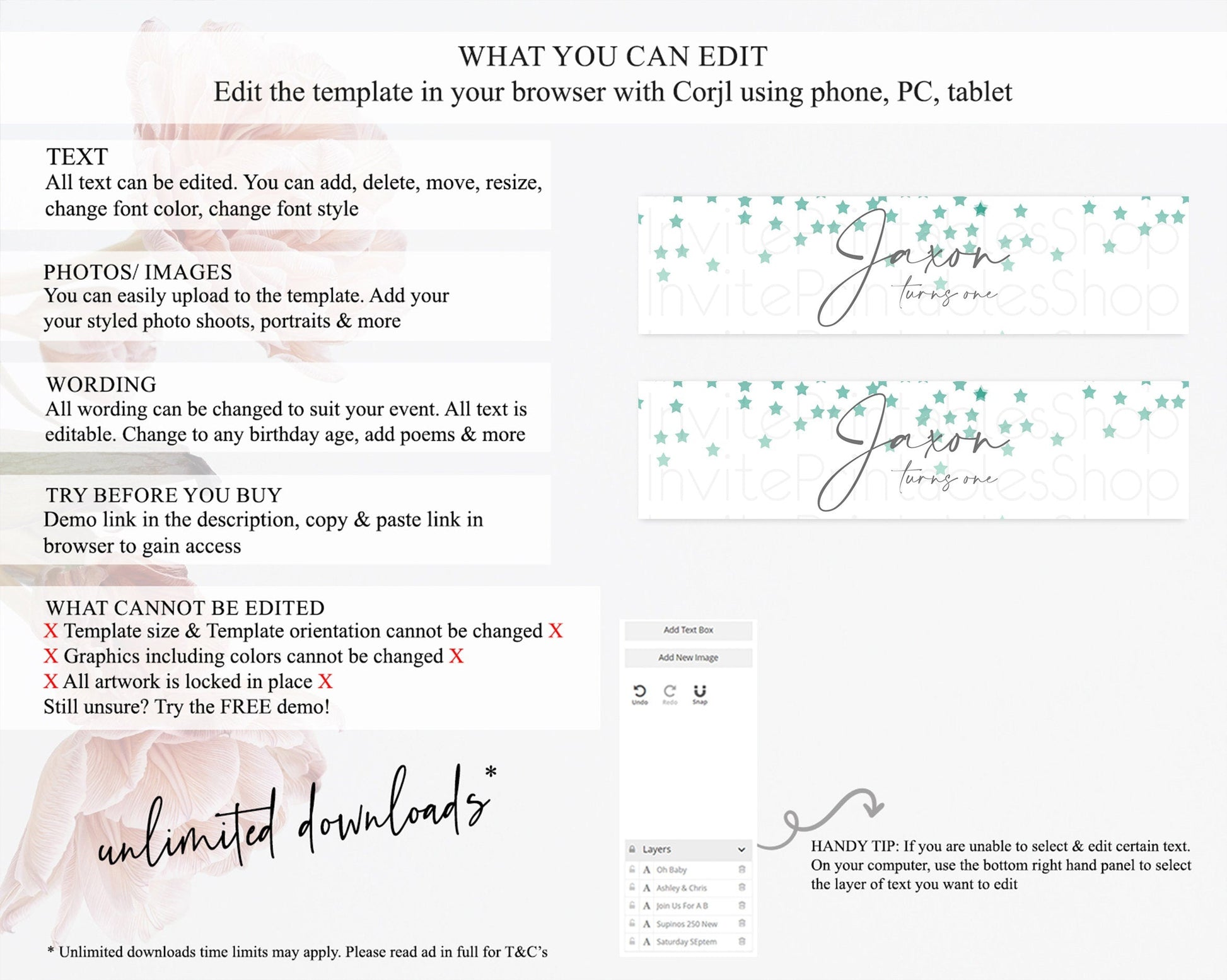 Twinkle Stars Water Label Template Pastel Twinkle Little Star Party Decor Shooting Star Confetti 1st Birthday Baptism Baby Shower D10310