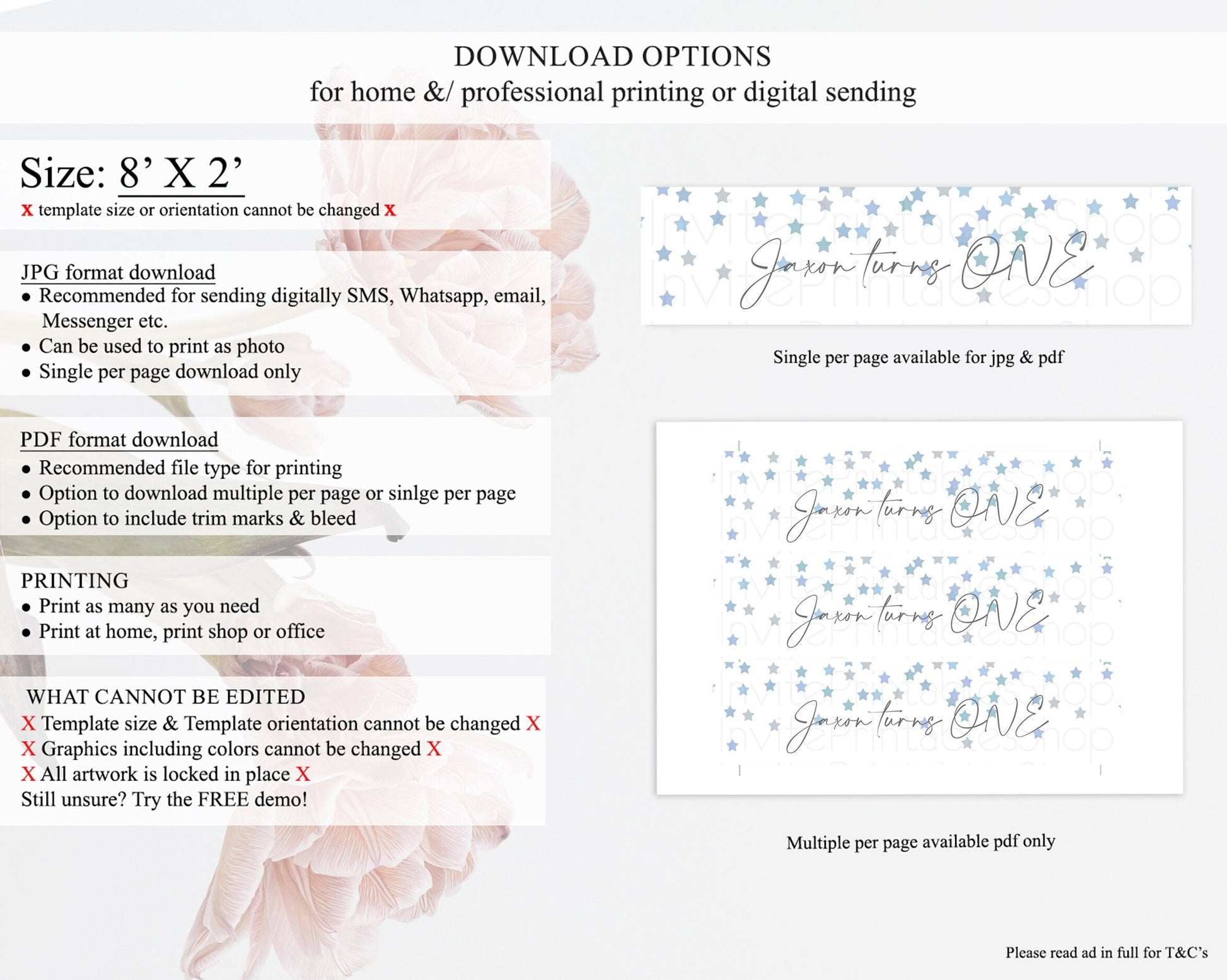 • Template size & orientation cannot be changed. Please use the demo link to confirm this product suits your needs.