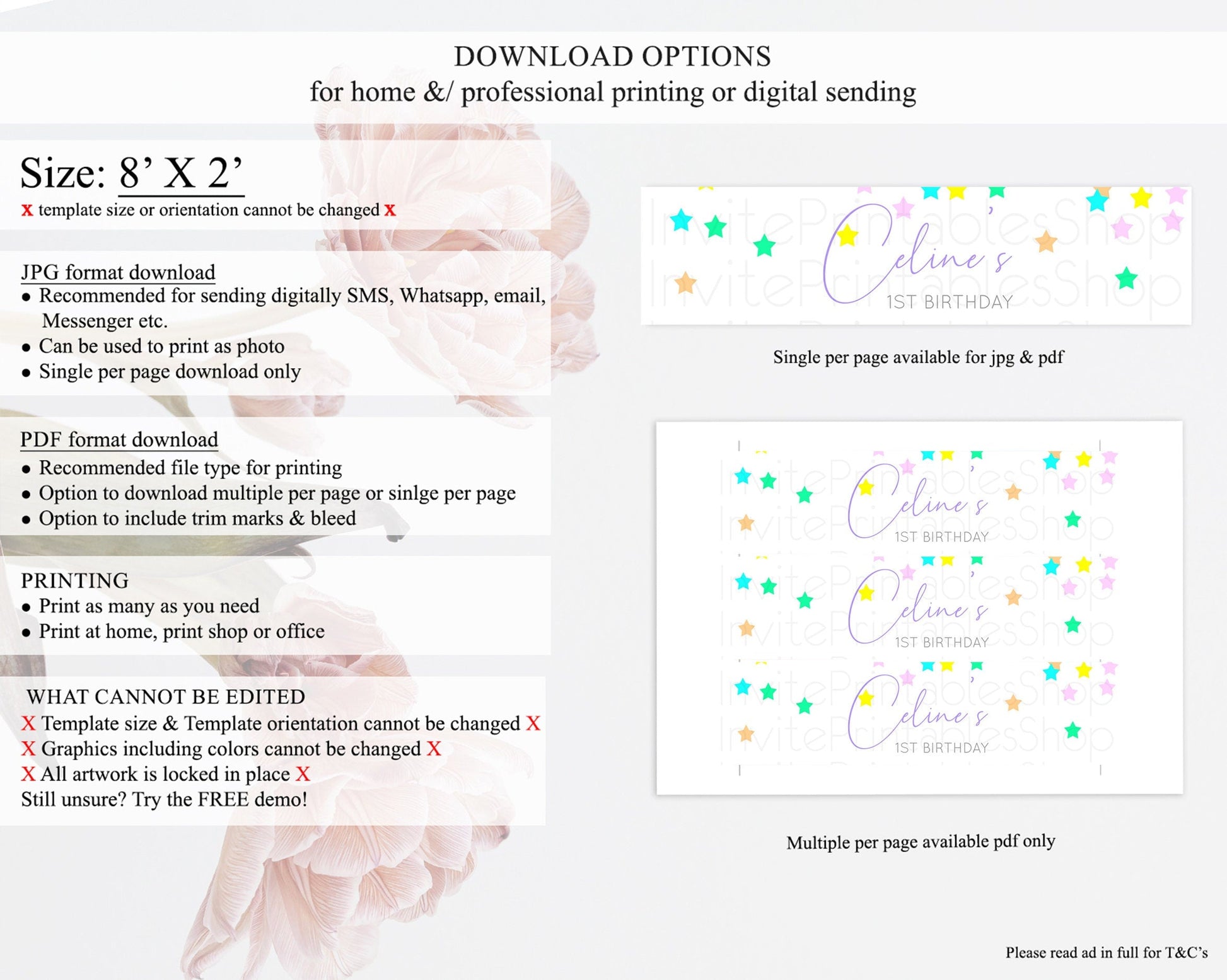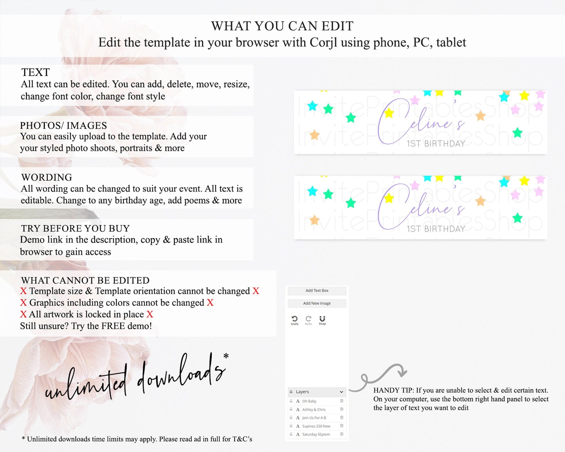 Twinkle Stars Water Label Template Pastel Twinkle Little Star Party Decor Shooting Star Confetti 1st Birthday Baptism Baby Shower D10394