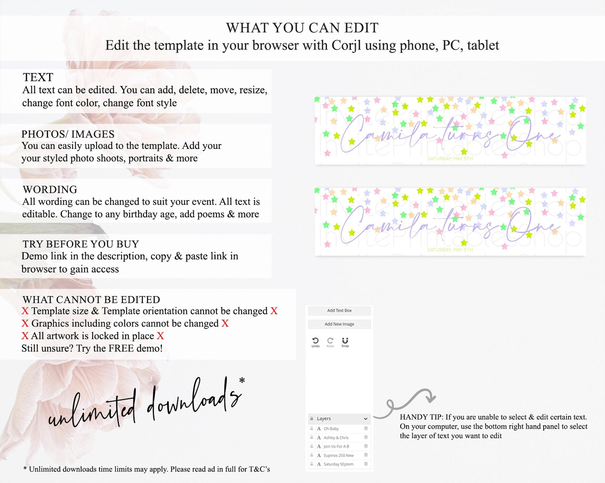 Twinkle Stars Water Label Template Pastel Twinkle Little Star Party Decor Shooting Star Confetti 1st Birthday Baptism Baby Shower D10396