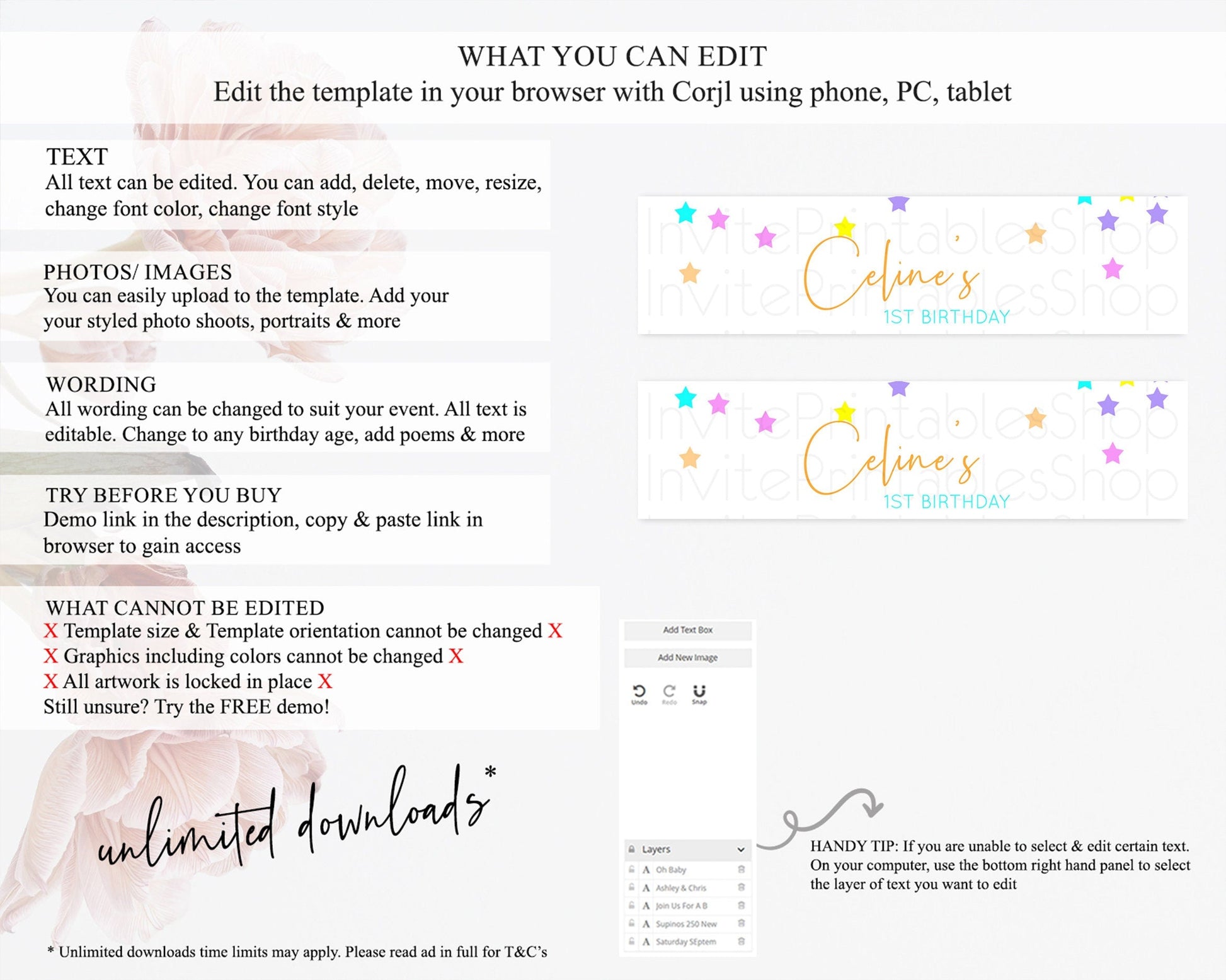 Twinkle Stars Water Label Template Pastel Twinkle Little Star Party Decor Shooting Star Confetti 1st Birthday Baptism Baby Shower D10397