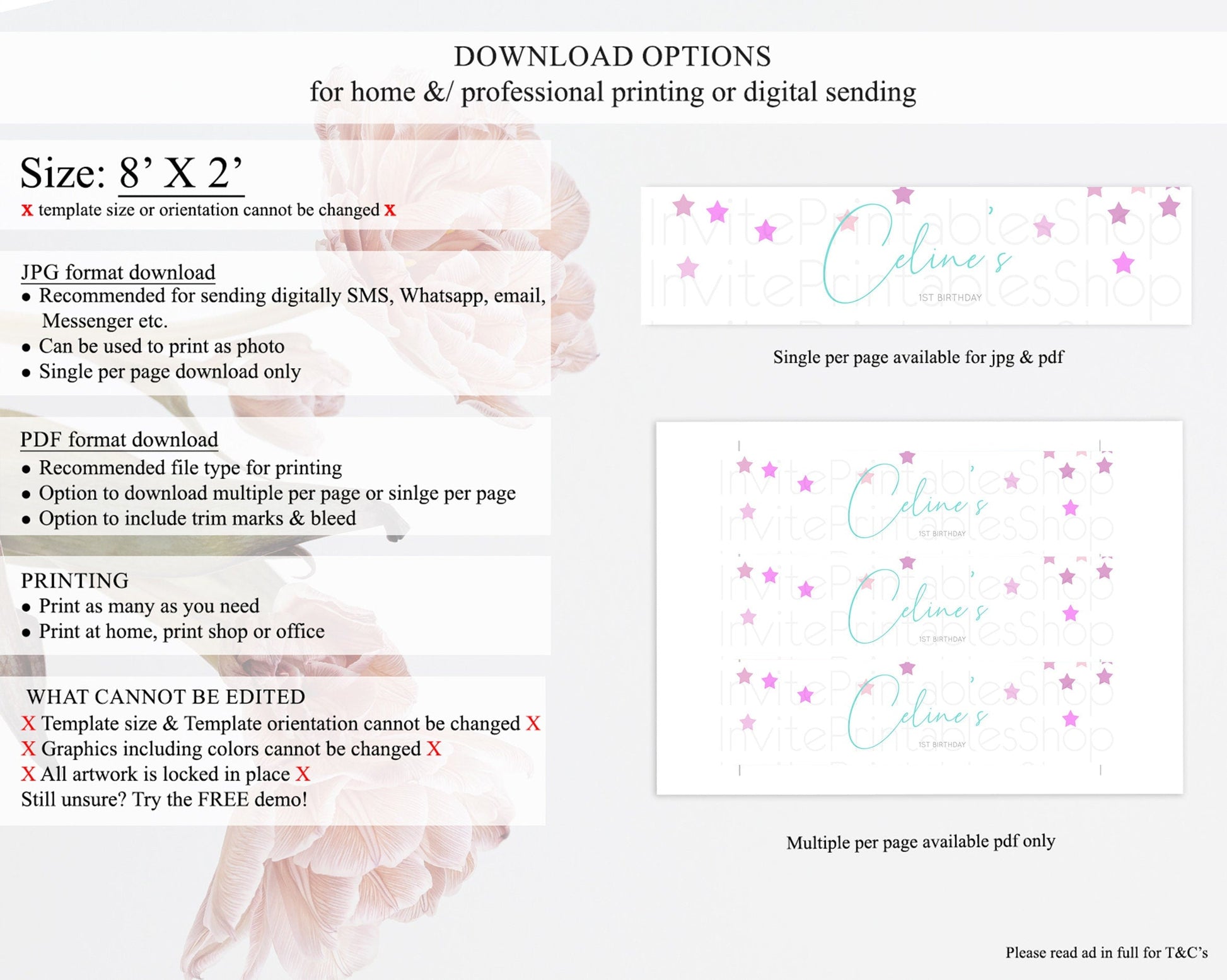 • Template size & orientation cannot be changed. Please use the demo link to confirm this product suits your needs.