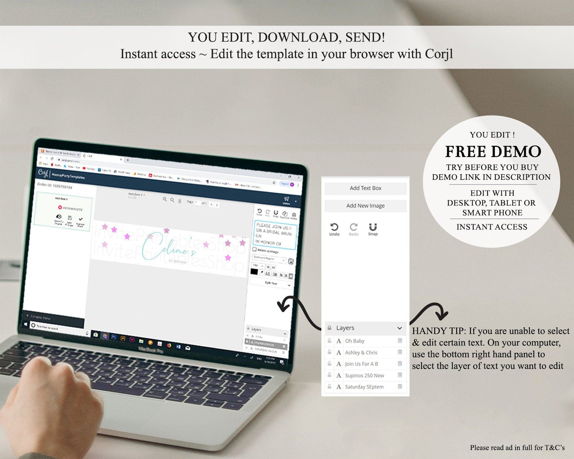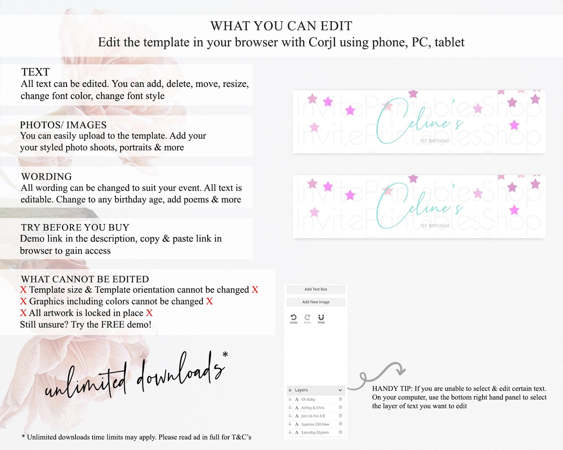 • After purchase, Corjl emails your editing link. Allow up to 15 minutes for delivery.