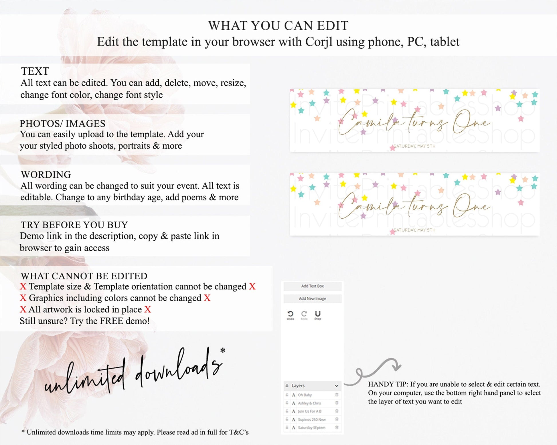 Twinkle Stars Water Label Template Pastel Twinkle Little Star Party Decor Shooting Star Confetti 1st Birthday Baptism Baby Shower D10601